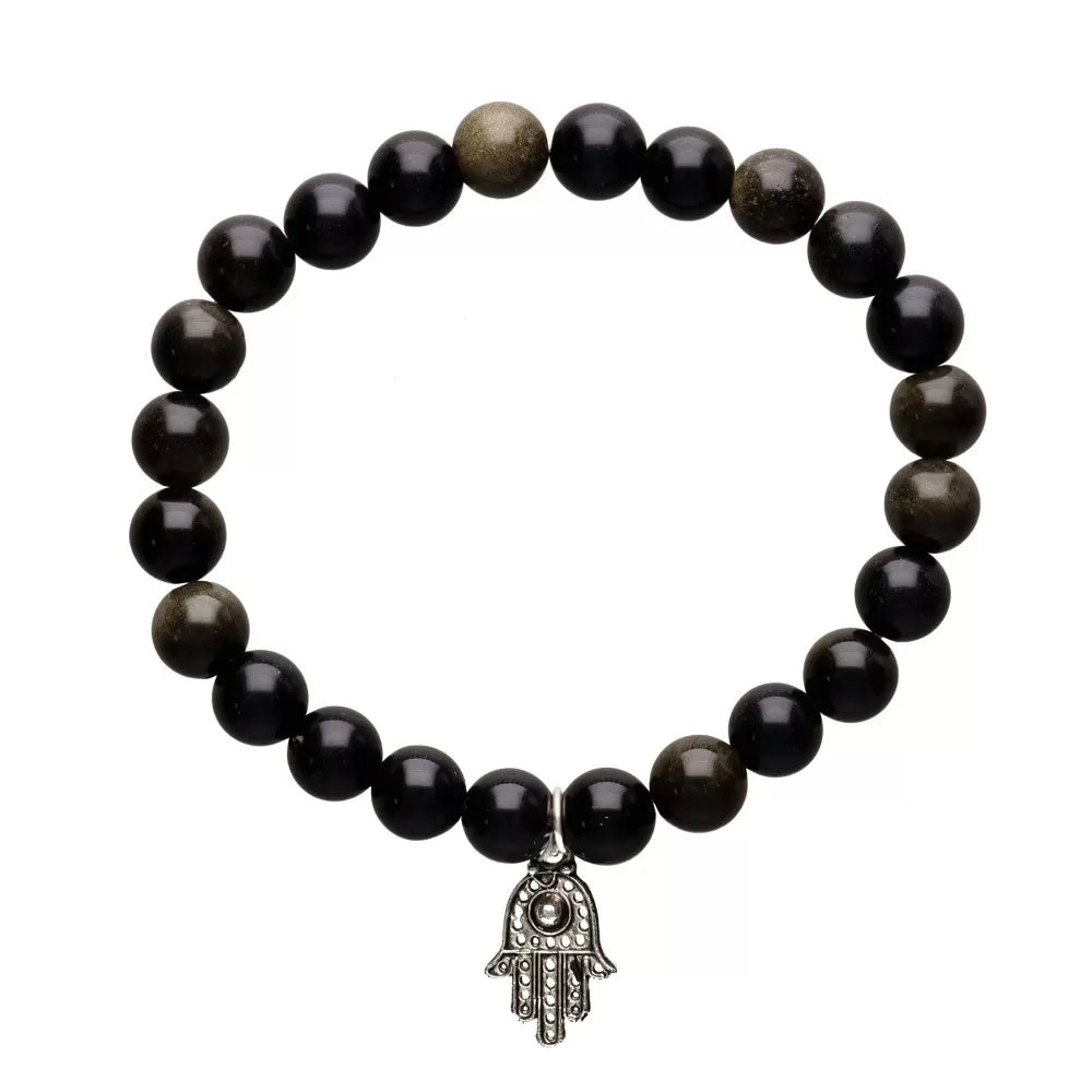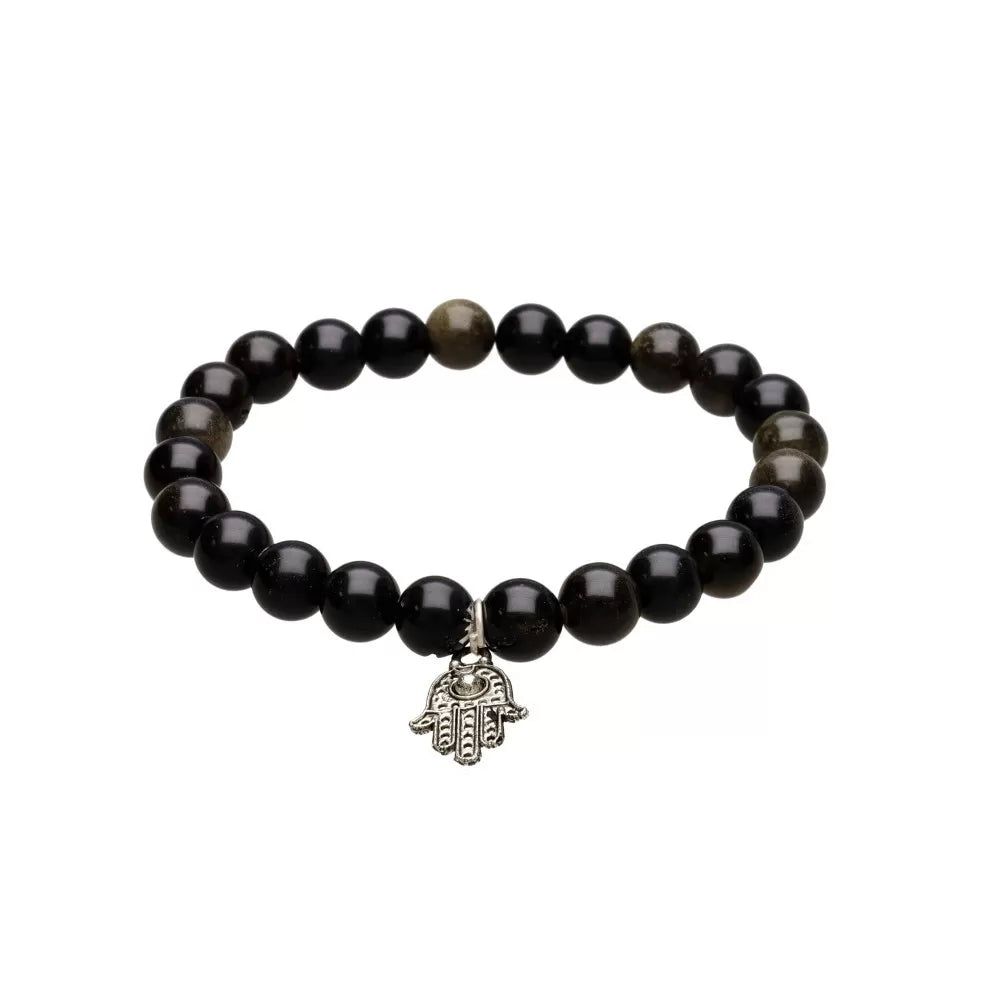 Noszony na co dzień Złota obsydianowa bransoletka z fatalną ręką Staje się subtelną tarczą przed negatywnymi energiami, przynosząc jasność, stabilność i pewność siebie. Złoty obsydian wspiera osobistą moc i ochronę energii, a starożytny symbol fatalnej ręki wzmacnia poczucie bezpieczeństwa i wewnętrznego spokoju. 🖤✨
