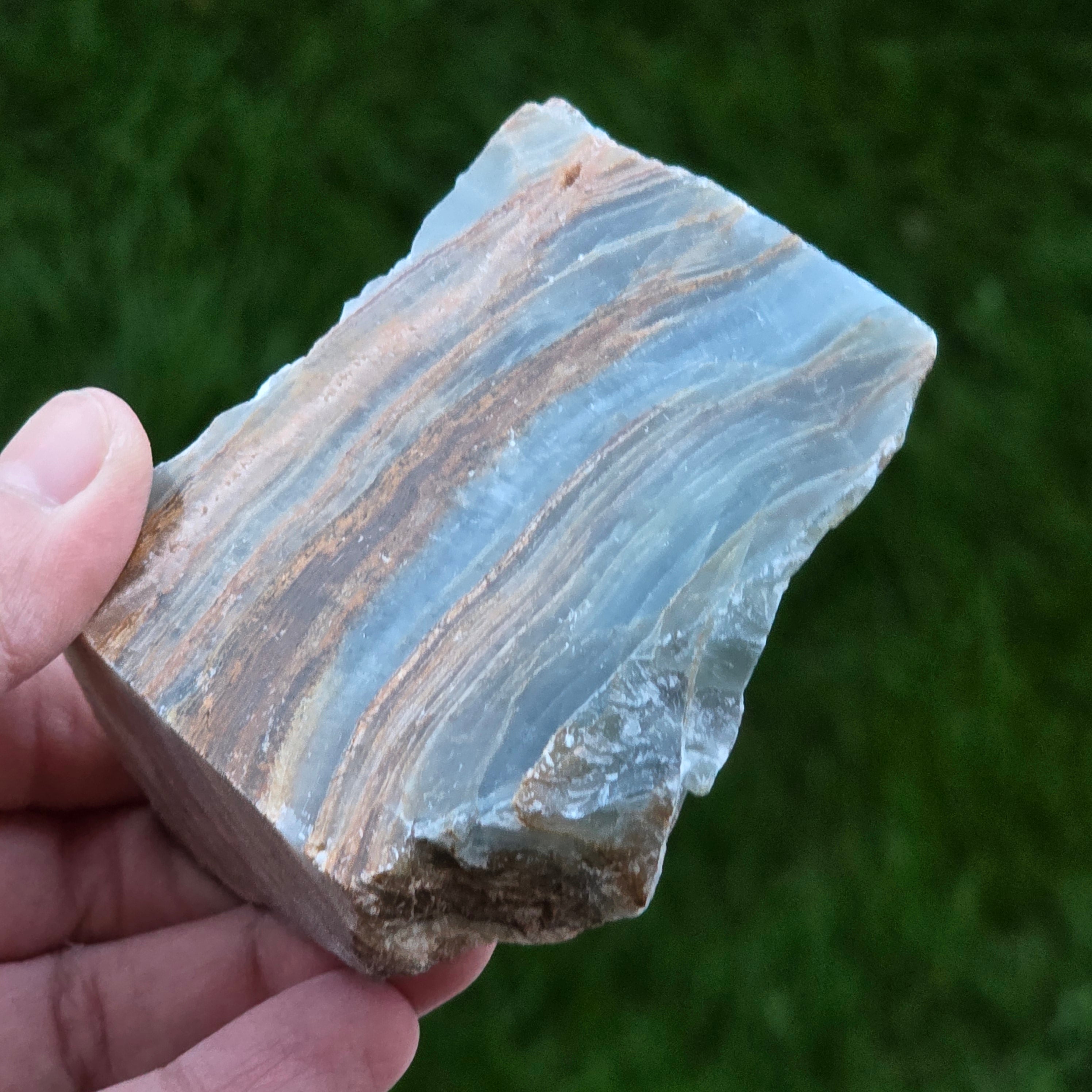 Opis - Onix albastru piatra bruta polisata pe o față | Model 6