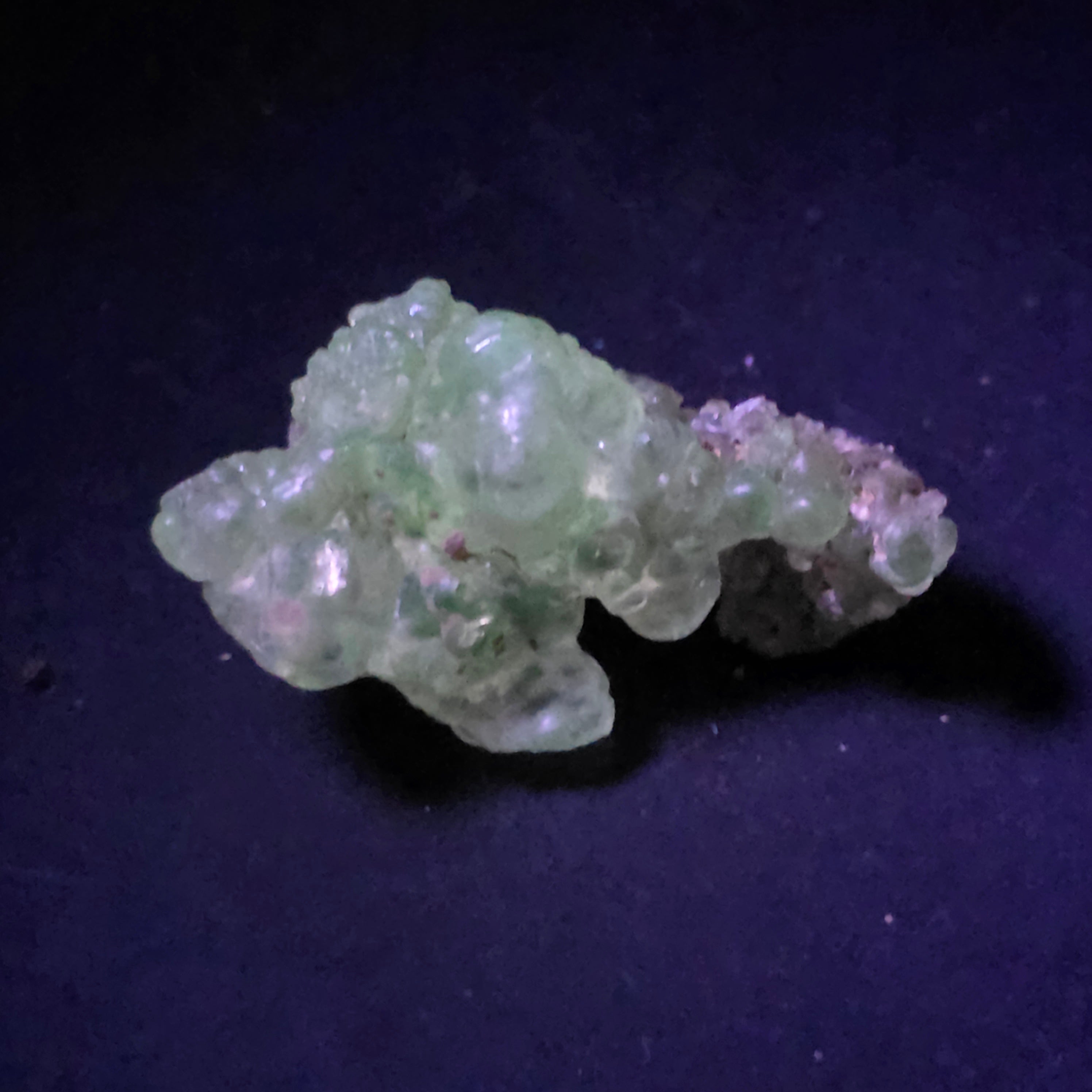 Acest opal hialit din Mexic este un specimen mineral rar și spectaculos, cunoscut pentru transparența sa sticloasă și pentru fluorescența verde intensă sub lumină UV, una dintre cele mai apreciate caracteristici ale acestui tip de opal. Piesele de hyalite provenite din Mexic sunt considerate de referință la nivel internațional.