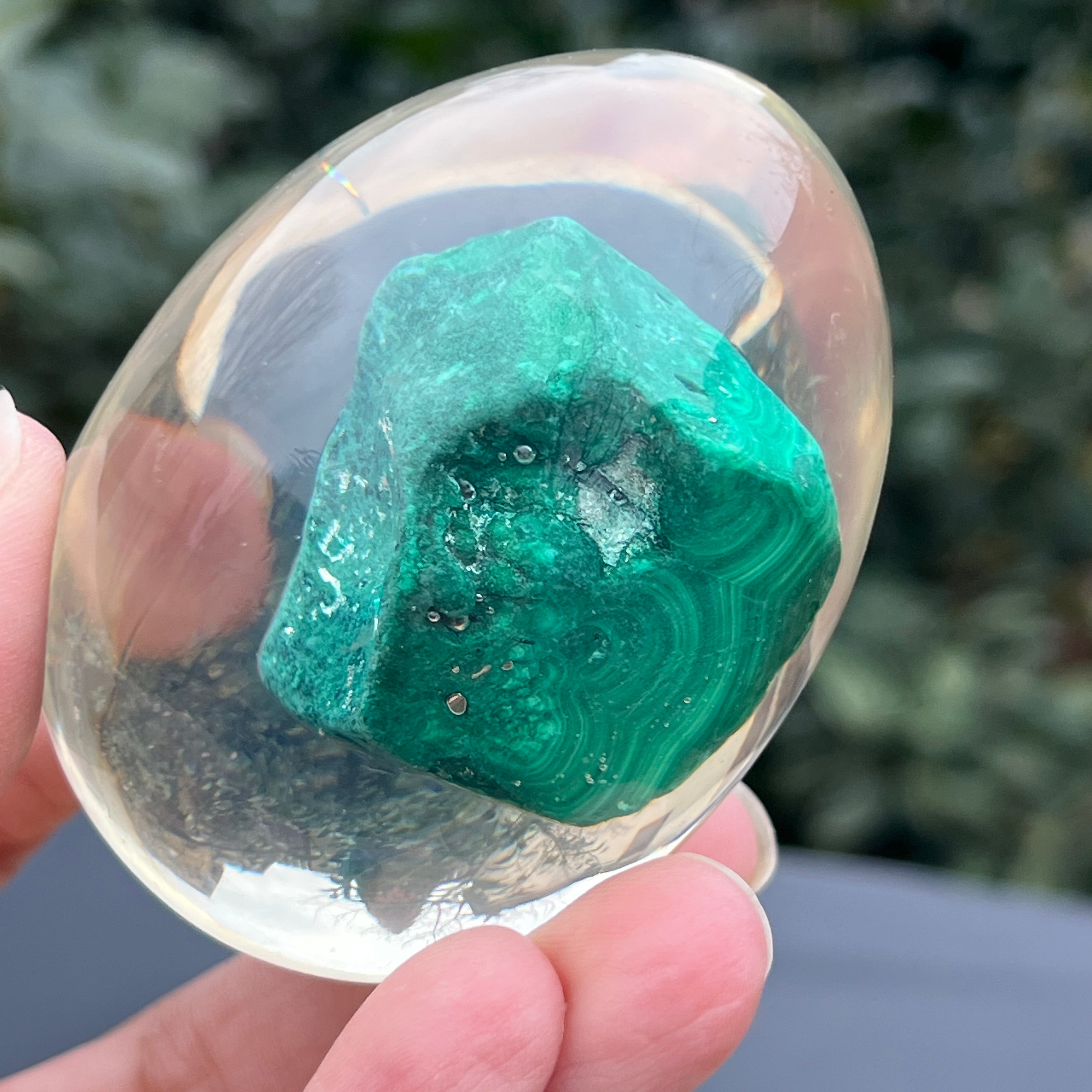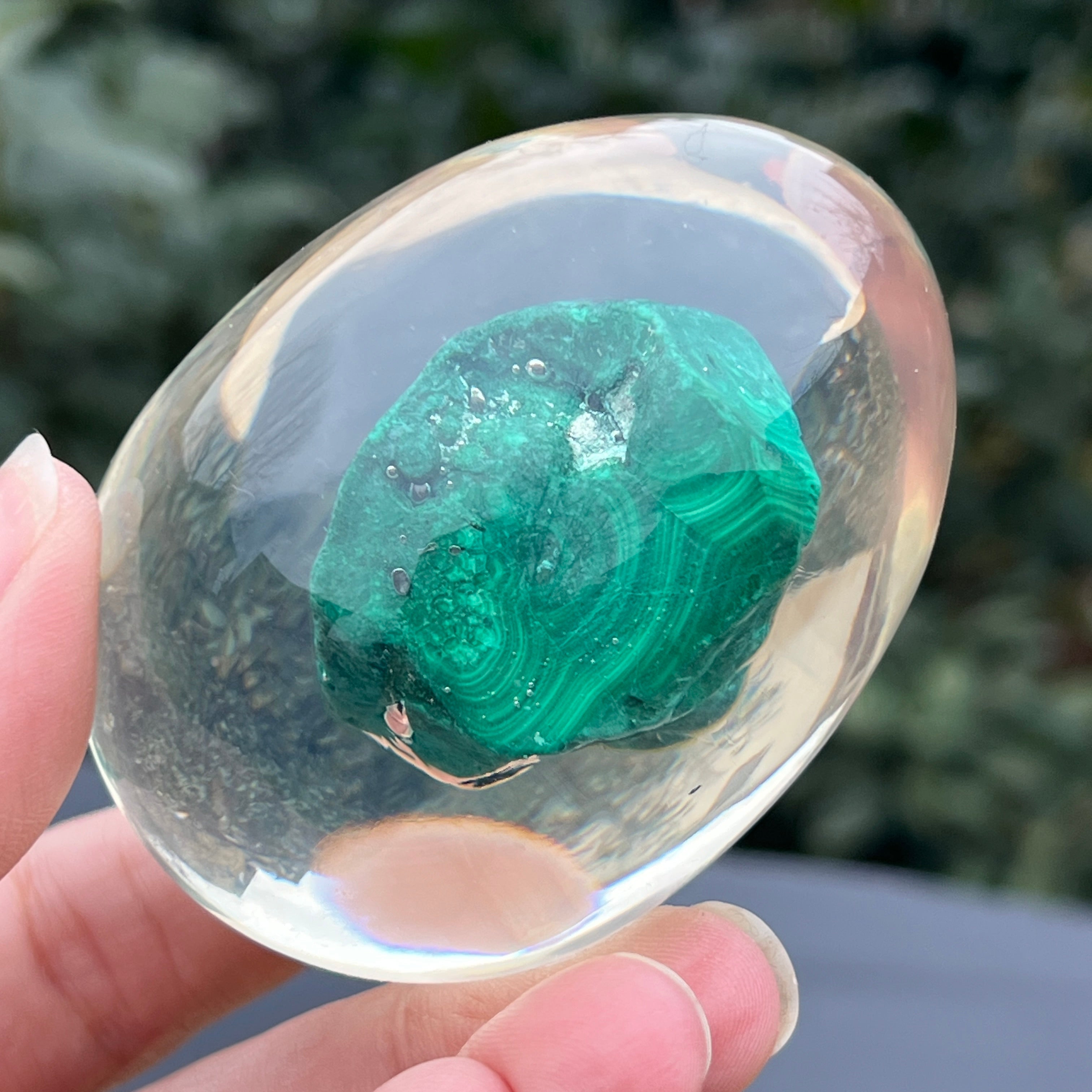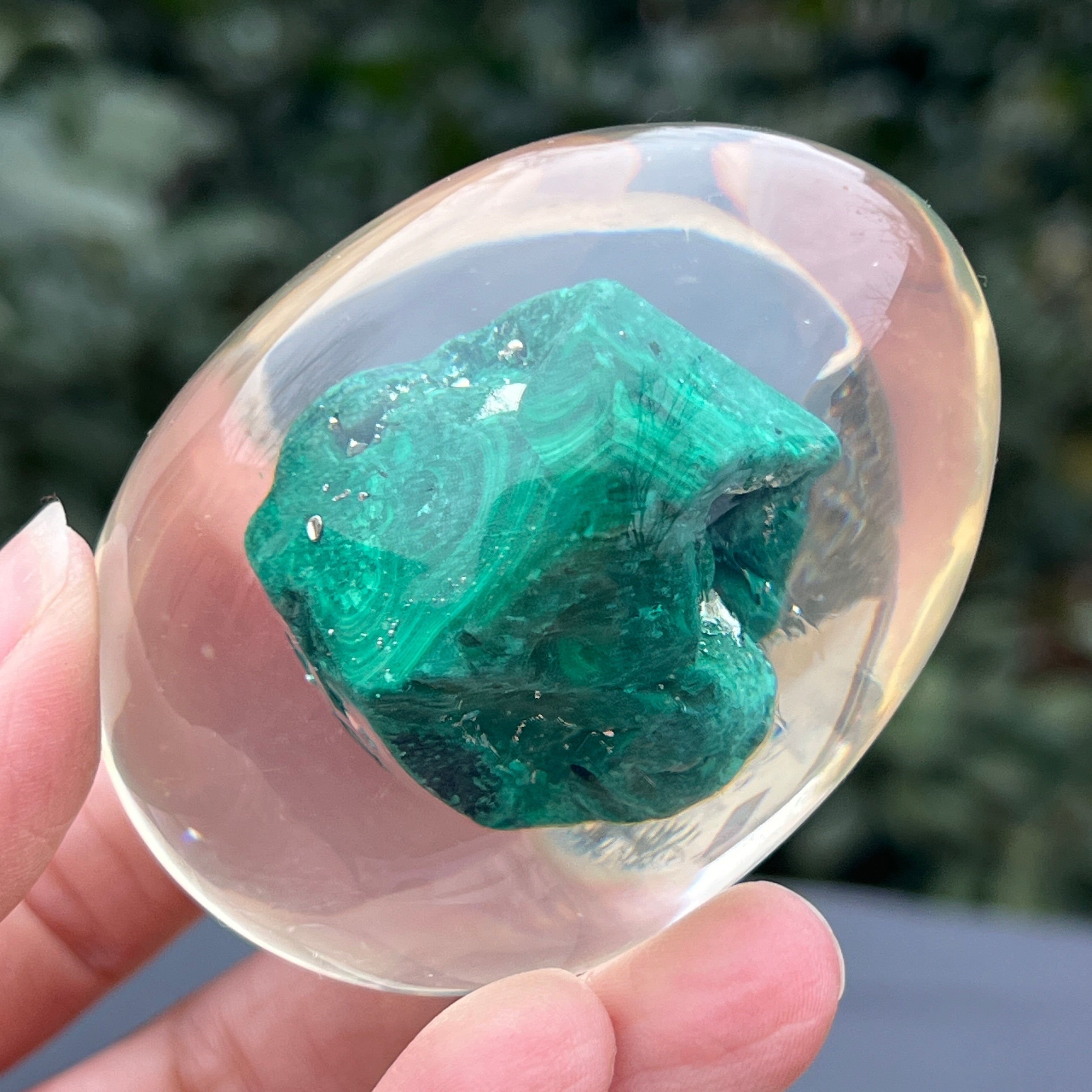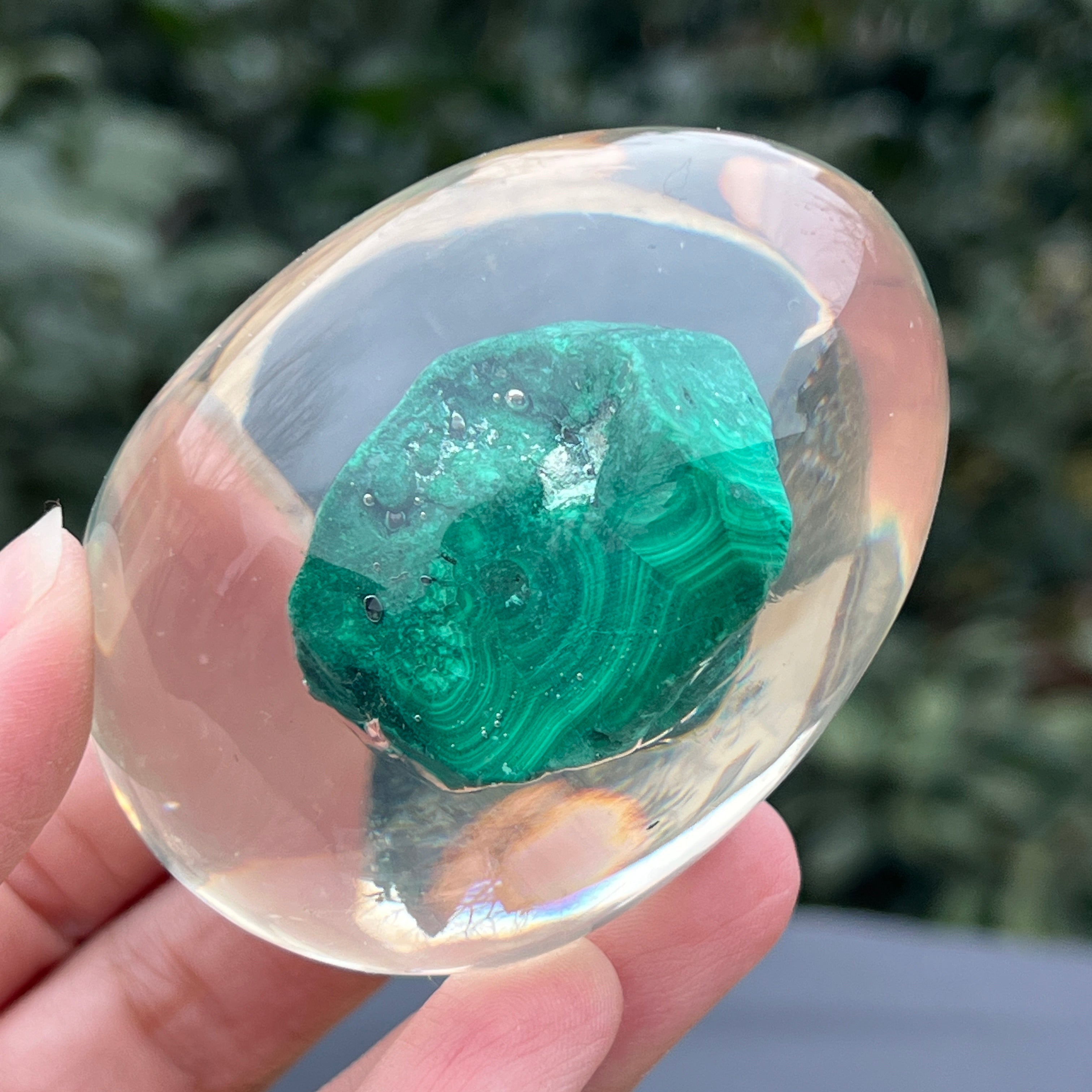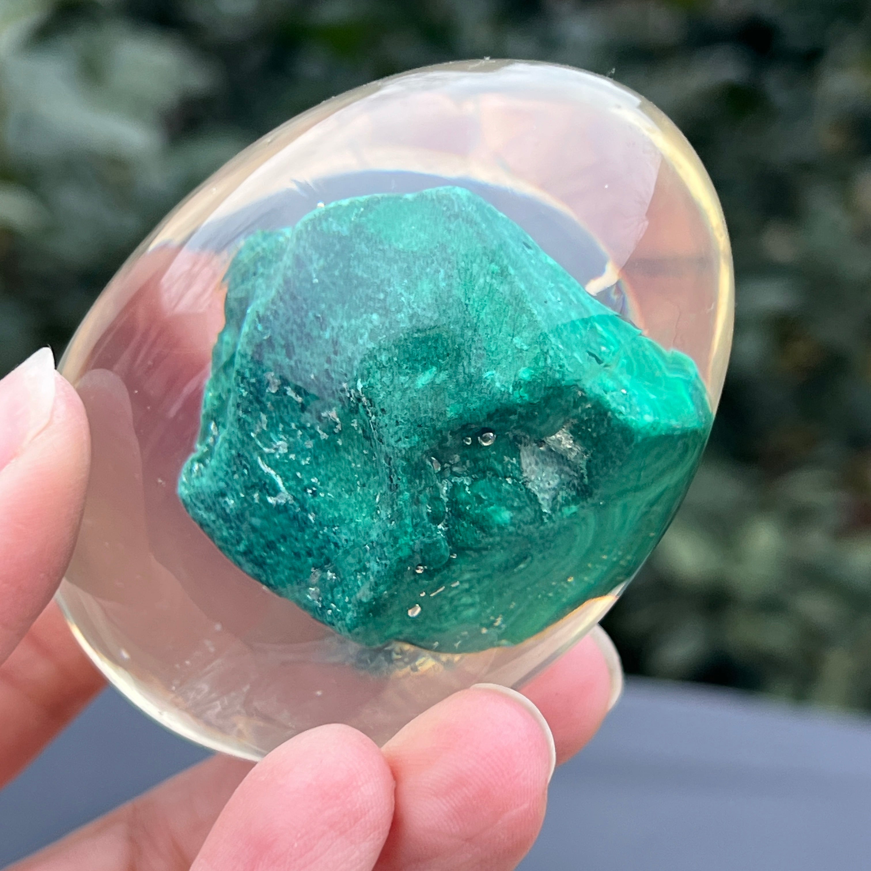 Jaja Malachit w żywicy Kongo Model 6, rozmiar: 6,9 * 5,1 cm