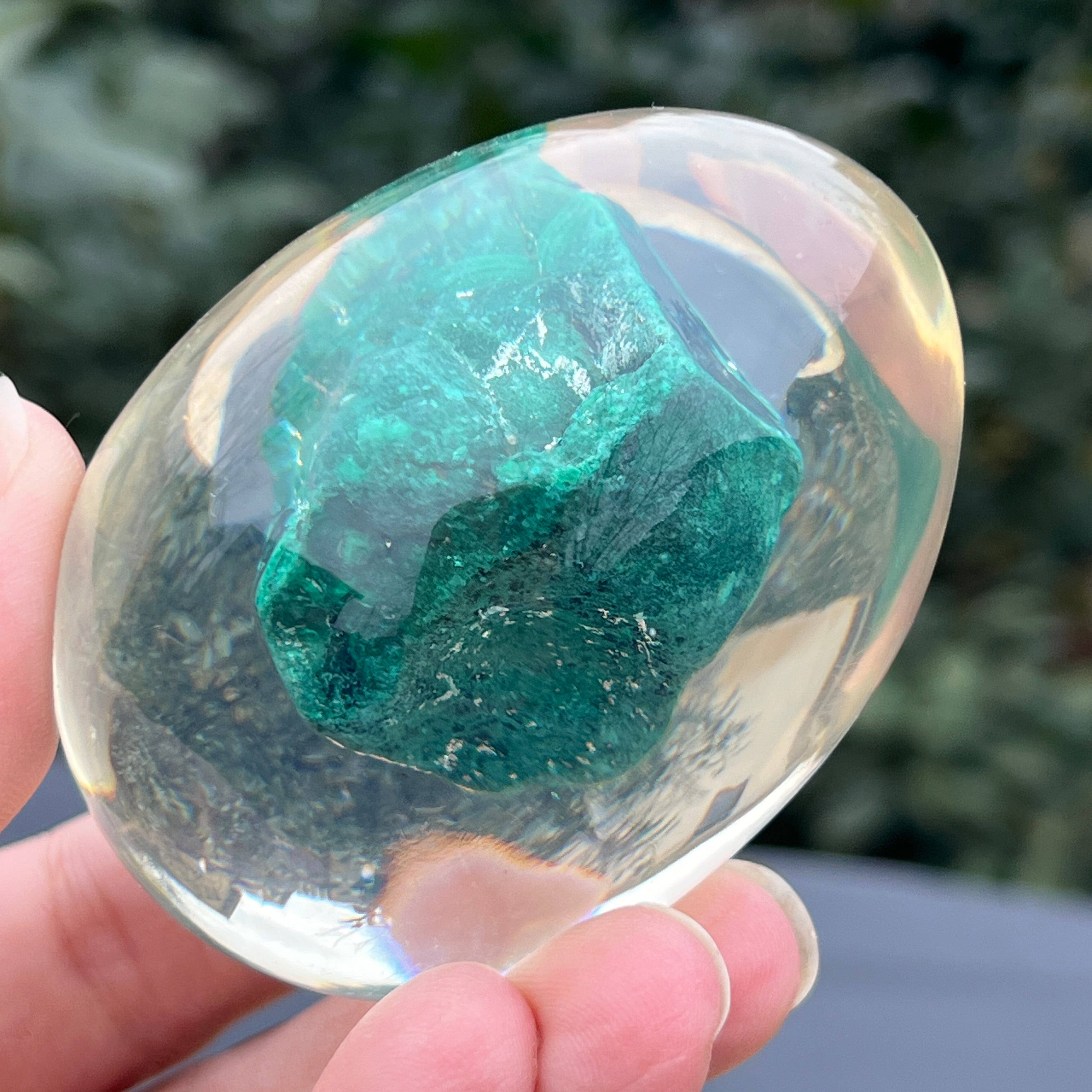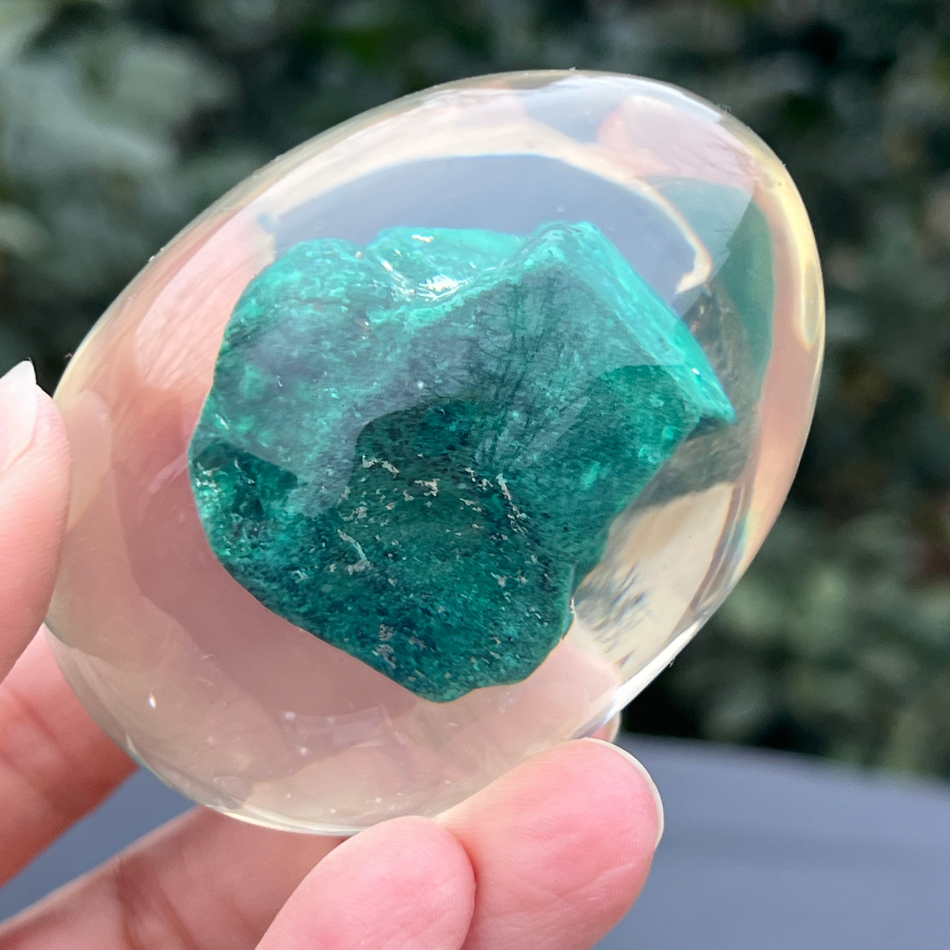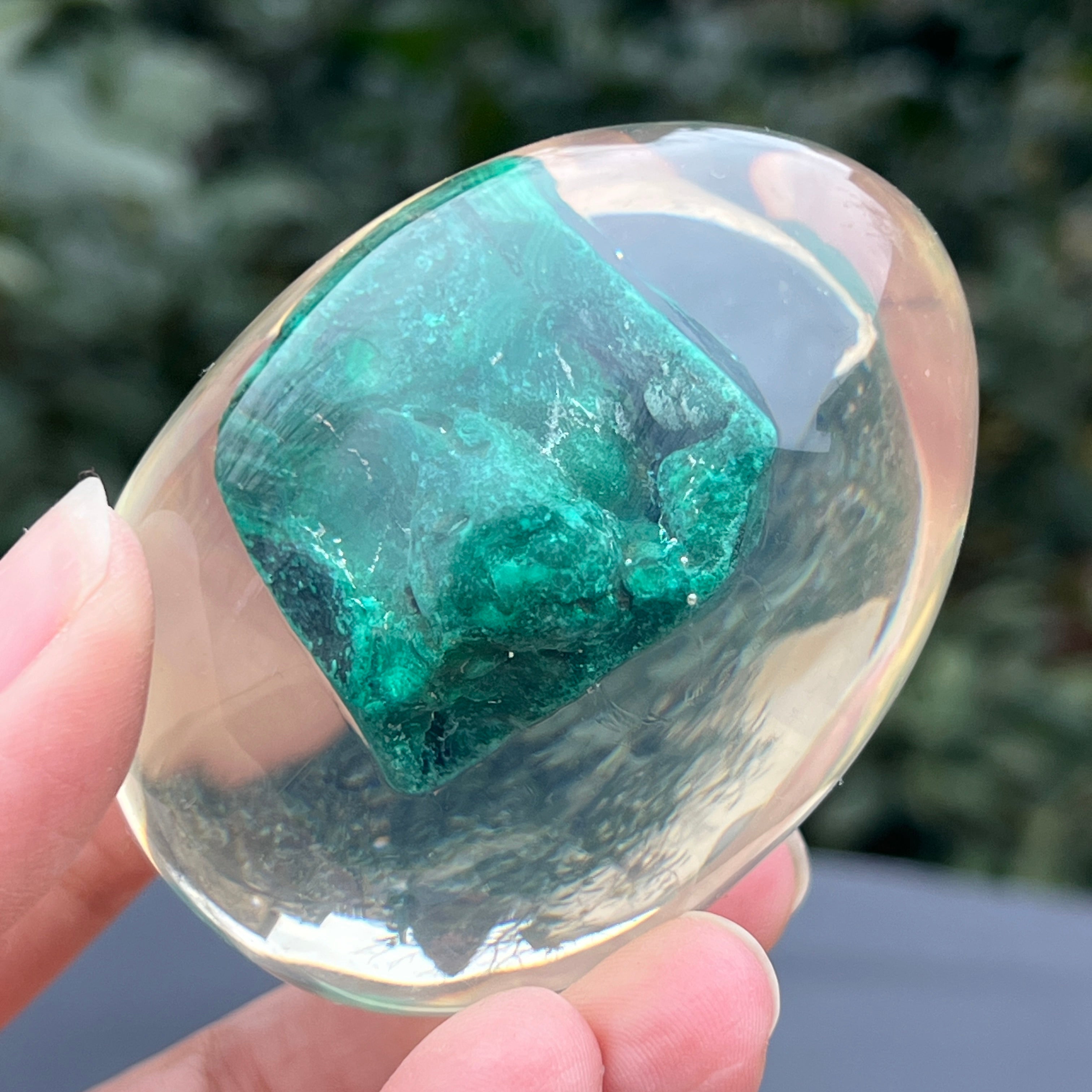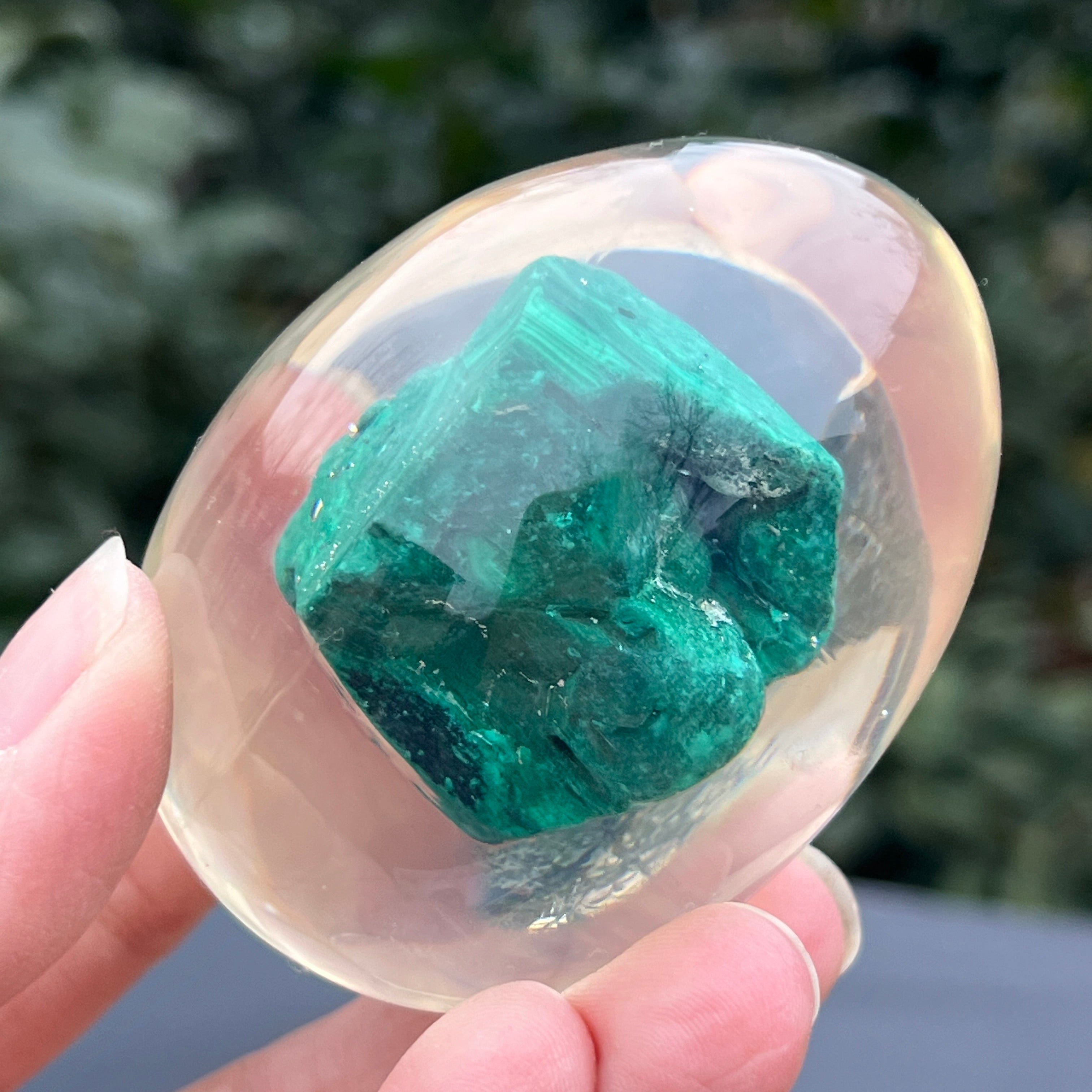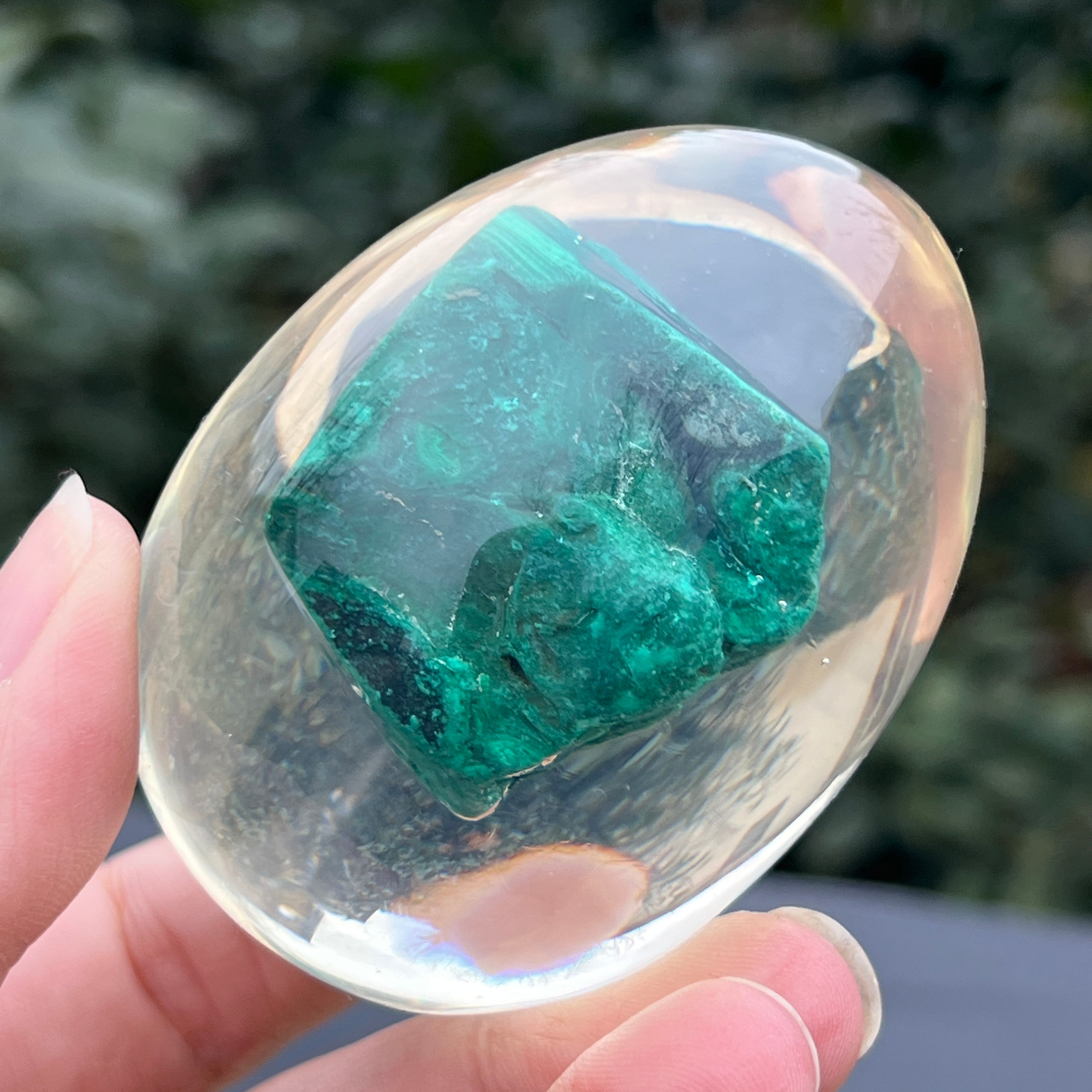 Jaja Malachit w żywicy Kongo Model 6, rozmiar: 6,9 * 5,1 cm