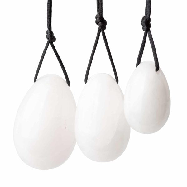 Oua Yoni z White Jade - Set 3 sztuki zapakowane w pudełku na natury