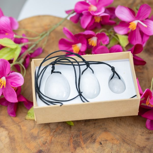 Opis - Oua Yoni z White Jade - Set 3 sztuki zapakowane w pudełku na natury