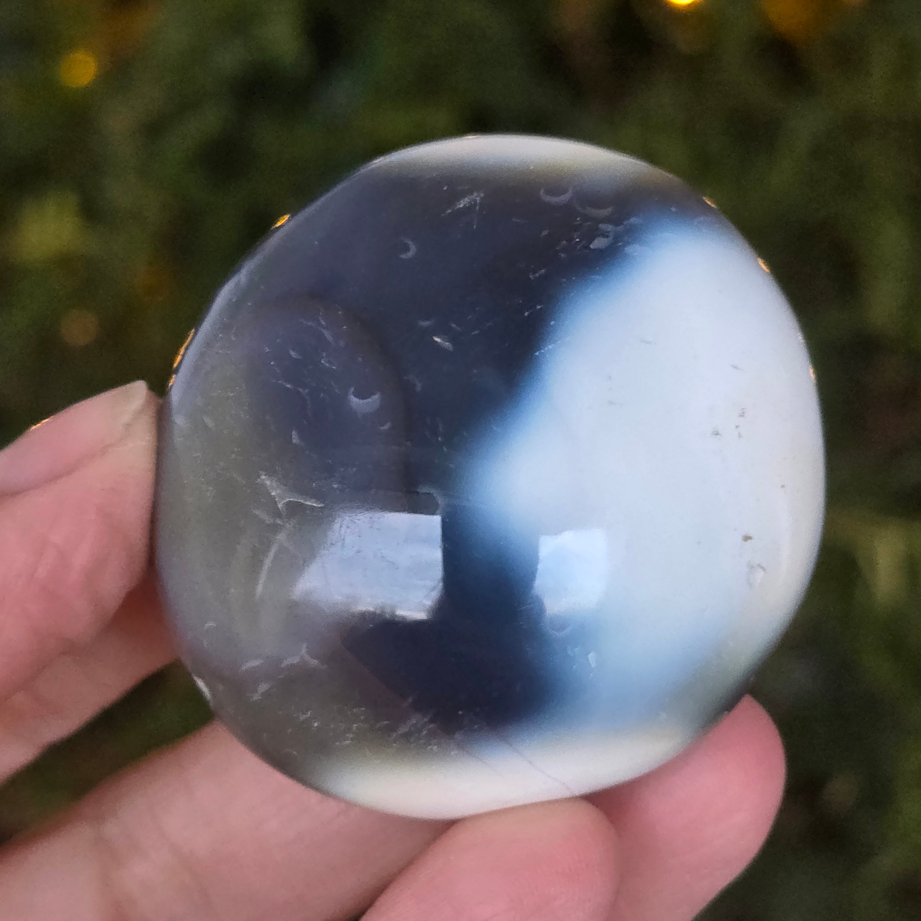 Agat Orca jest rzadką i spektakularną odmianą agatu, kryptokrystaliczną formą kwarcu należącą do rodziny chalcedonu. Tworzy się w wyniku kolejnych osadów krzemionki w kawernach wulkanicznych, tworząc cienkie, koncentryczne pasma o gładkim wyglądzie i zwartej strukturze. Jego charakterystyczny kolor – kombinacje szaro-niebieskie, czarne i białe – przywodzi na myśl elegancję i kontrast orki, stąd nazwa kamienia. Jednak w zależności od inkluzji mineralnych Agat Orca może zawierać również odcienie czerwone, żółte, rudobrązowe lub brązoweczęsto w formie subtelnych akcentów, które dodają unikalności każdemu egzemplarzowi.