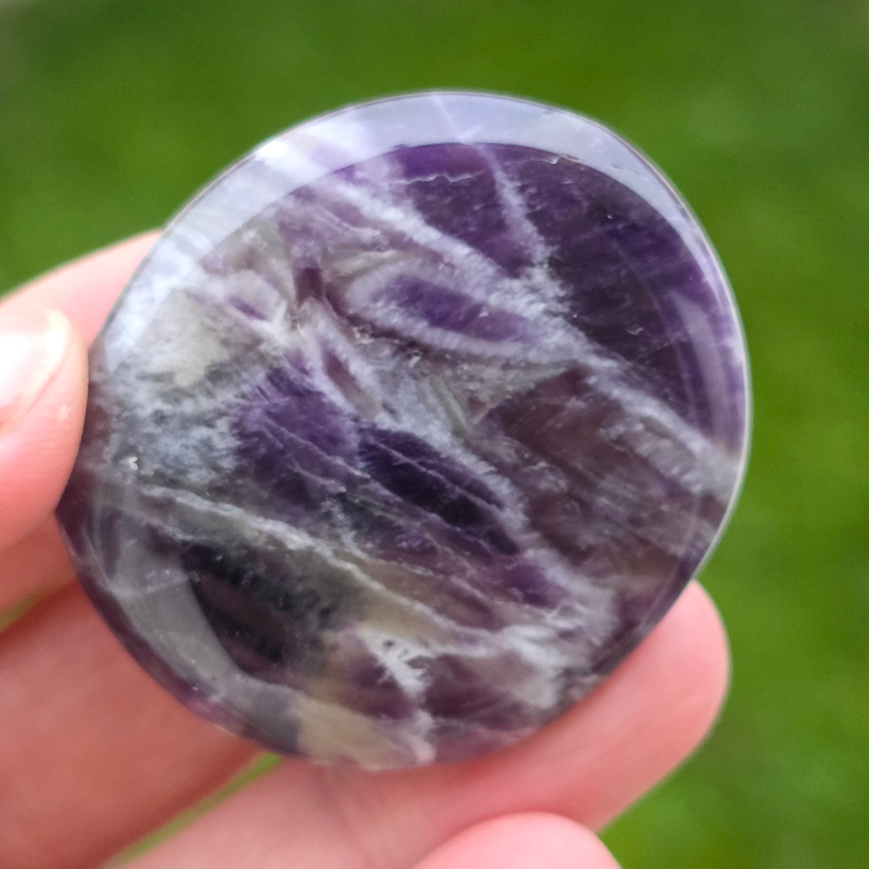 Ametyst Chevron jest rozpoznawany za powiązania z czakrami koronami i trzecim okiem, zwiększając intuicję i zdolność do podejmowania decyzji.