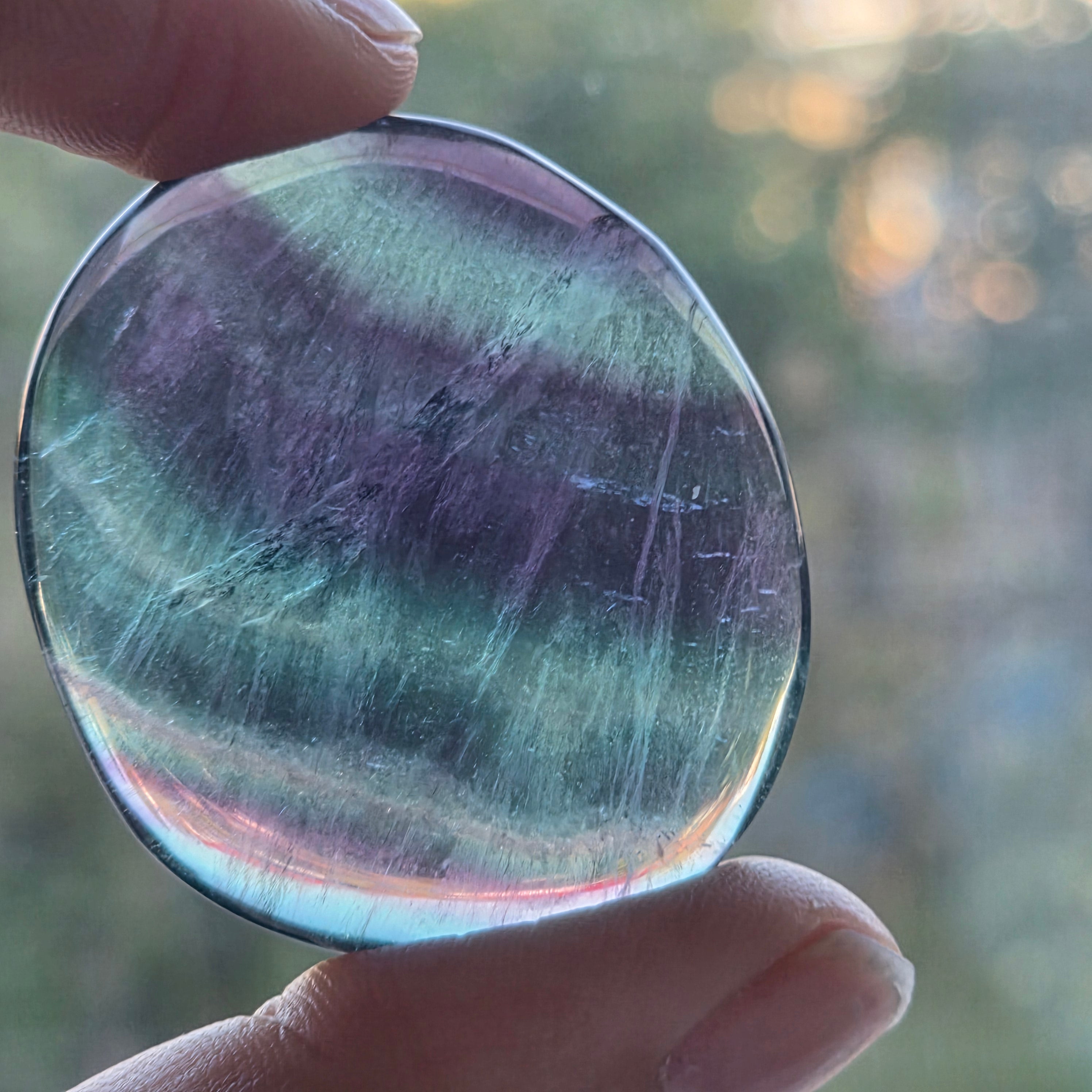 Ta mieszanina kolorów powoduje, że tęczowy fluoryt jest uważany za kamień ochrona, który usuwa negatywną energię i pomaga uporządkować myśli, dzięki czemu jest idealny dla osób poszukujących jasności psychicznej i duchowej.