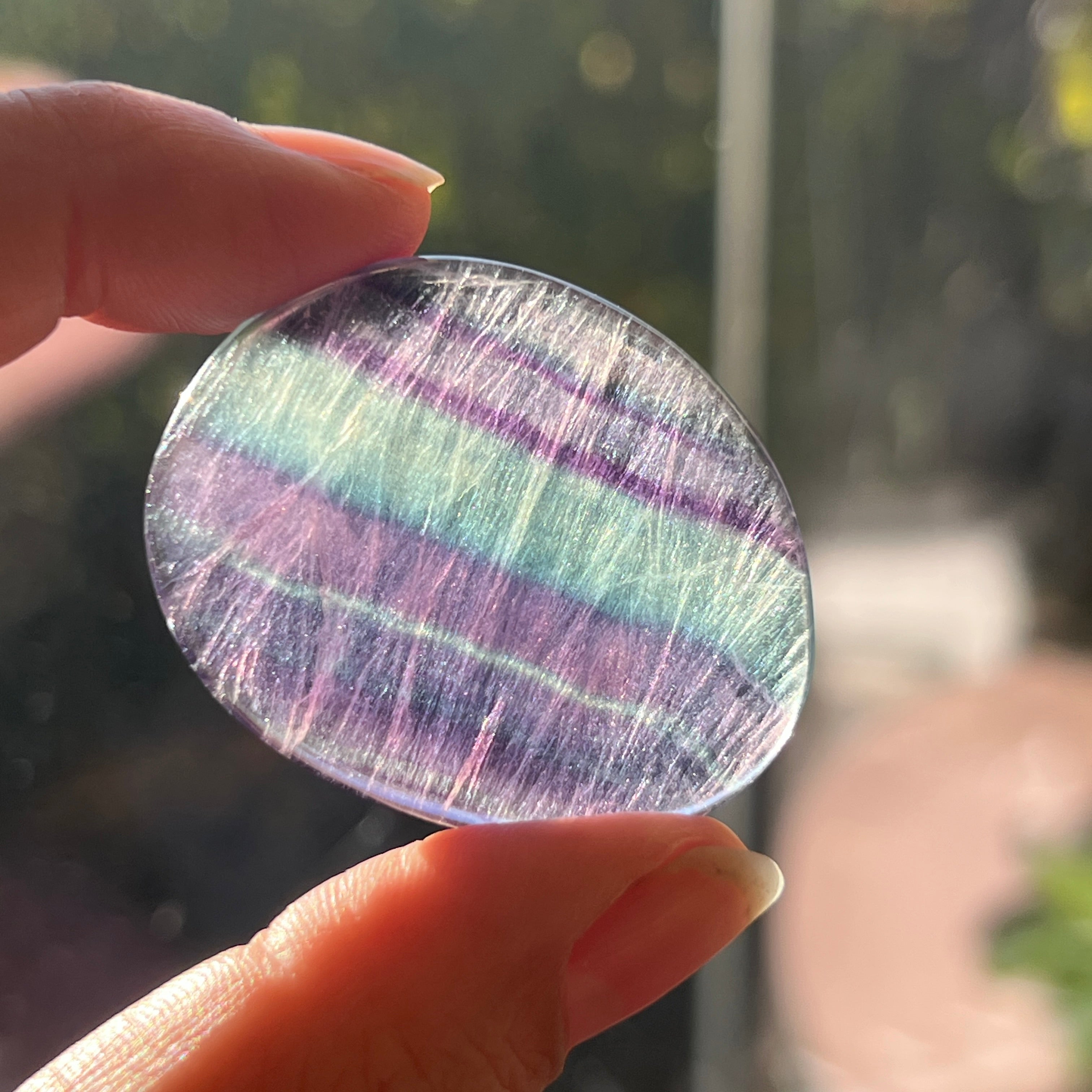 Tęczowy fluoryt jest znany jako kamień harmonia i równowaga, ponieważ łączy energie różnych kolorów w jednym kamieniu. Każdy kolor w tęczowej strukturze fluorytowej przynosi wyraźne korzyści: