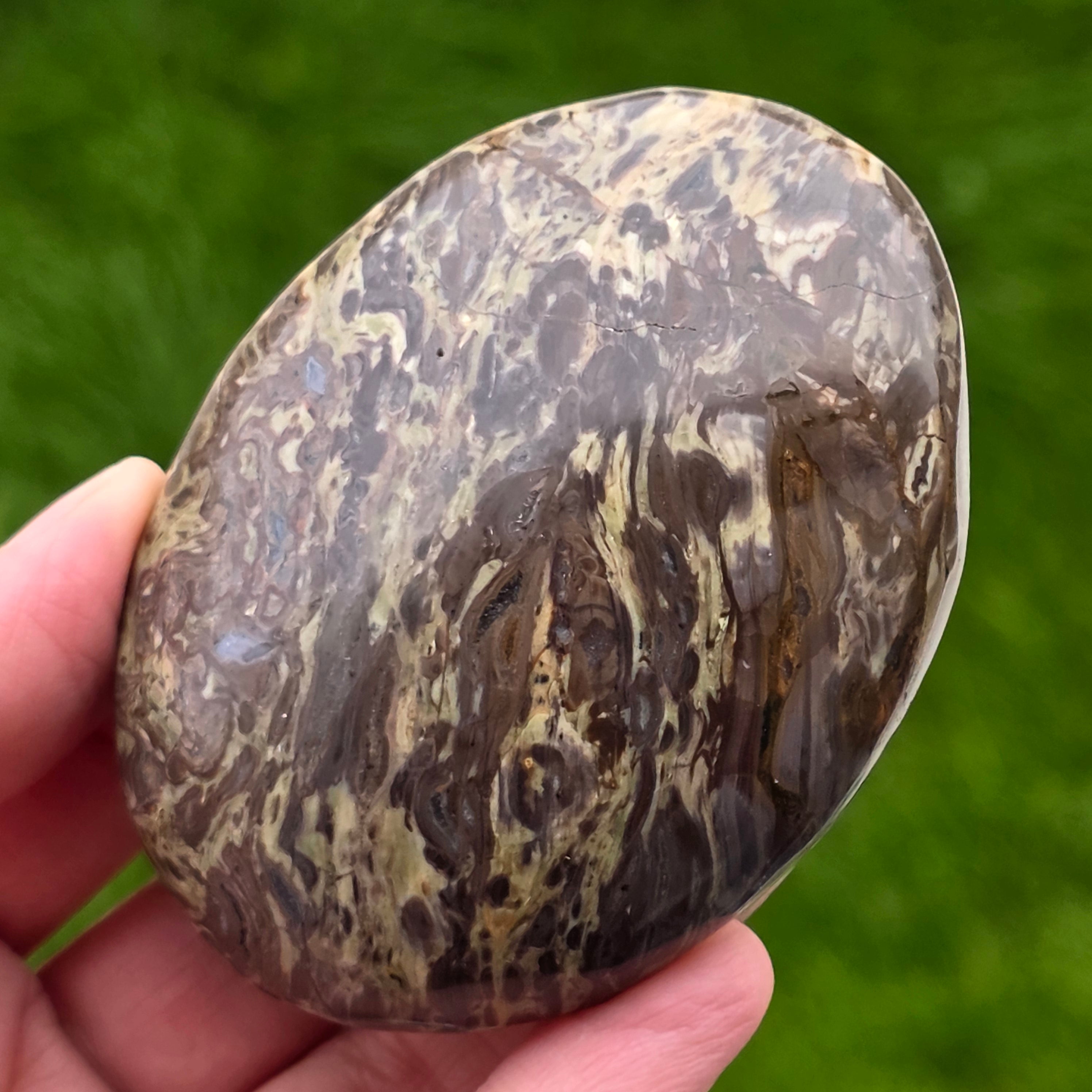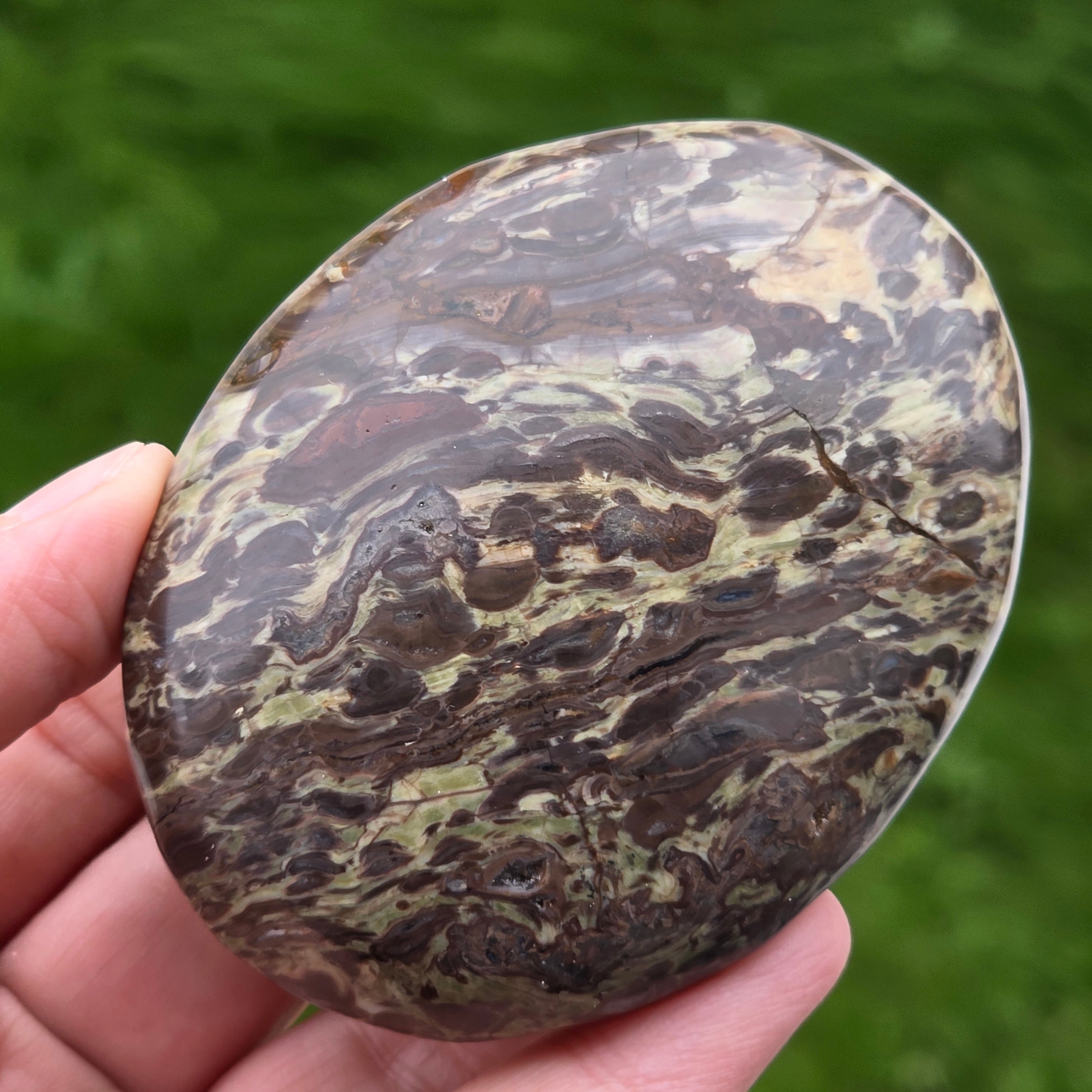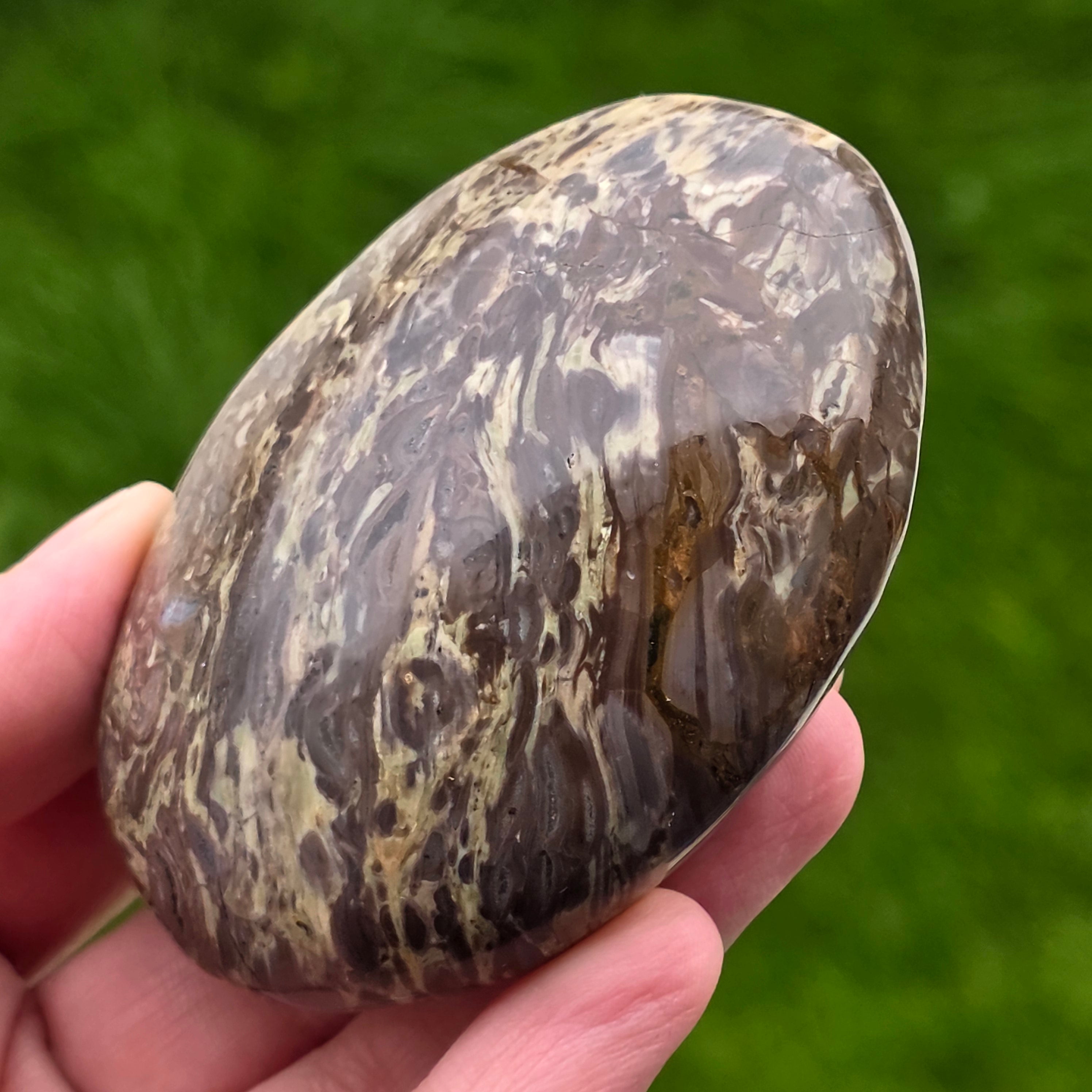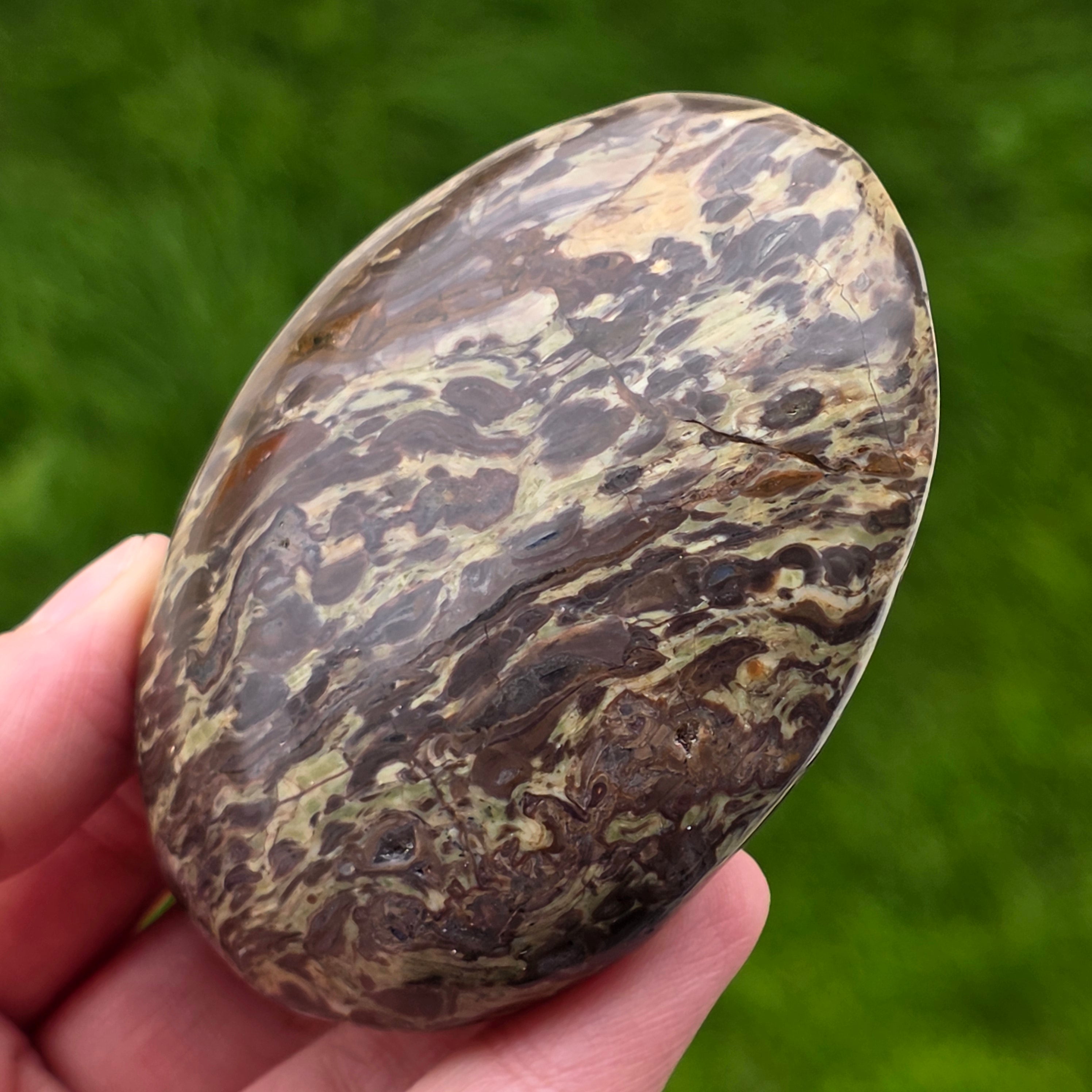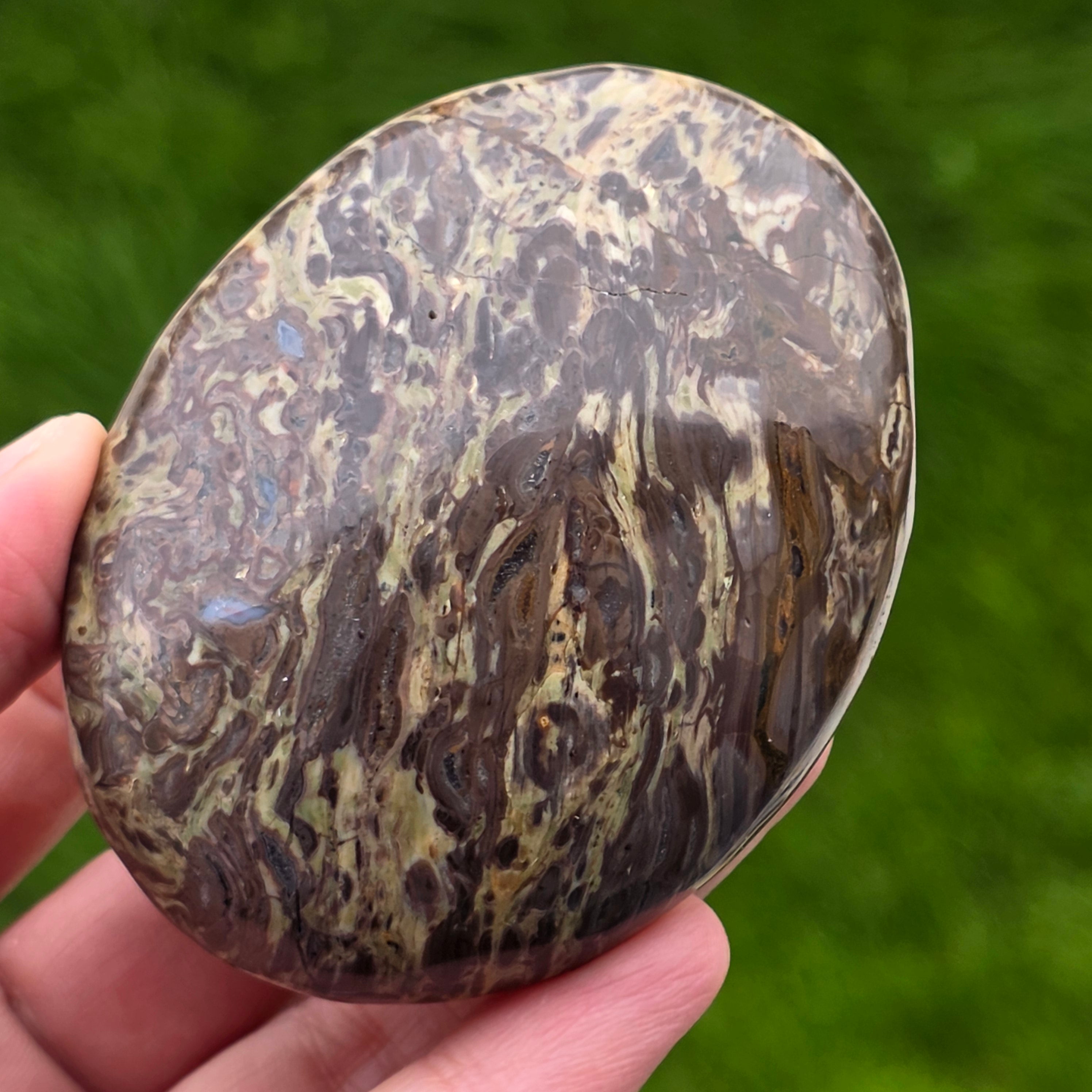 Każdy Palmstone jest wyjątkowy, naturalnie narysowany przez przepływ magmy i geologiczną cierpliwość tysiącleci. Jest to kamień Ziemi, odnowienie i uwolnienie stagnacji emocji - talizman dla tych, którzy chcą odrodzić się z własnych popiołów.