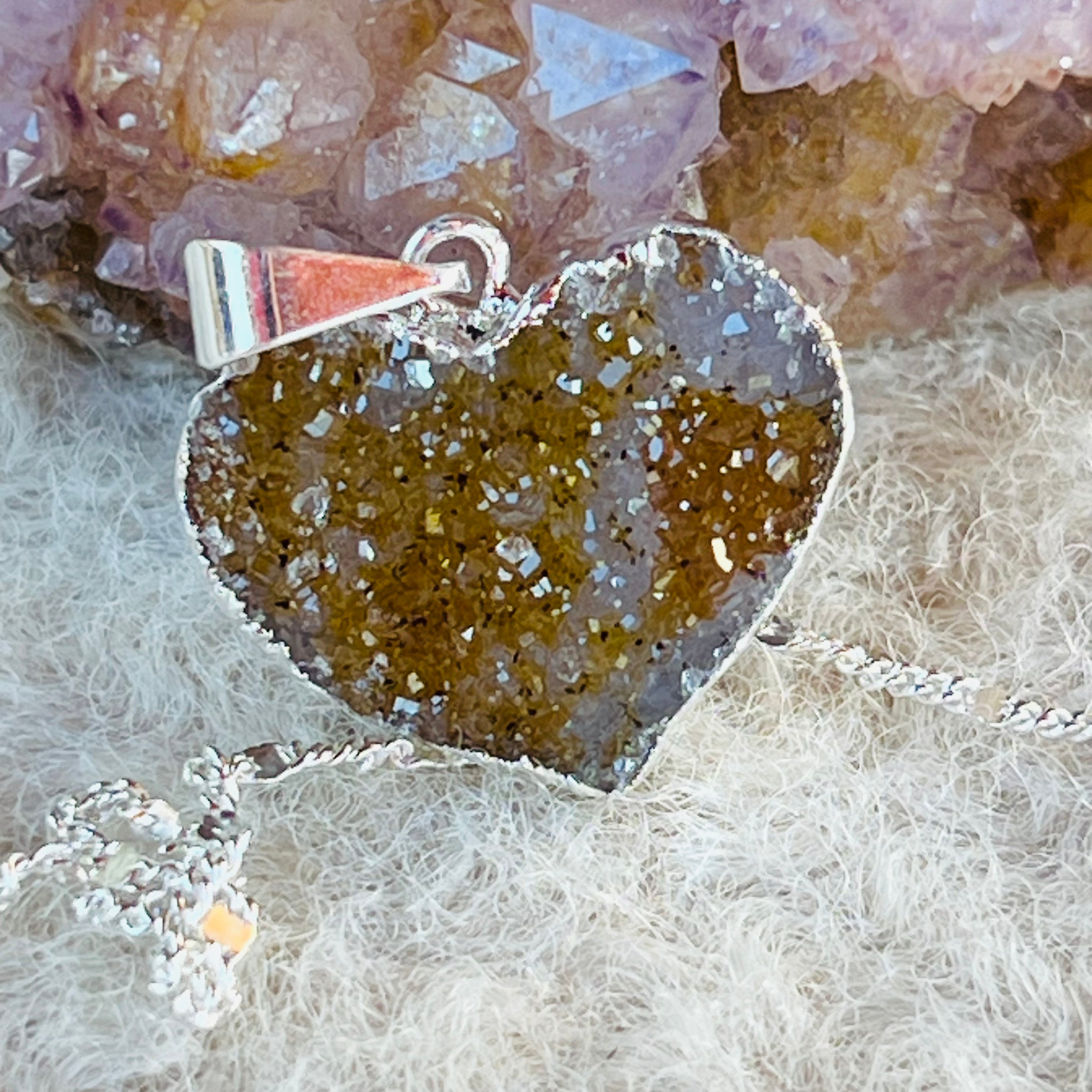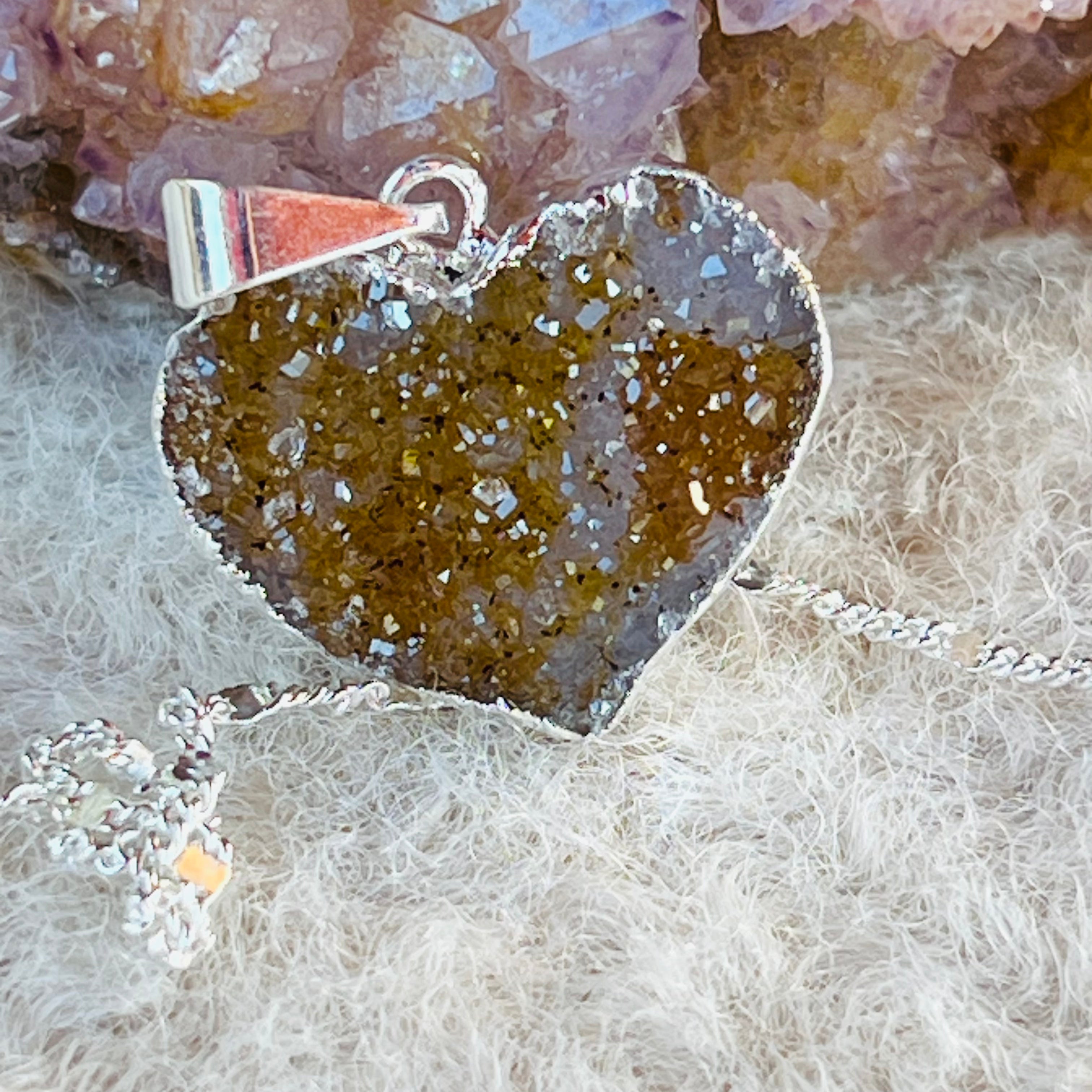 Pandantic Heart Agat Druzy z srebrem z Brazylii Model 2