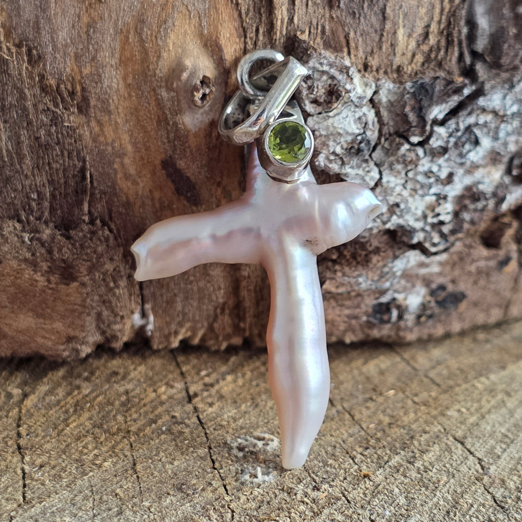 Pandantiv perla, peridot | Cruce