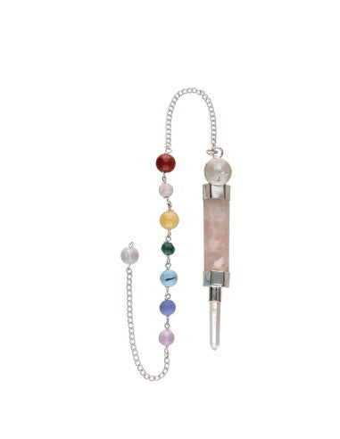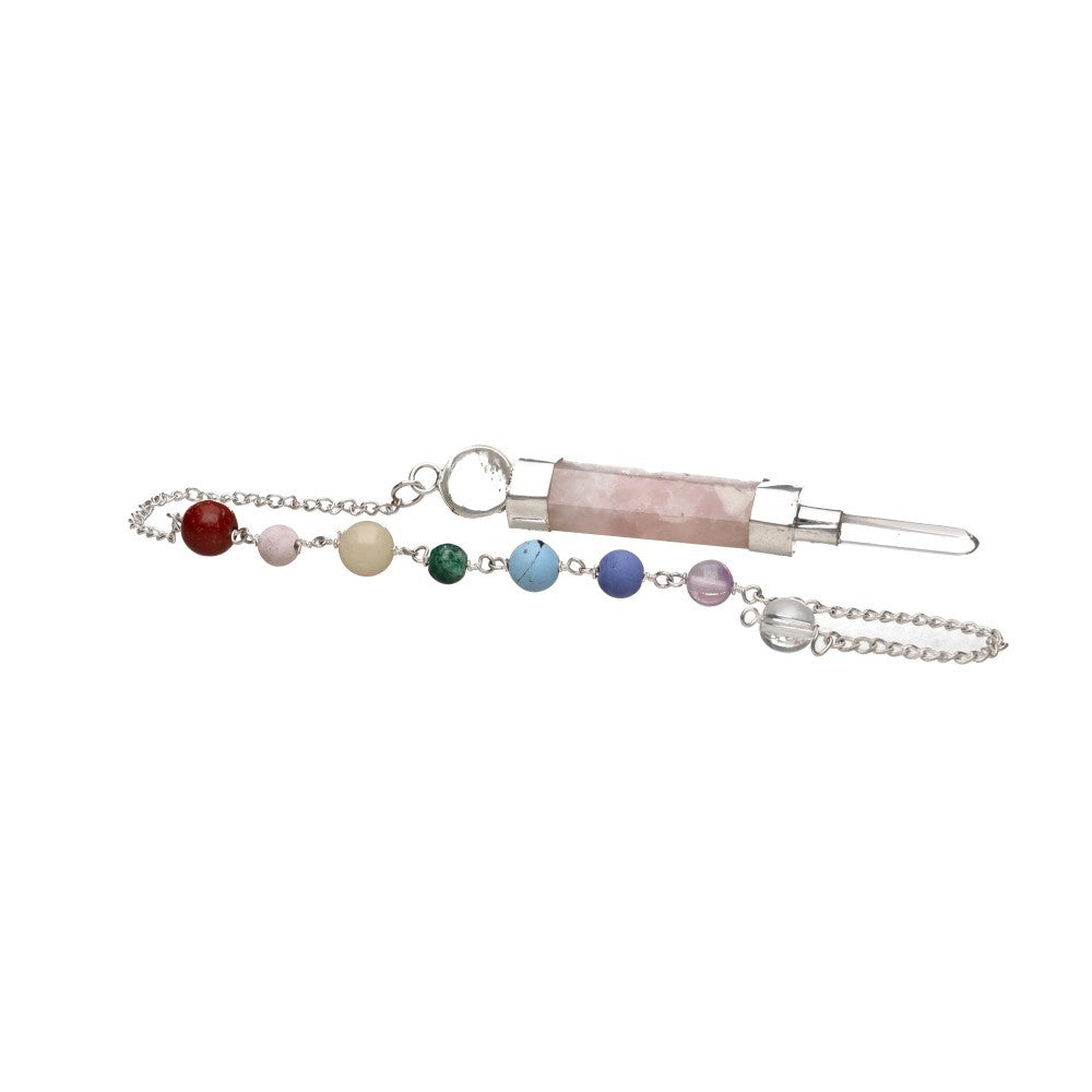 Pendul indian cuart roz cu snur 7 chakre