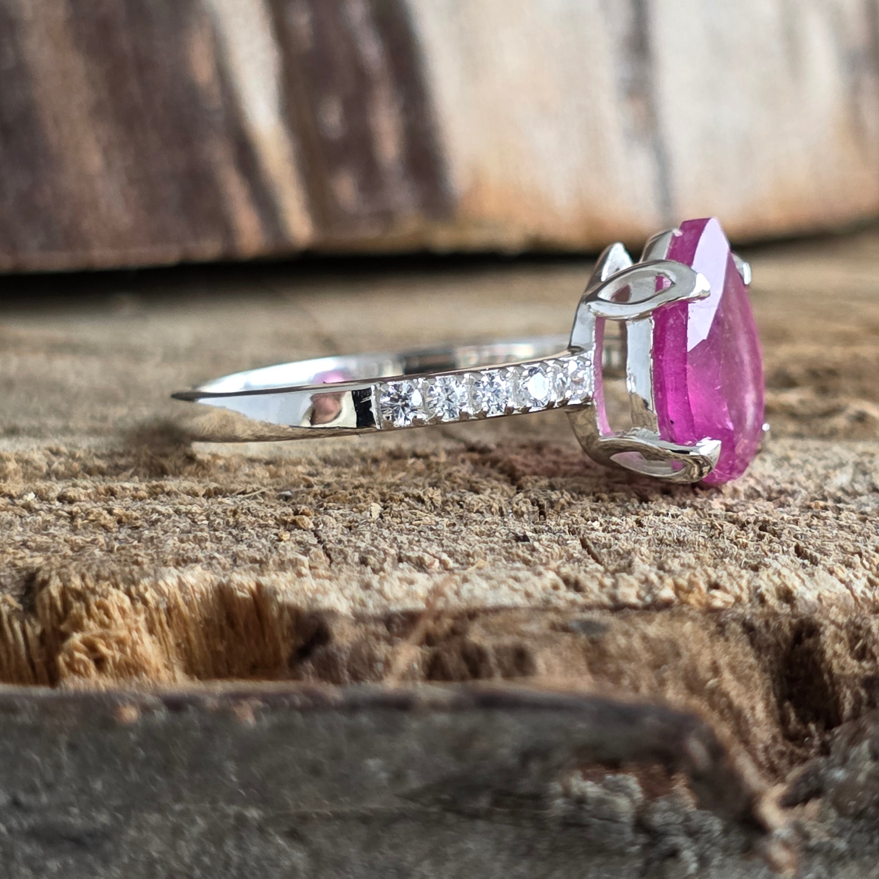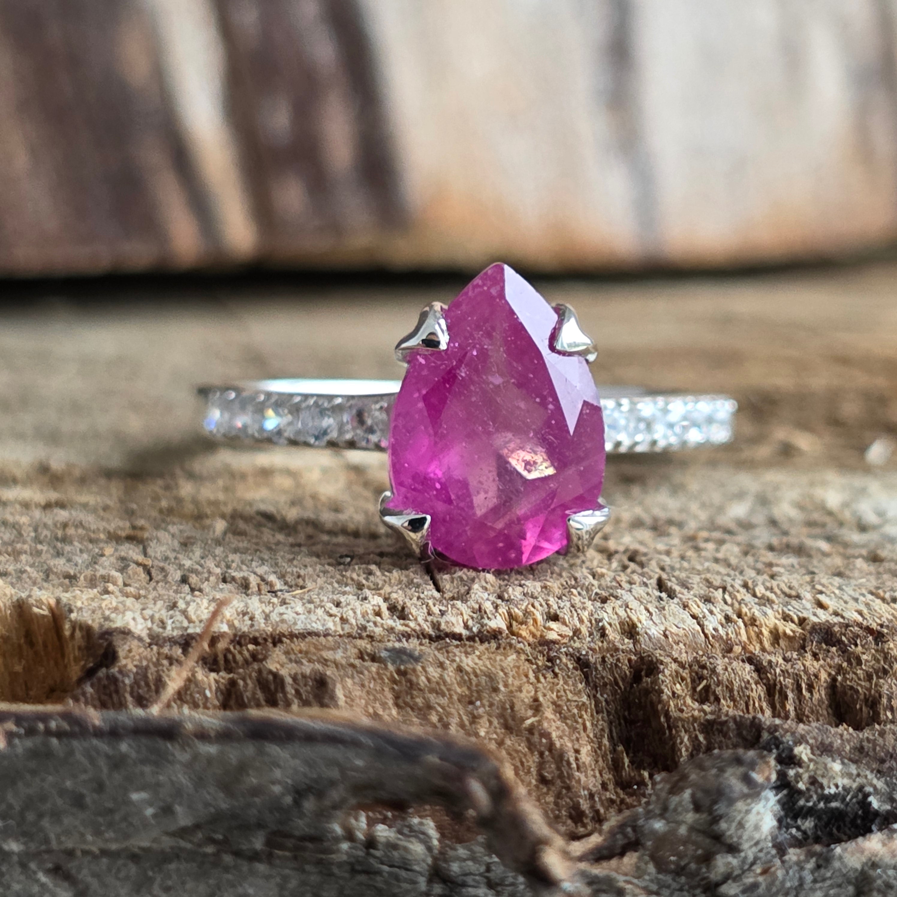 Pierścień Rubin ze srebrną gruszką topazową 10 mm