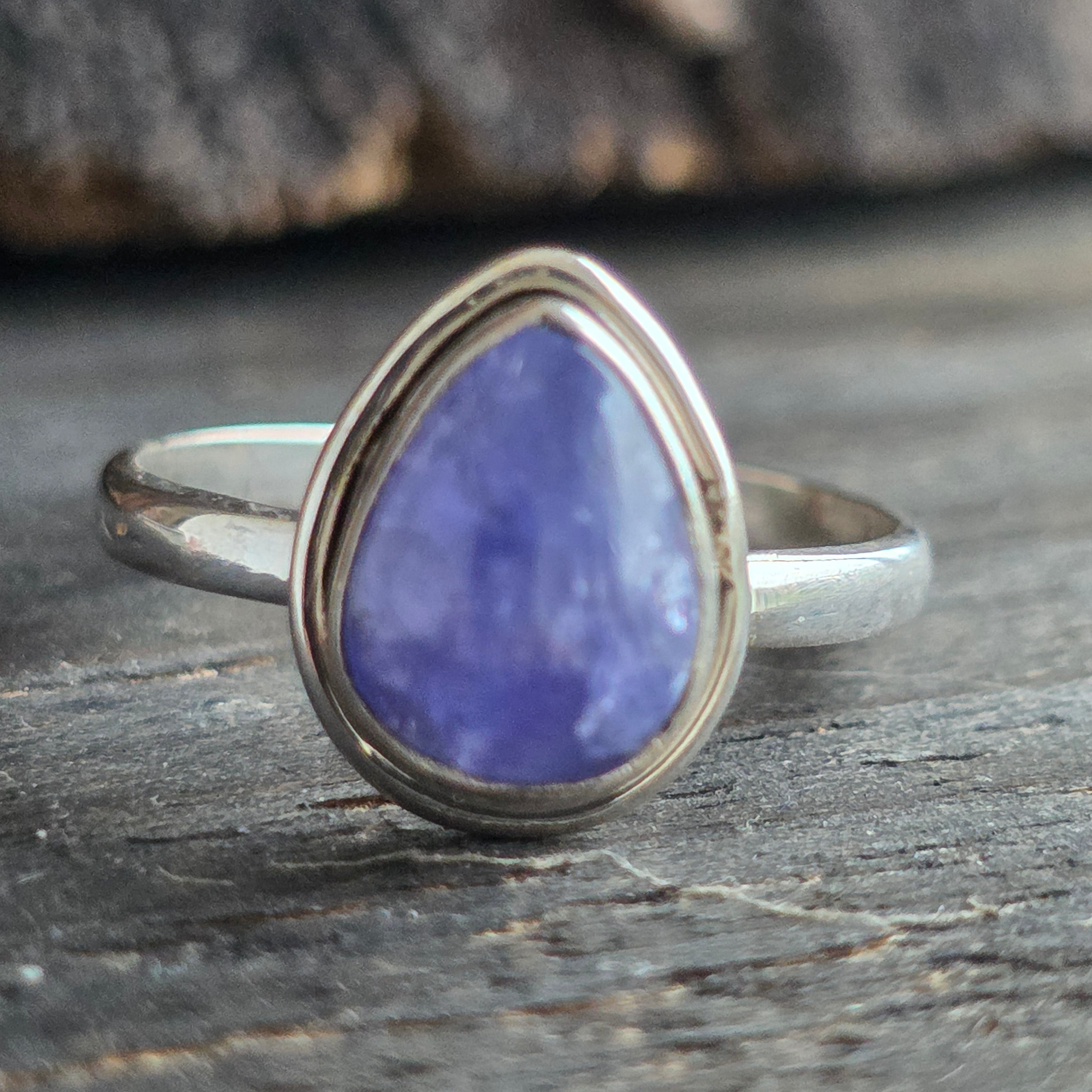 Wyrafinowany pierścionek ze srebra 925, z naturalnym tanzanitem w delikatnych odcieniach niebiesko-fioletowych, osadzony w designie twisted wire work , który dodaje głębi i elegancji. Każdy refleks tanzanitu zdaje się uchwycić wewnętrzne światło – symbol przemiany, jasności i inspiracji.