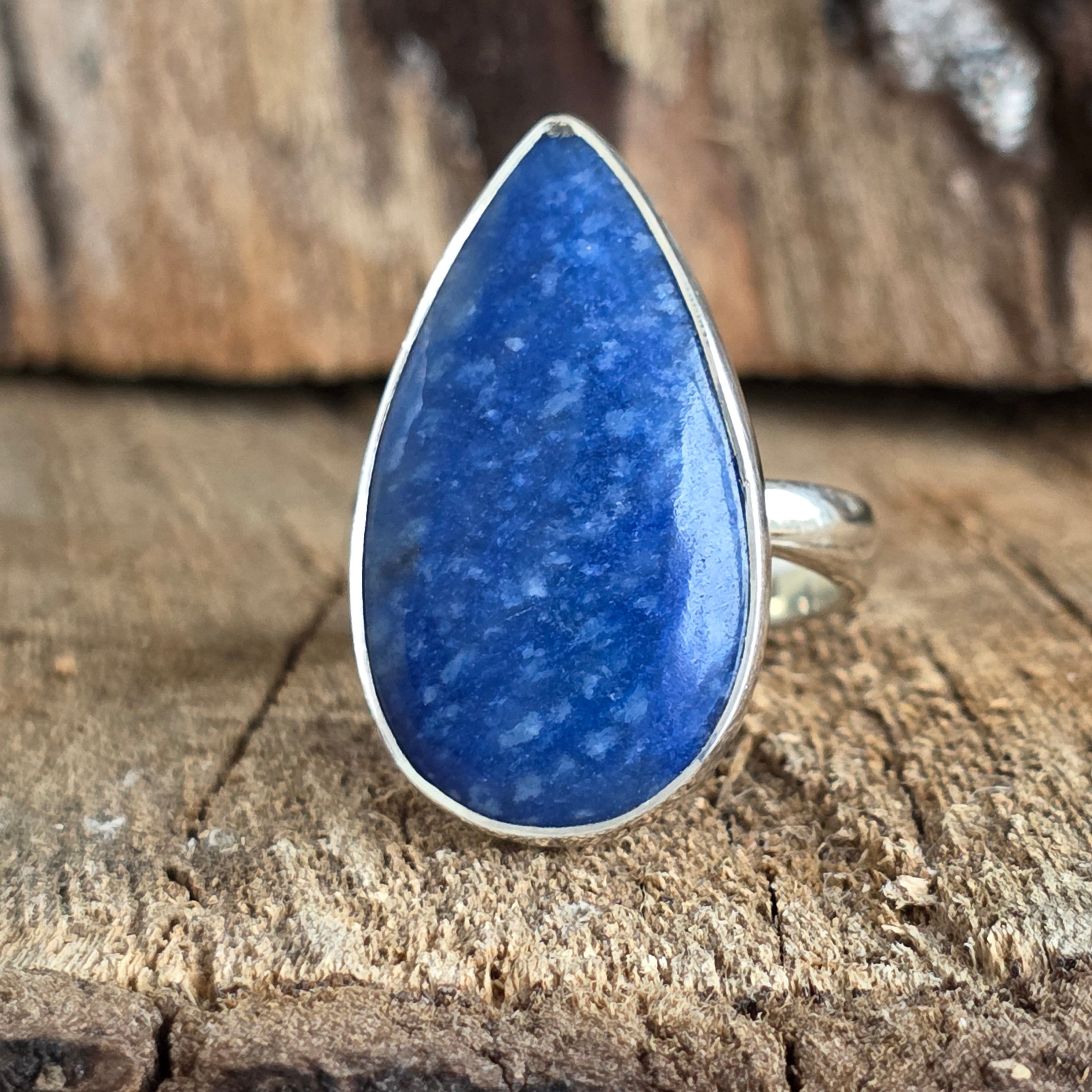 Pierścionek z niebieskim kwarcem (awenturyn) srebrny | Model 1