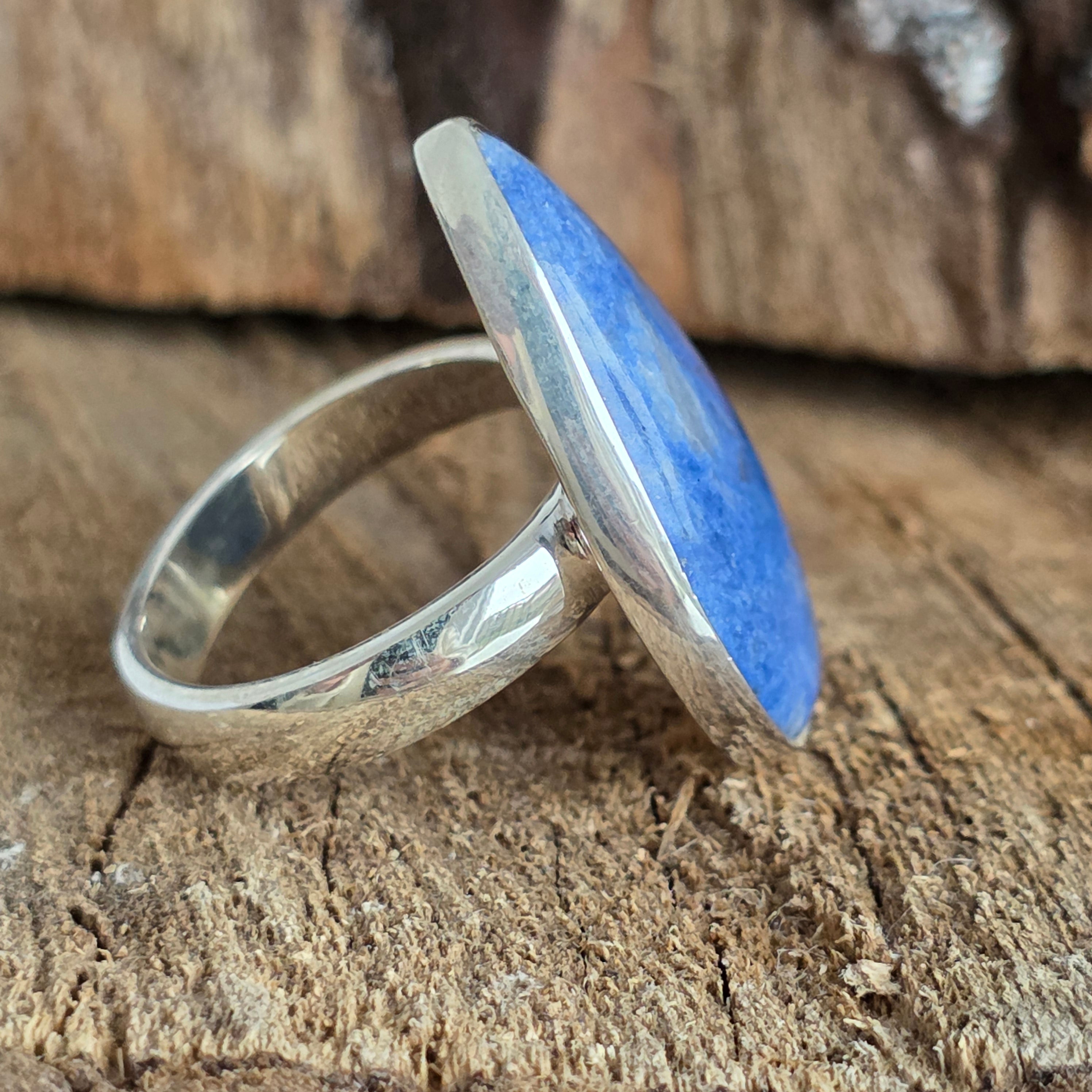 Pierścionek z niebieskim kwarcem (awenturyn) srebrny | Model 2