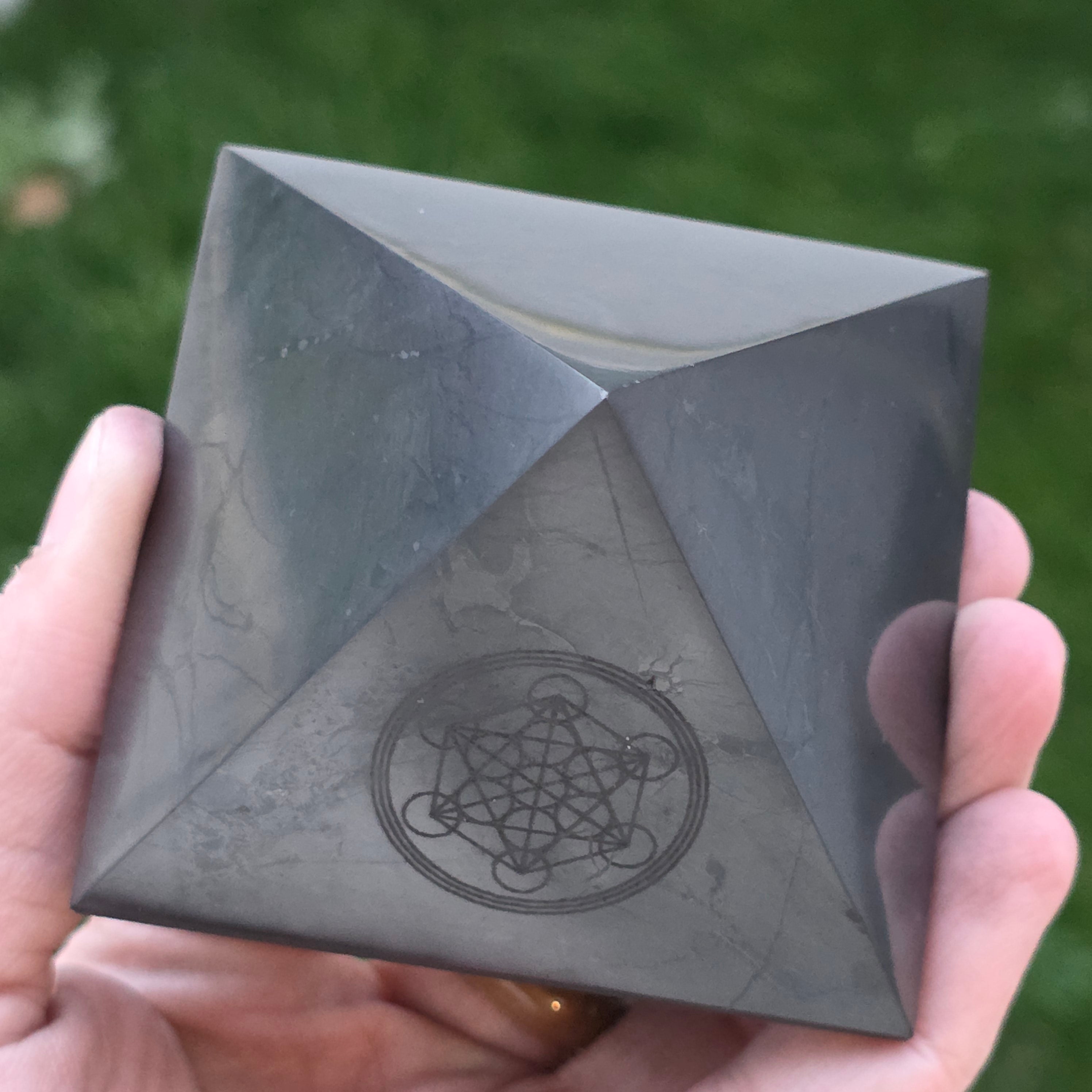 Szungit jest znany ze swoich silnych właściwości duchowych, mówi się, że pomaga oczyszczać i uzdrawiać pole energetyczne oraz zapewnia ochronę.