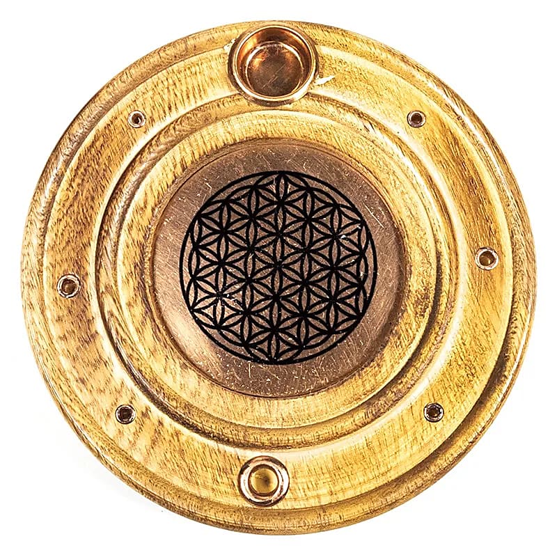 Podstawka do spalania kadzidełek z drewna mango - Flower of Life | Model 2
