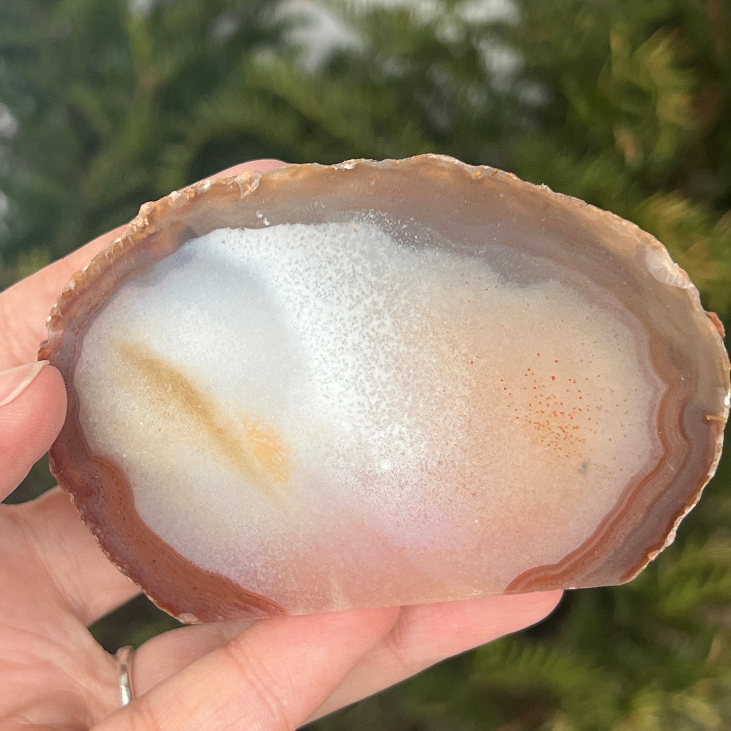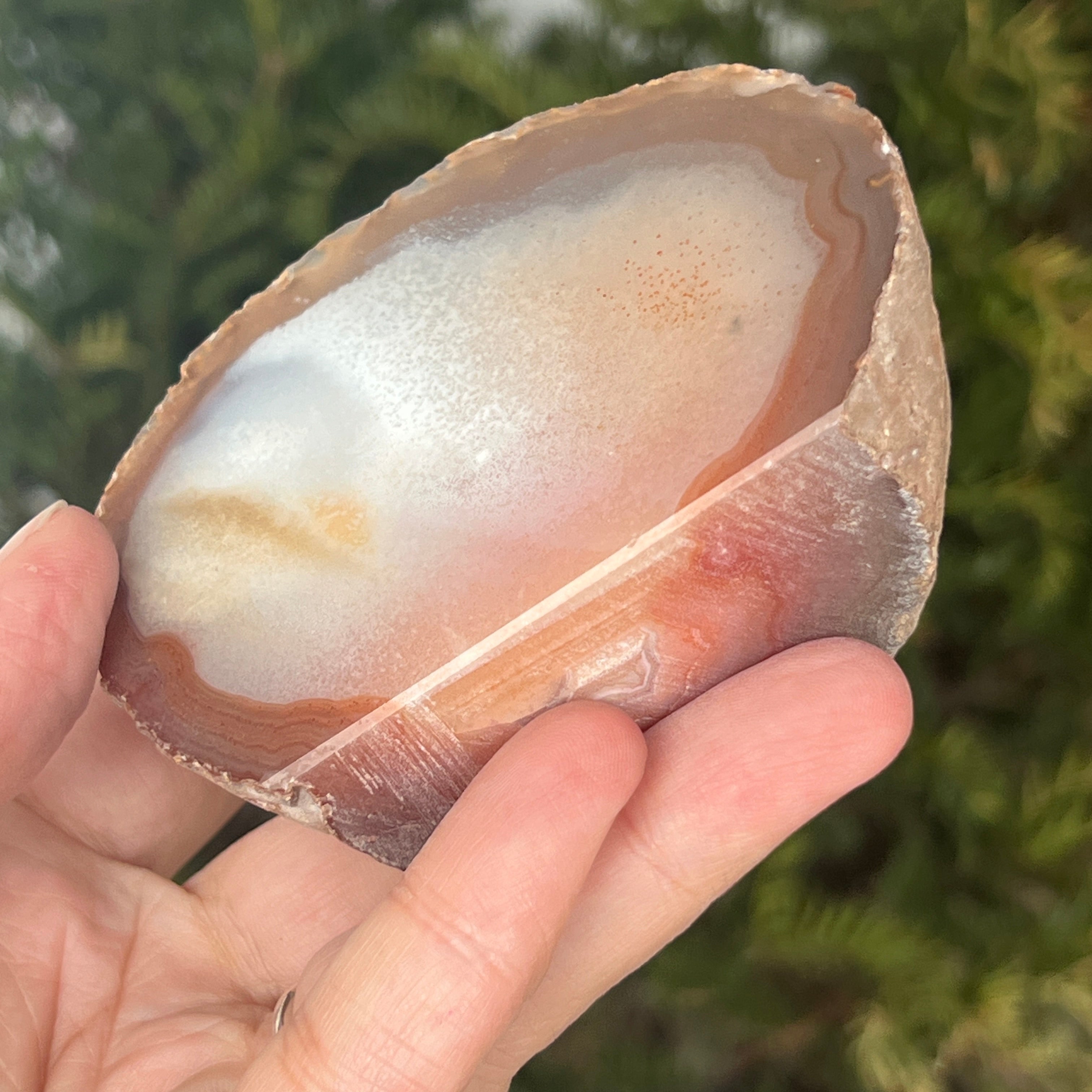 Czerwony agat to odmiana kwarcu mikrokrystalicznego z rodziny chalcedonów, powstała wskutek kolejnych osadów krzemionki w pustkach wulkanicznych. Jego ciepłe odcienie często są wpływane przez obecność tlenków żelaza, co nadaje mu intensywny kolor. Jest to odmiana agatu ceniona zarówno za naturalne piękno jego pasm, jak i za symbolikę związaną z witalnością, odwagą i równowagą emocjonalną.