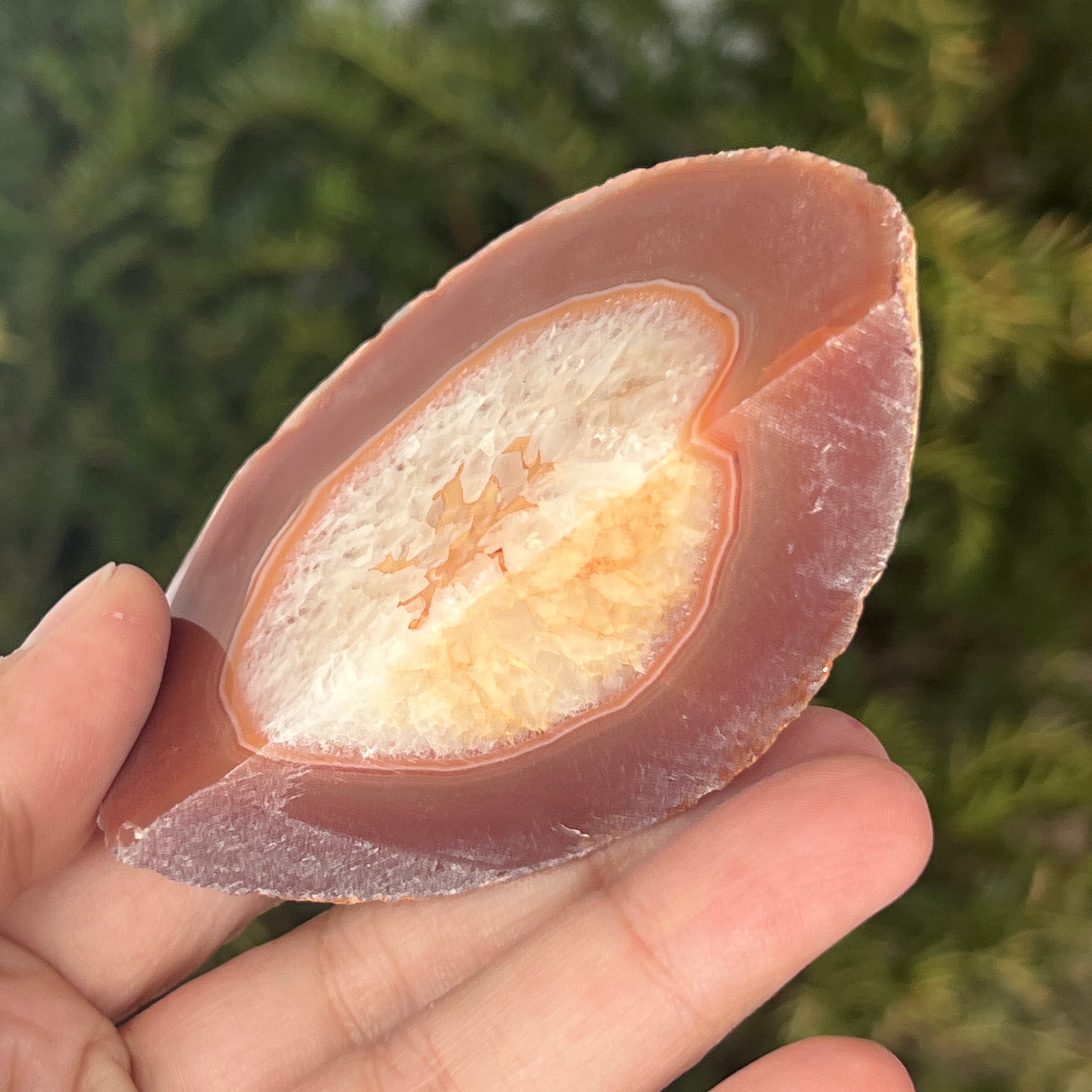 Czerwony agat to odmiana kwarcu mikrokryształowego z rodziny chalcedonu, powstała w wyniku stopniowego odkładania krzemionki w wulkanicznych szczelinach. Jego ciepłe odcienie są często kształtowane przez obecność tlenków żelaza, które nadają mu intensywny kolor. Jest to odmiana agatu ceniona zarówno za naturalne piękno pasm, jak i symbole związane z witalnością, odwagą i równowagą emocjonalną.