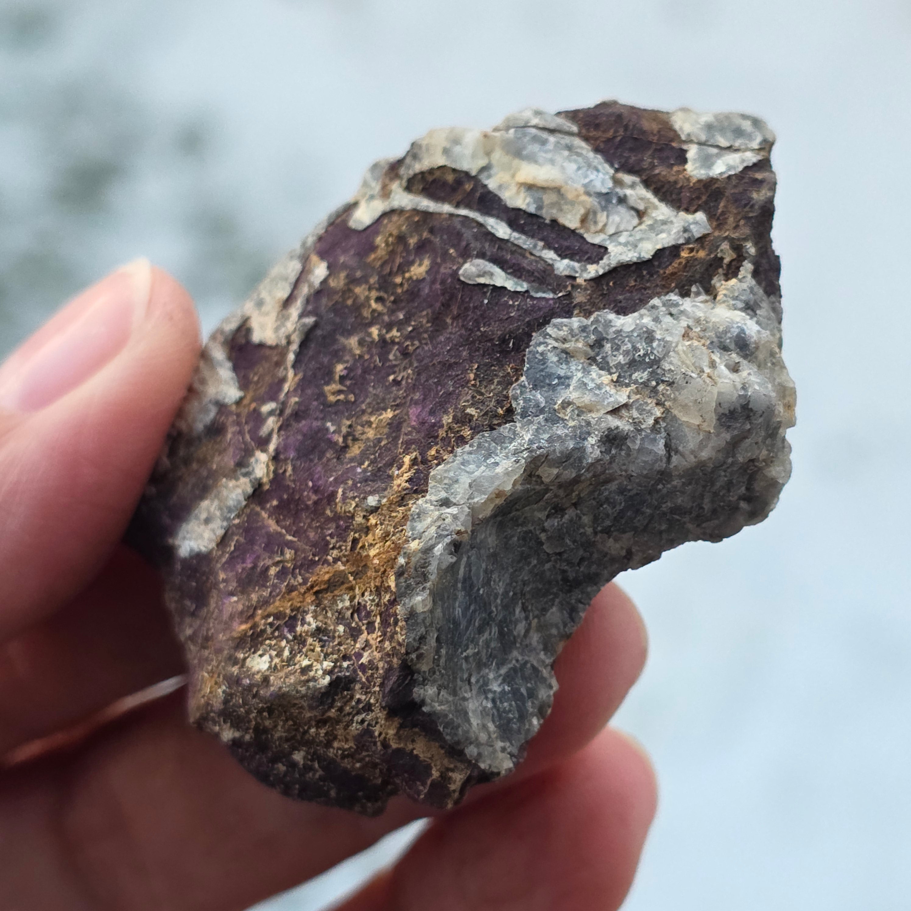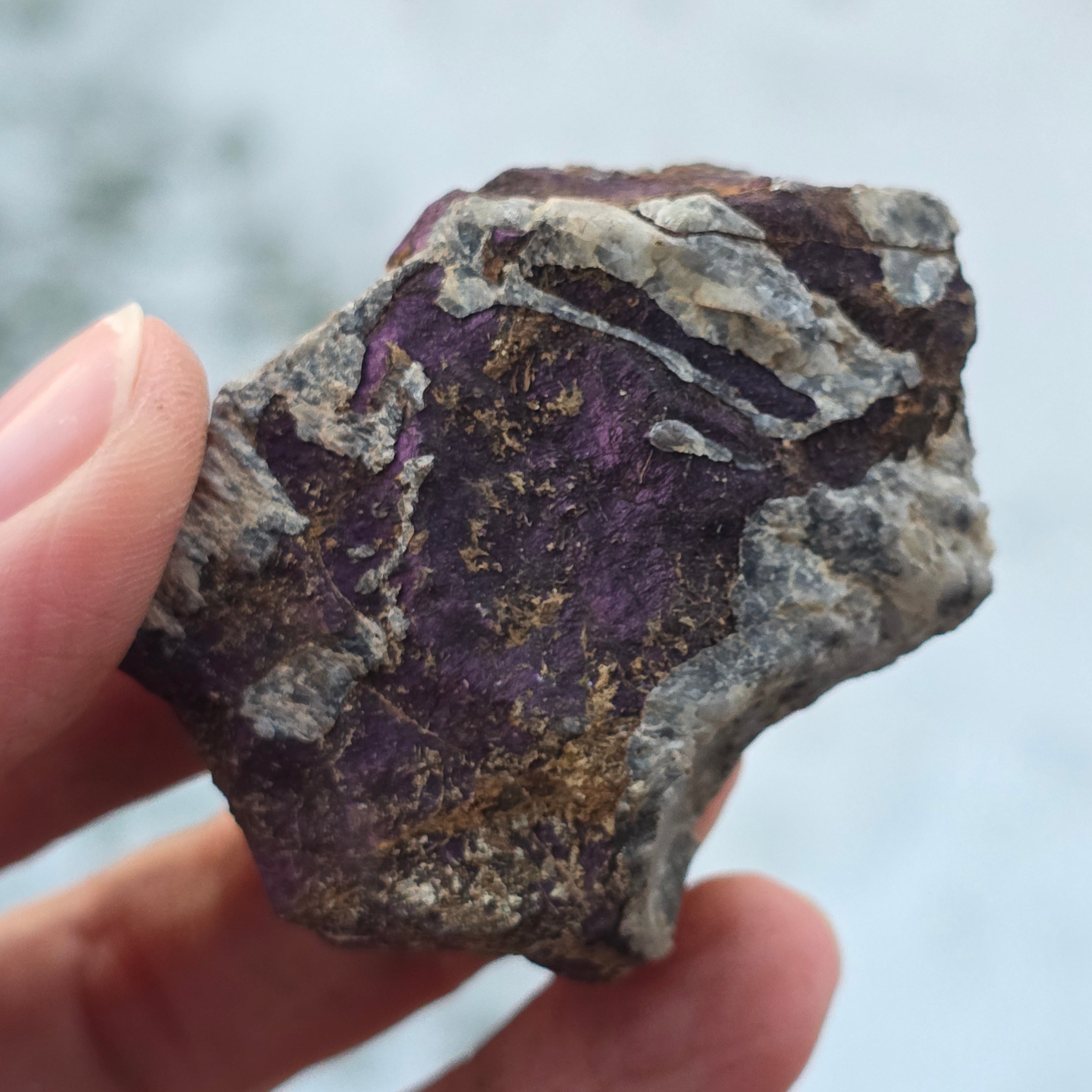 Purpuryt składa się z minerału zwanego "purpurytem", który jest fosforanem manganu i żelaza. Fioletowy może mieć ziarnistą teksturę i różnić się intensywnością koloru.