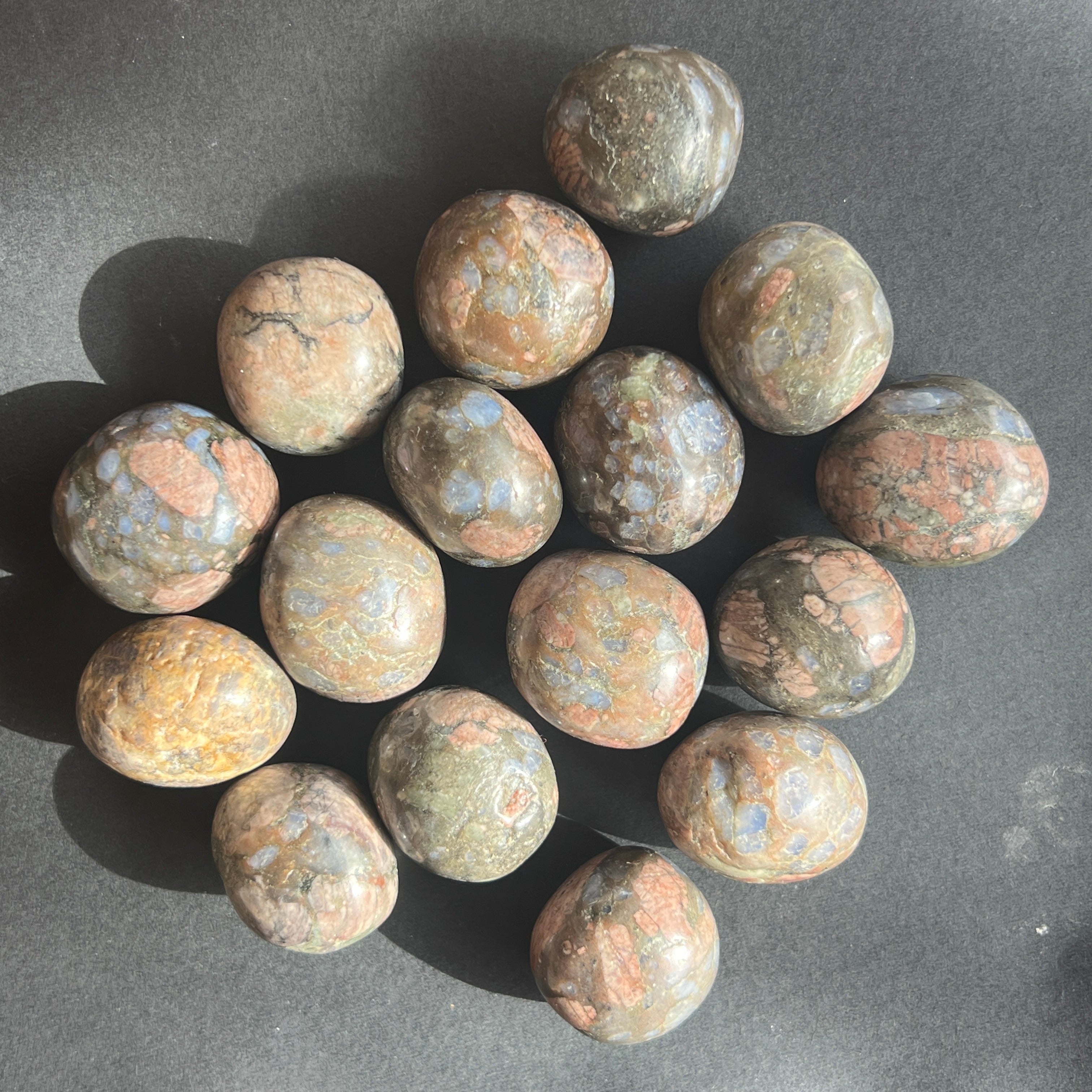 Co to będzie Jest to minerał złożony składający się z mieszaniny kilku minerałów, w tym kwarcu, klinozozytu, skalenia, kaolinitu, magnetytu, leukoksenu i rutylu. Występuje w Brazylii i jest znany z unikalnej kombinacji kolorów, która może obejmować odcienie niebieskiego, szarego, brązowego i czarnego.