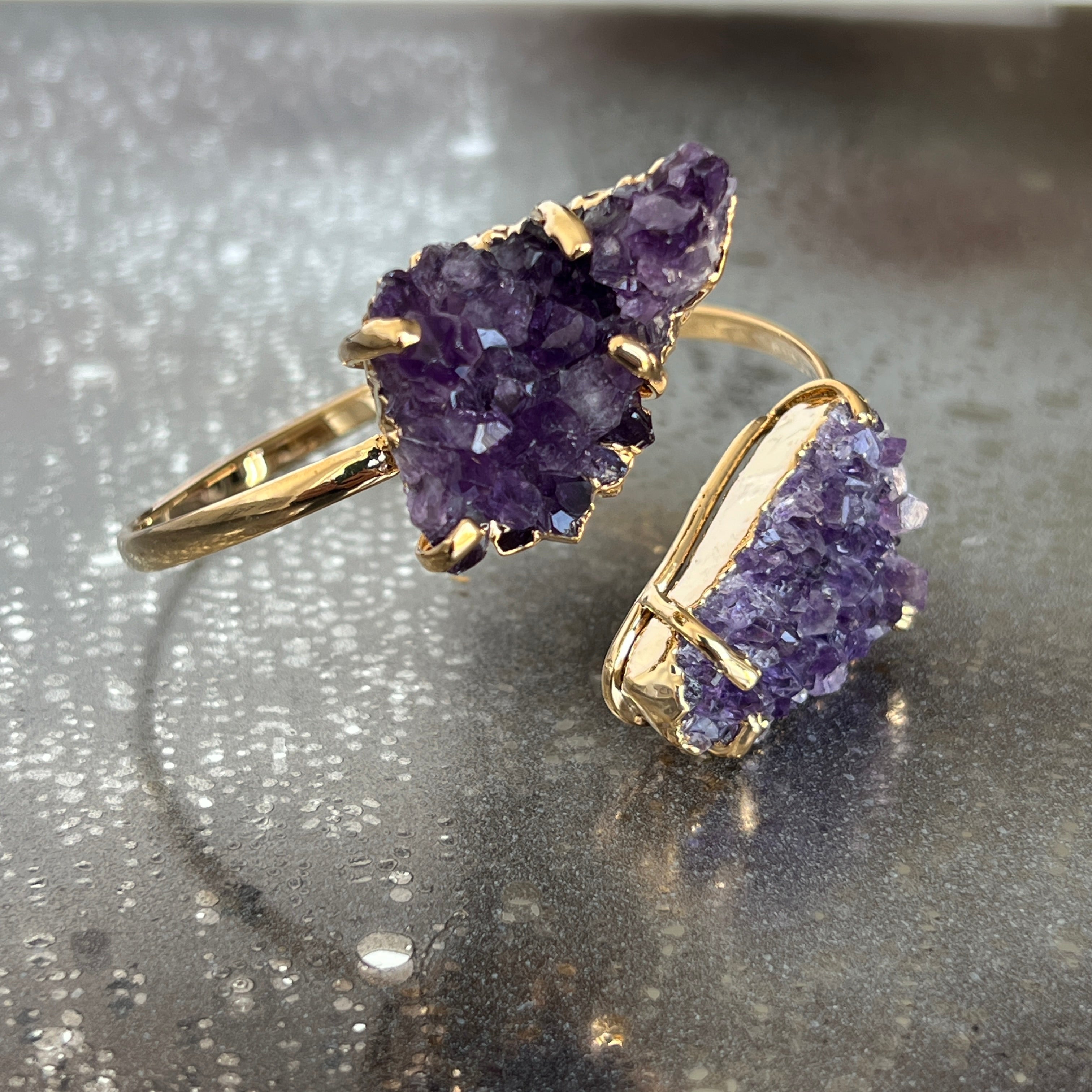 Regulowana bransoletka dmuchana z druzy ametystowego złota Brazylia model 2