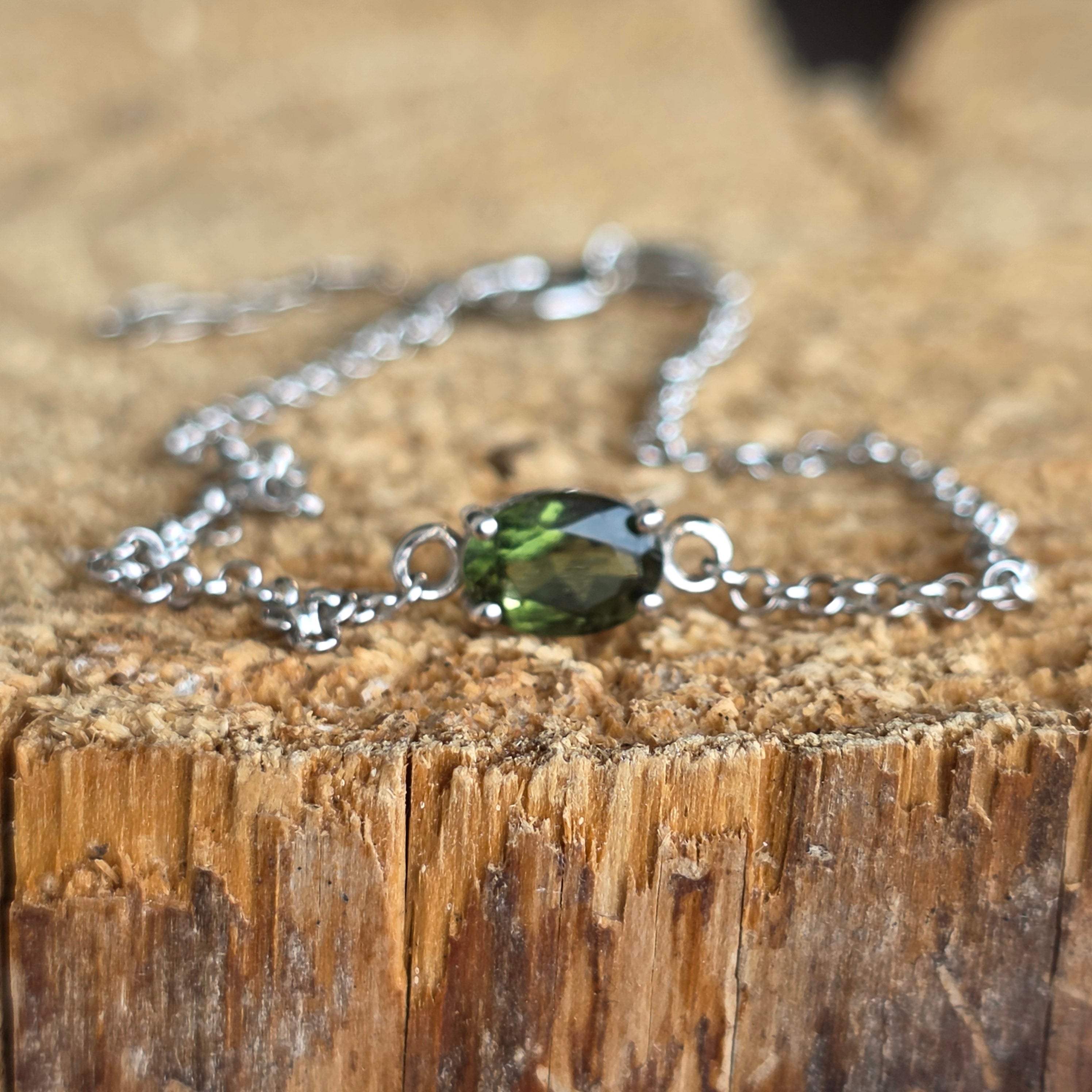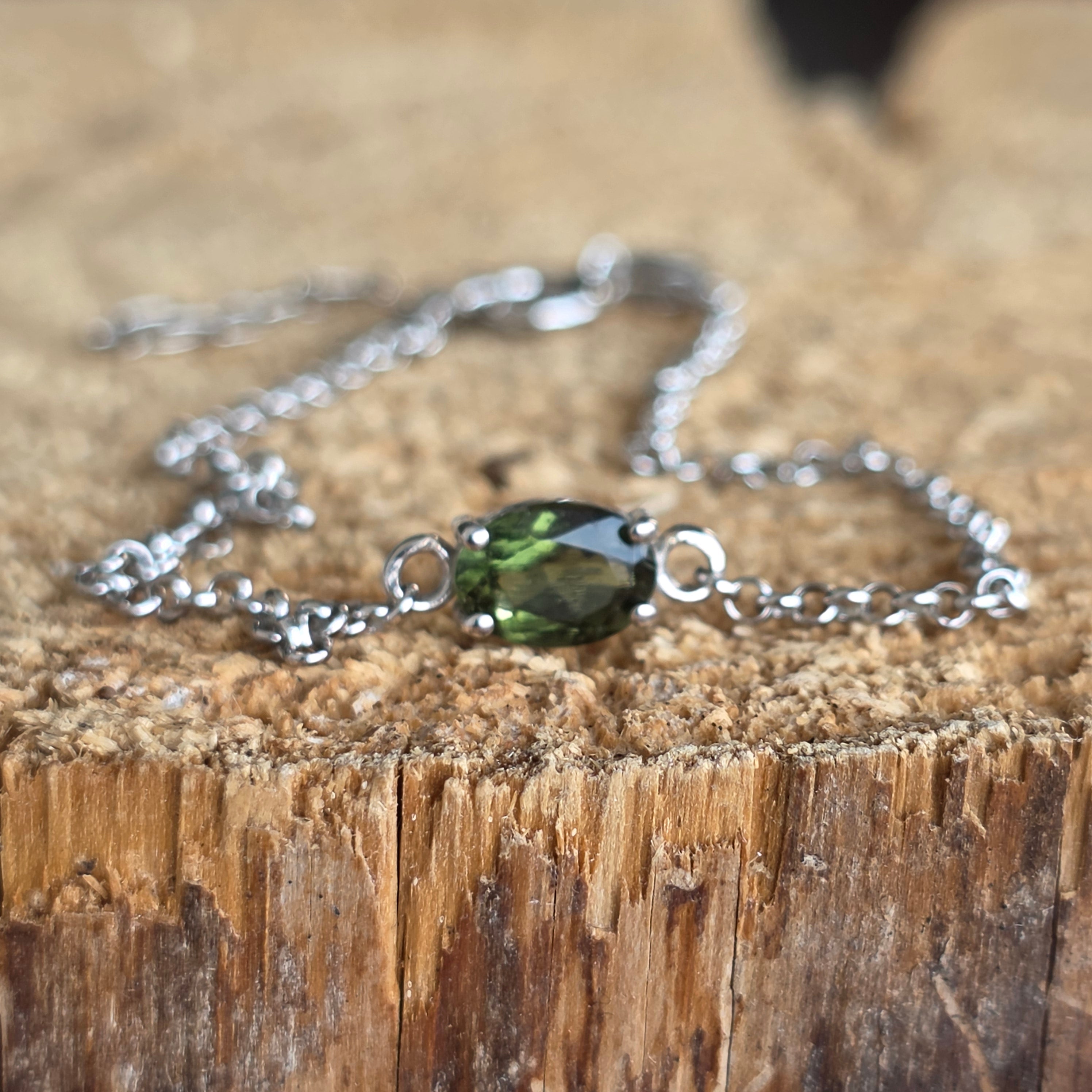 Regulowana bransoletka srebrna, moldawit | Model 1