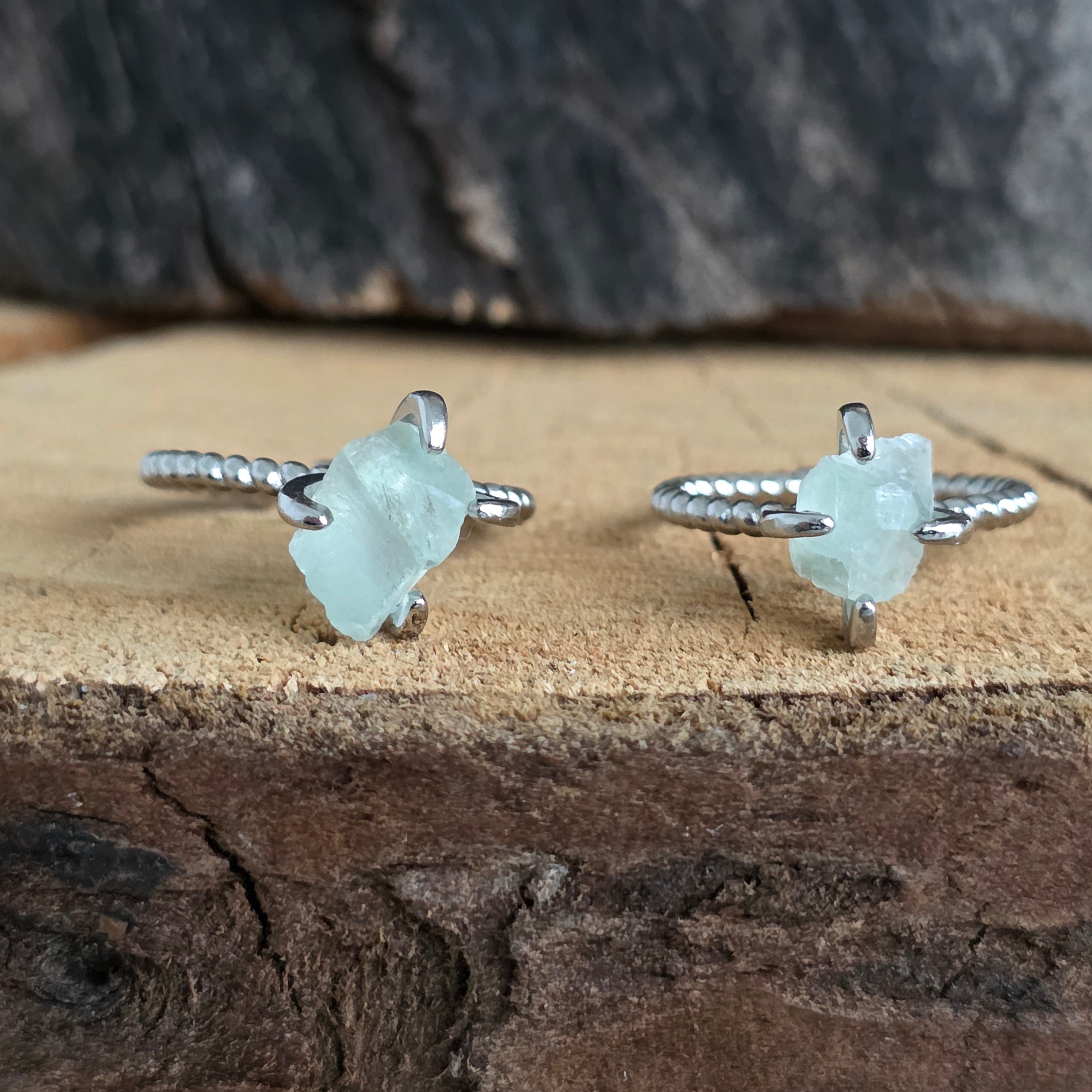 Opis - Regulowany pierścionek akwamaryn | Raw