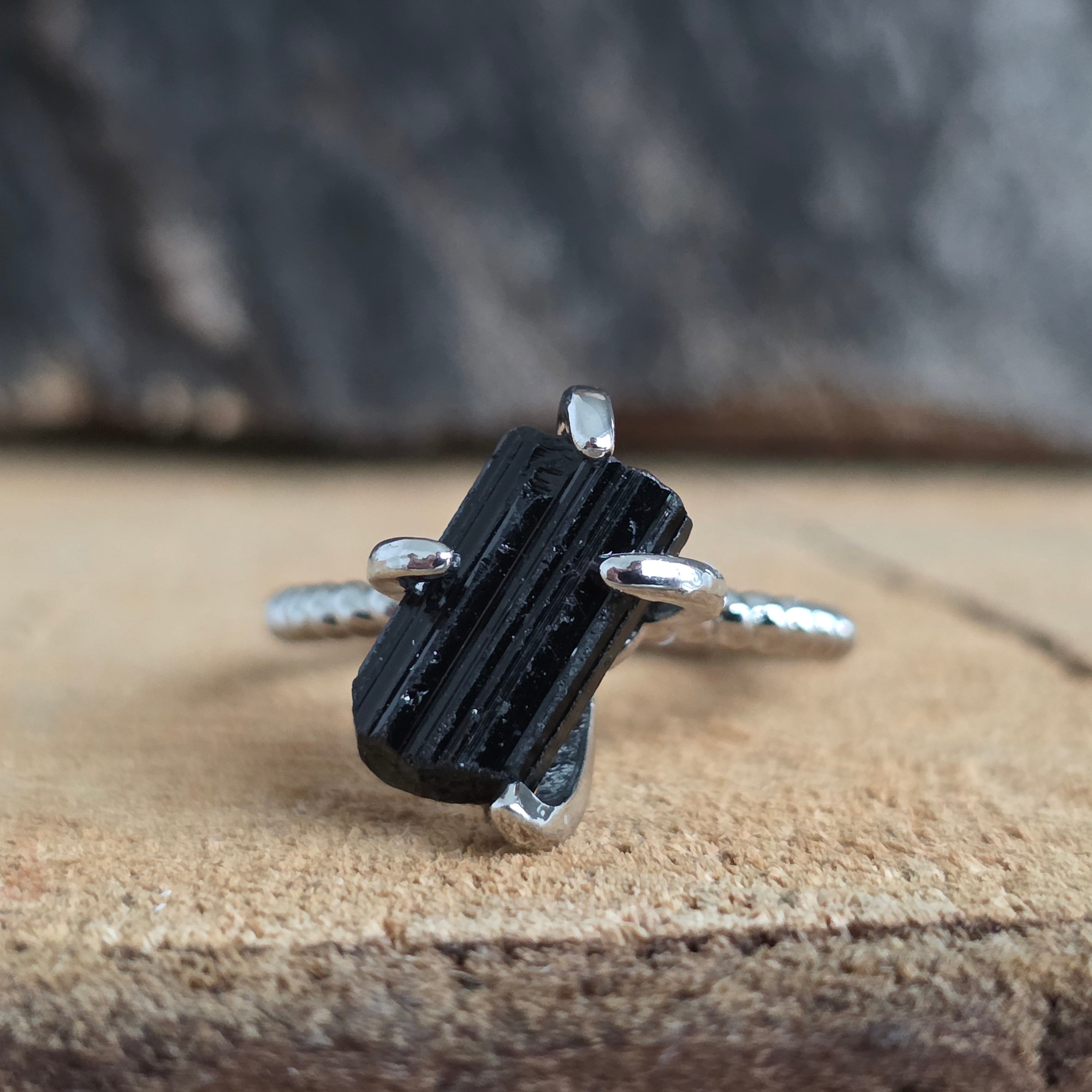 Opis - Regulowany pierścionek turmalinowy | Raw