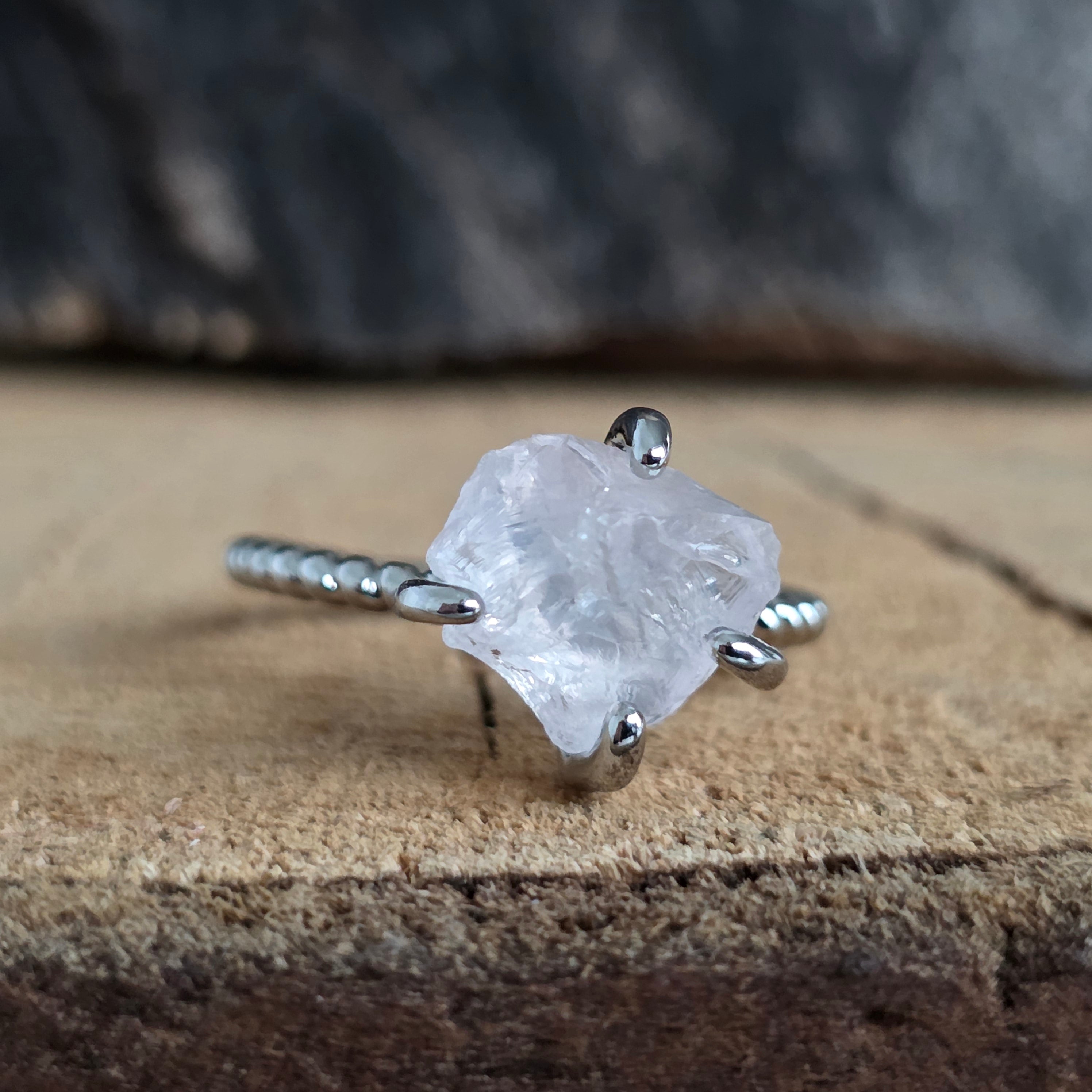 Opis - Regulowany pierścionek z różowym kwarcem | Raw