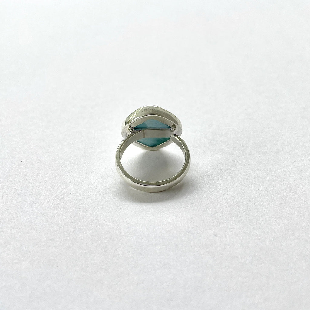 Unikalny pierścień naturalnych larimis, znany jako Kamień nieba i oceanu. Jego odcienie wodnego niebieskiego, z białymi odbiciami, takimi jak fale morza, przynoszą wewnętrzny pokój i poczucie nieskończonej wolności.