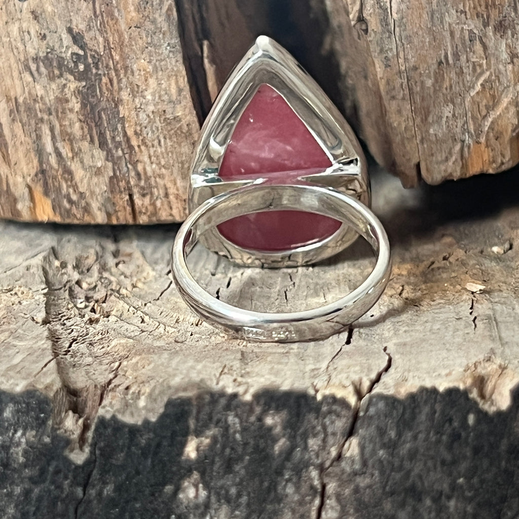 Ten Naturalny pierścień zapalenia rodochorystycznego zamontowany w 925 srebrnym Jest to specjalny utwór, który łączy piękno kamienia z klasyczną elegancją srebra. Każdy pierścień jest wyjątkowy, ze względu na różowe chorych prądu specyficzne dla Rhorocrosit, co czyni go prawdziwym klejnotem kolekcji.