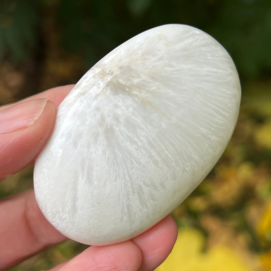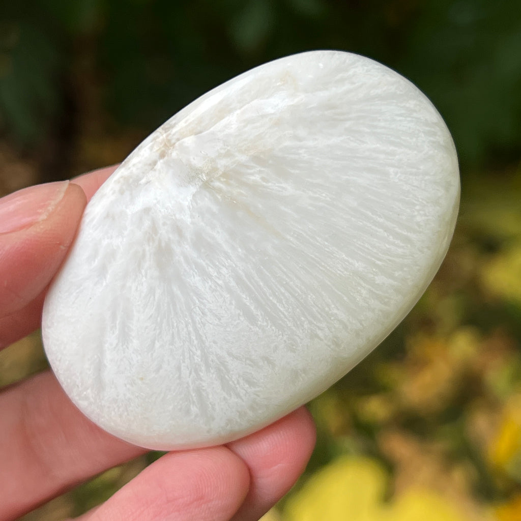 Scolecitul este o piatră delicată și luminoasă, aparținând familiei zeoliților, recunoscută pentru structura sa fină, fibros-radială și strălucirea mătăsoasă. De obicei albă sau crem, uneori cu nuanțe subtile de roz sau bej, această piatră emană o puritate aproape eterică, amintind de calmul lăuntric și de tăcerea din care se naște pacea.