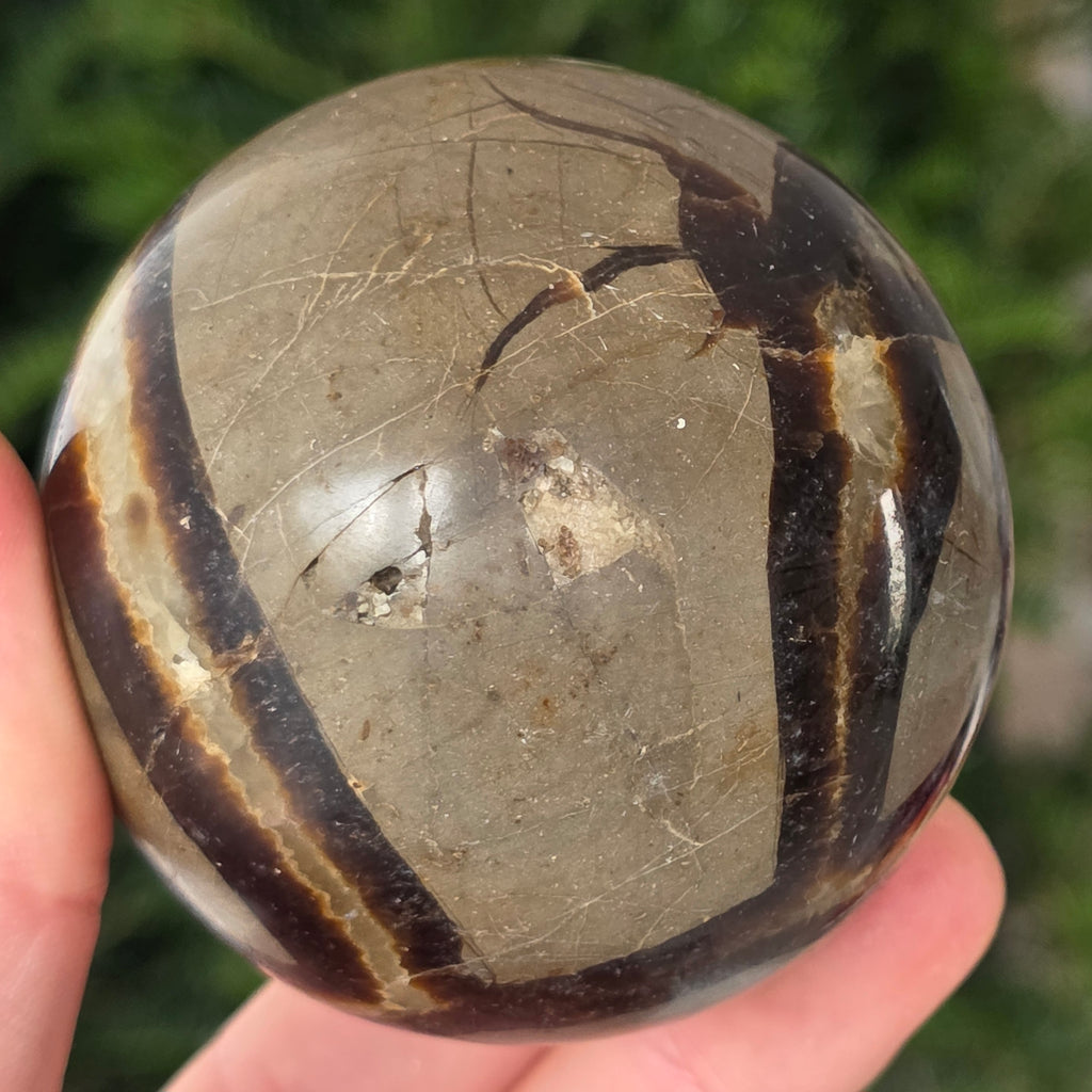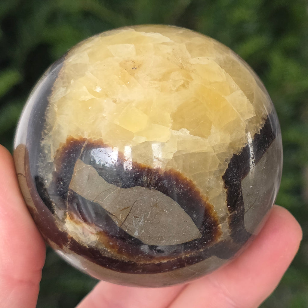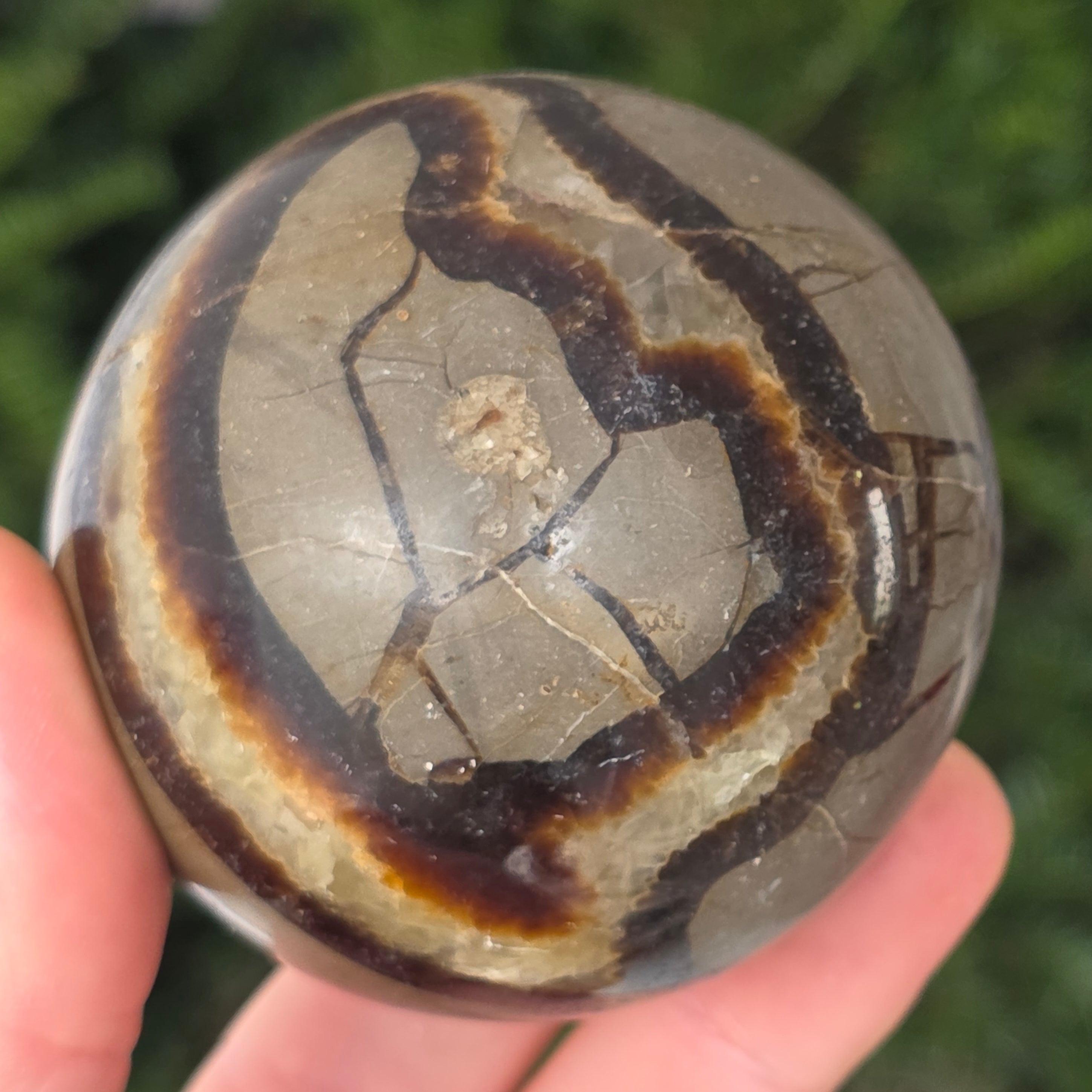 Septaria este formata din calcit, limonit, gips si baritina, minerale care formeaza un joc unic in aceasta piatra si-i dau un aspect aparte.