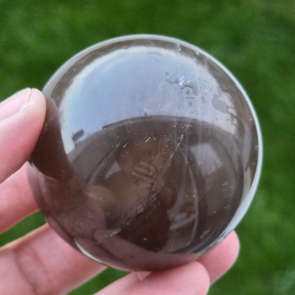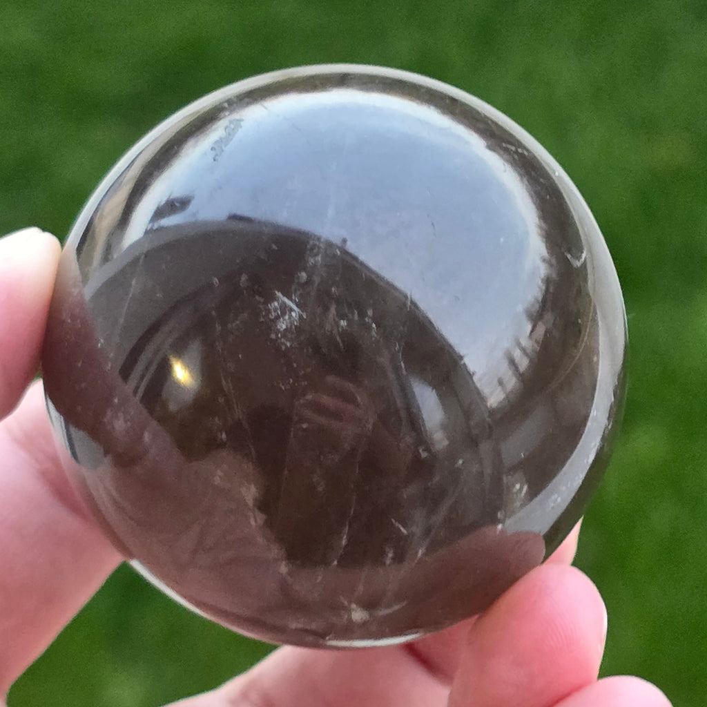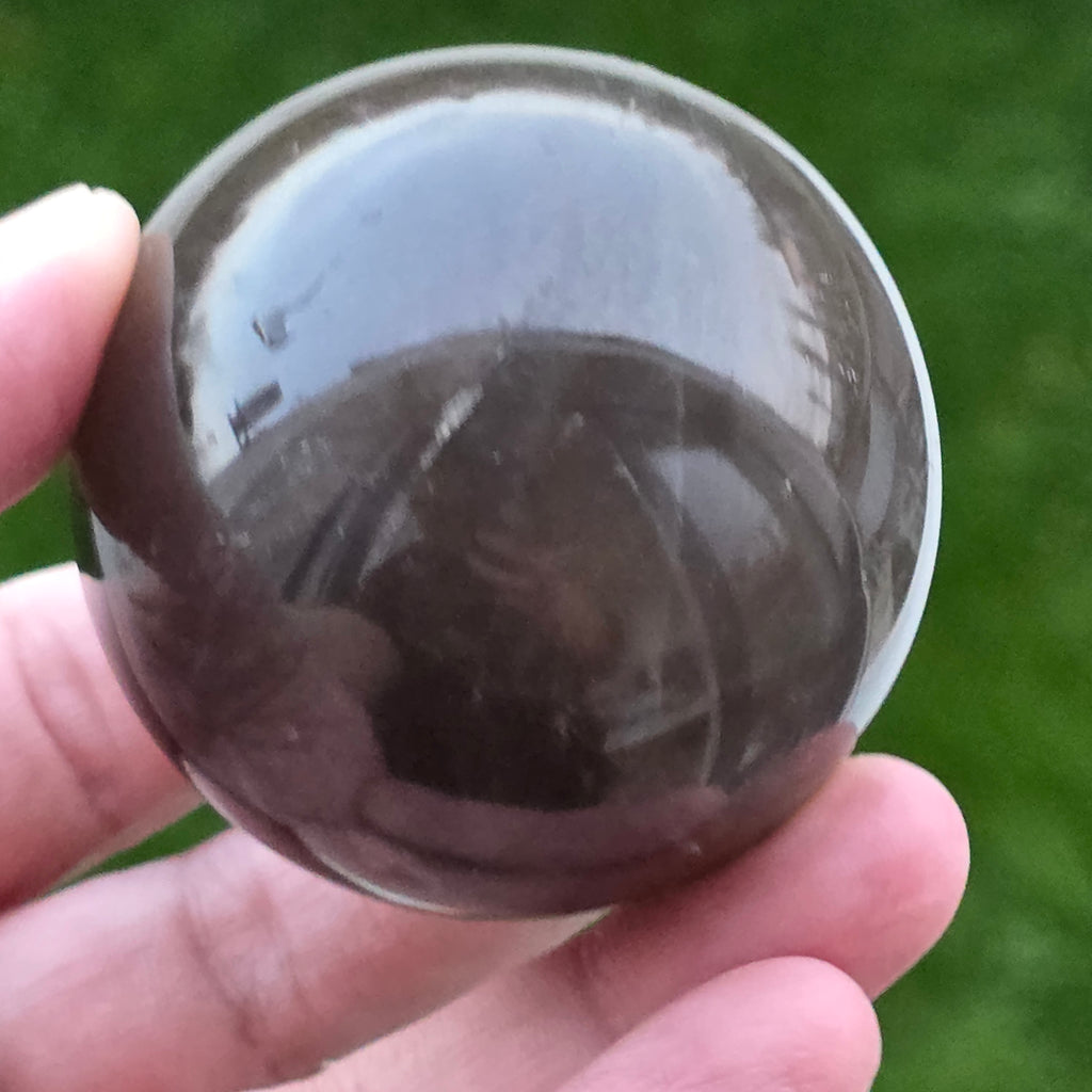 Sfera din cuarț morion este o piesă puternică și elegantă, cunoscută pentru nuanța sa profundă, asemănătoare fumului dens sau obsidianului transparent. Morionul este cea mai închisă varietate de cuarț fumuriu, iar în această formă perfect rotundă dezvăluie reflexii discrete, detalii interne fine și o prezență vizuală cu adevărat sofisticată.