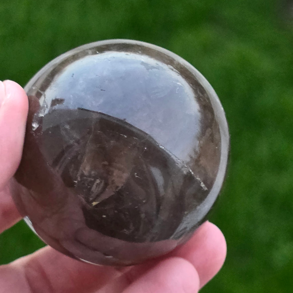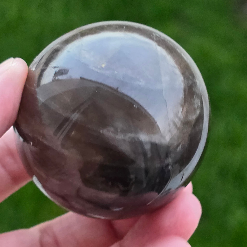 Sfera din cuarț morion este o piesă puternică și elegantă, cunoscută pentru nuanța sa profundă, asemănătoare fumului dens sau obsidianului transparent. Morionul este cea mai închisă varietate de cuarț fumuriu, iar în această formă perfect rotundă dezvăluie reflexii discrete, detalii interne fine și o prezență vizuală cu adevărat sofisticată.