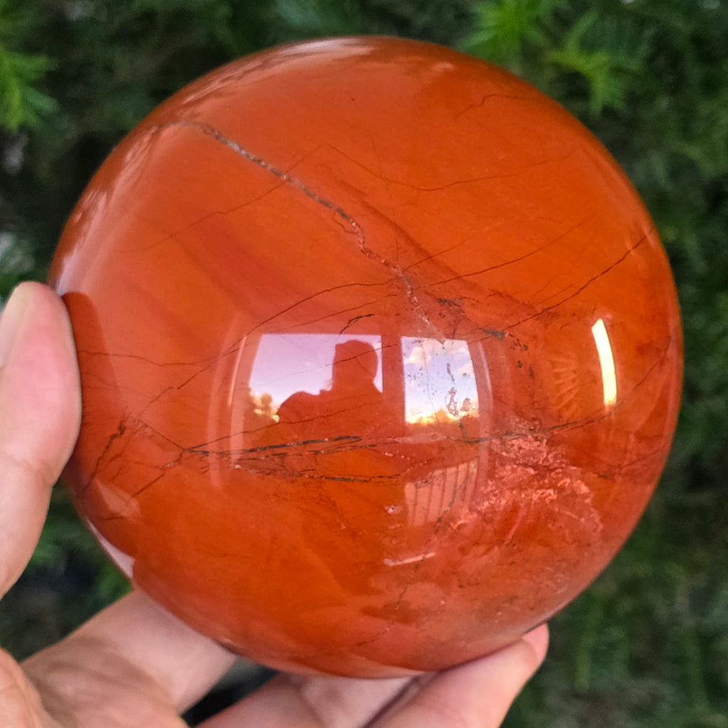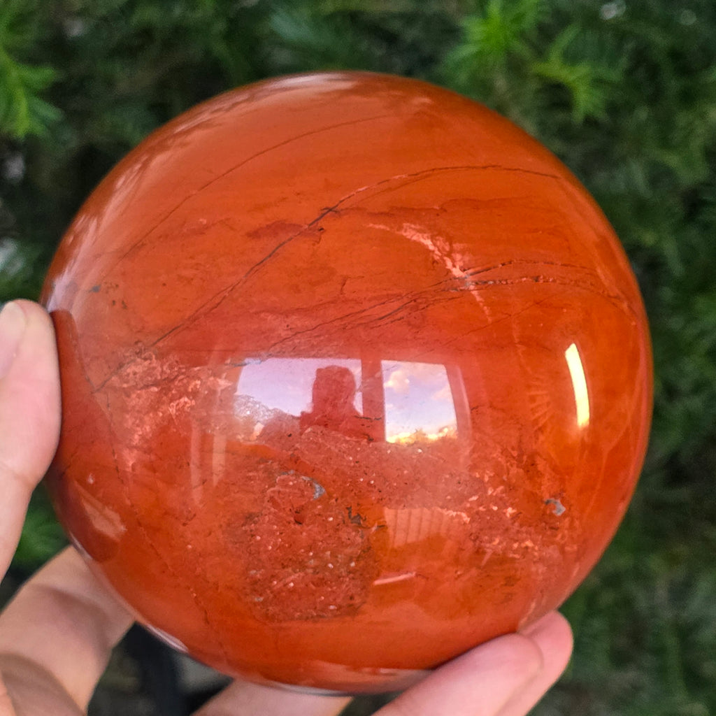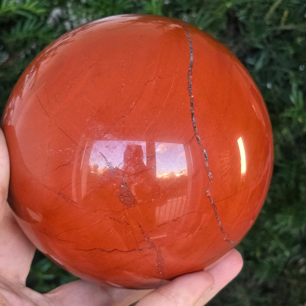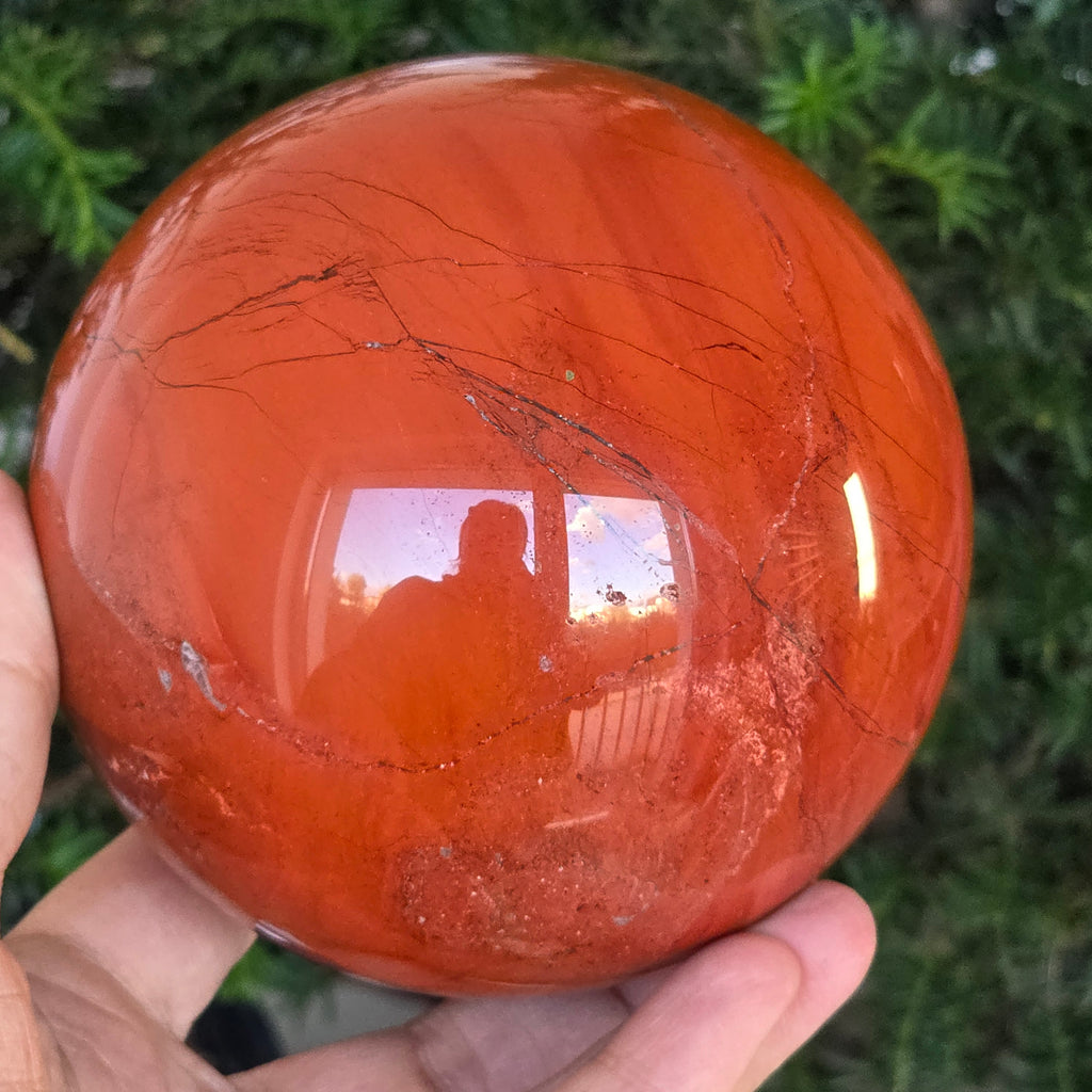 Modelată din adâncurile Pământului, această sferă din jasp roșu emană o energie caldă, stabilă și profund ancorată. Piatra, cunoscută din cele mai vechi timpuri drept „piatra vitalității”, poartă culorile sângelui și ale focului interior – simbol al forței de viață, curajului și perseverenței.