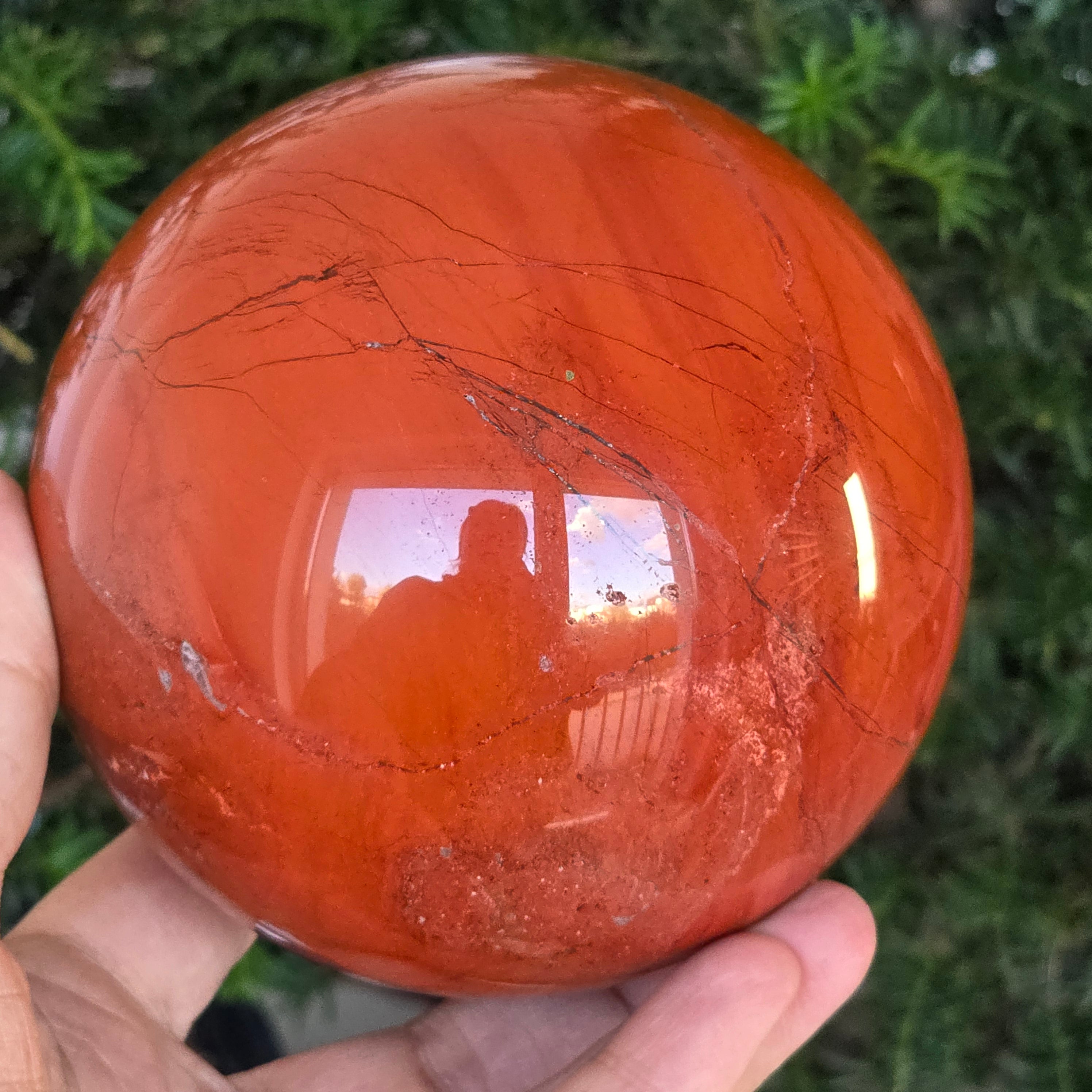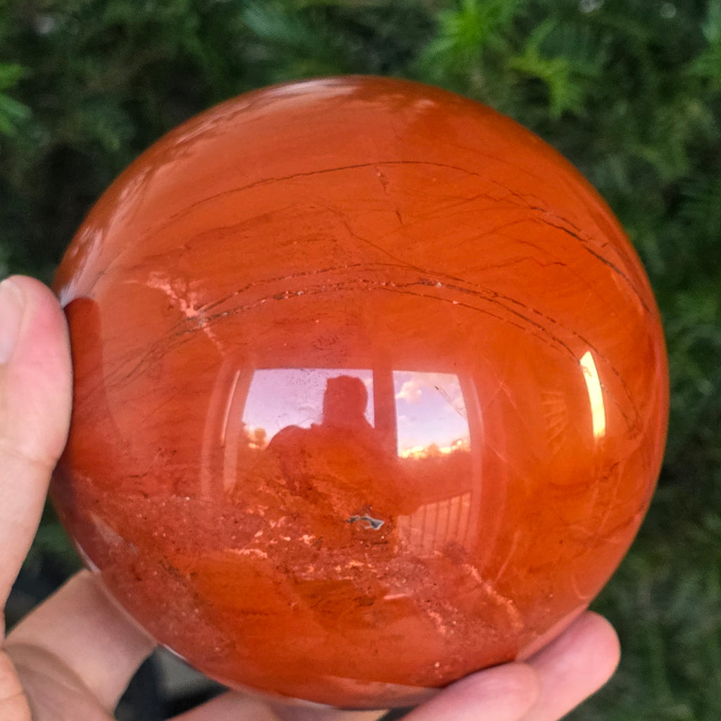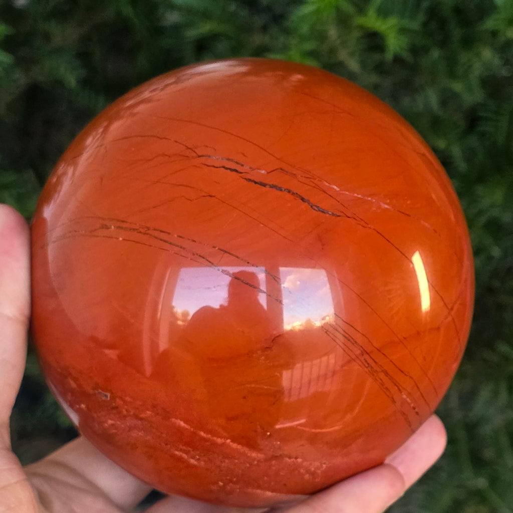 Modelată din adâncurile Pământului, această sferă din jasp roșu emană o energie caldă, stabilă și profund ancorată. Piatra, cunoscută din cele mai vechi timpuri drept „piatra vitalității”, poartă culorile sângelui și ale focului interior – simbol al forței de viață, curajului și perseverenței.