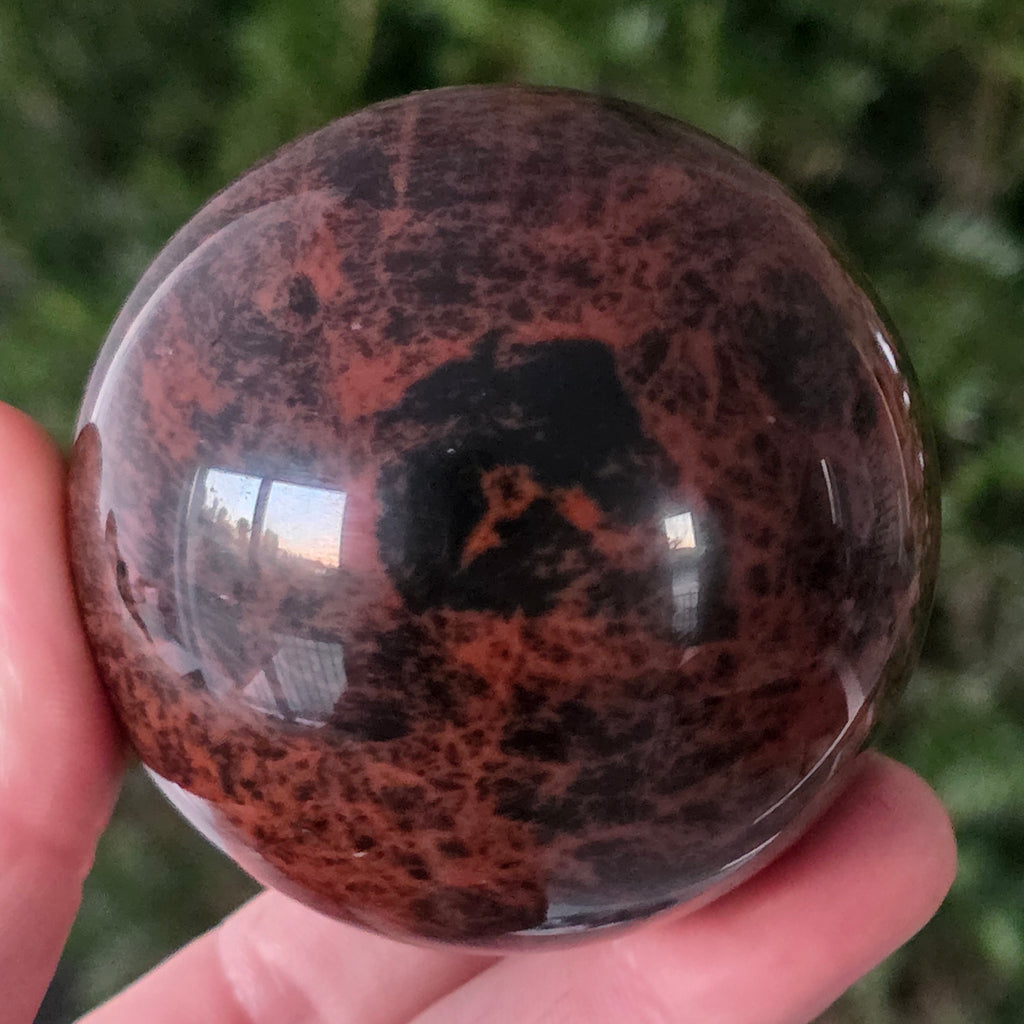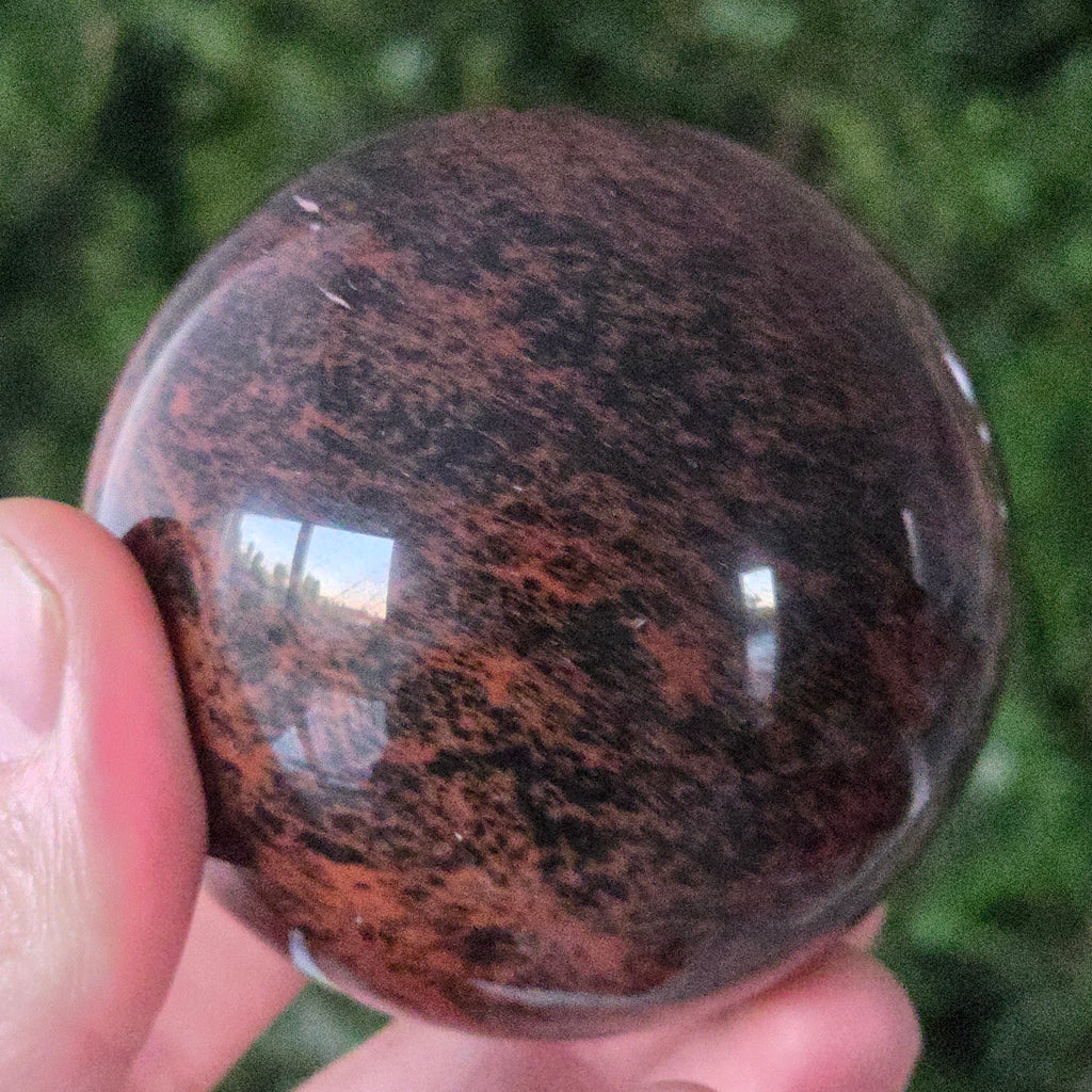 Lasă-te inspirat de forța liniștită a Pământului prin această sferă din obsidian mahon.