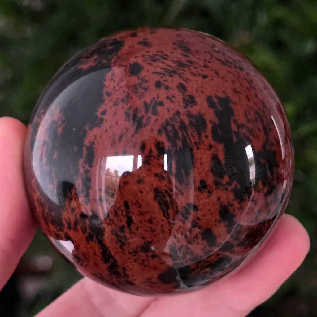 Această sferă din obsidian mahon este o întrupare a forței primordiale a Pământului — o piatră a rădăcinilor, a siguranței și a transformării interioare.