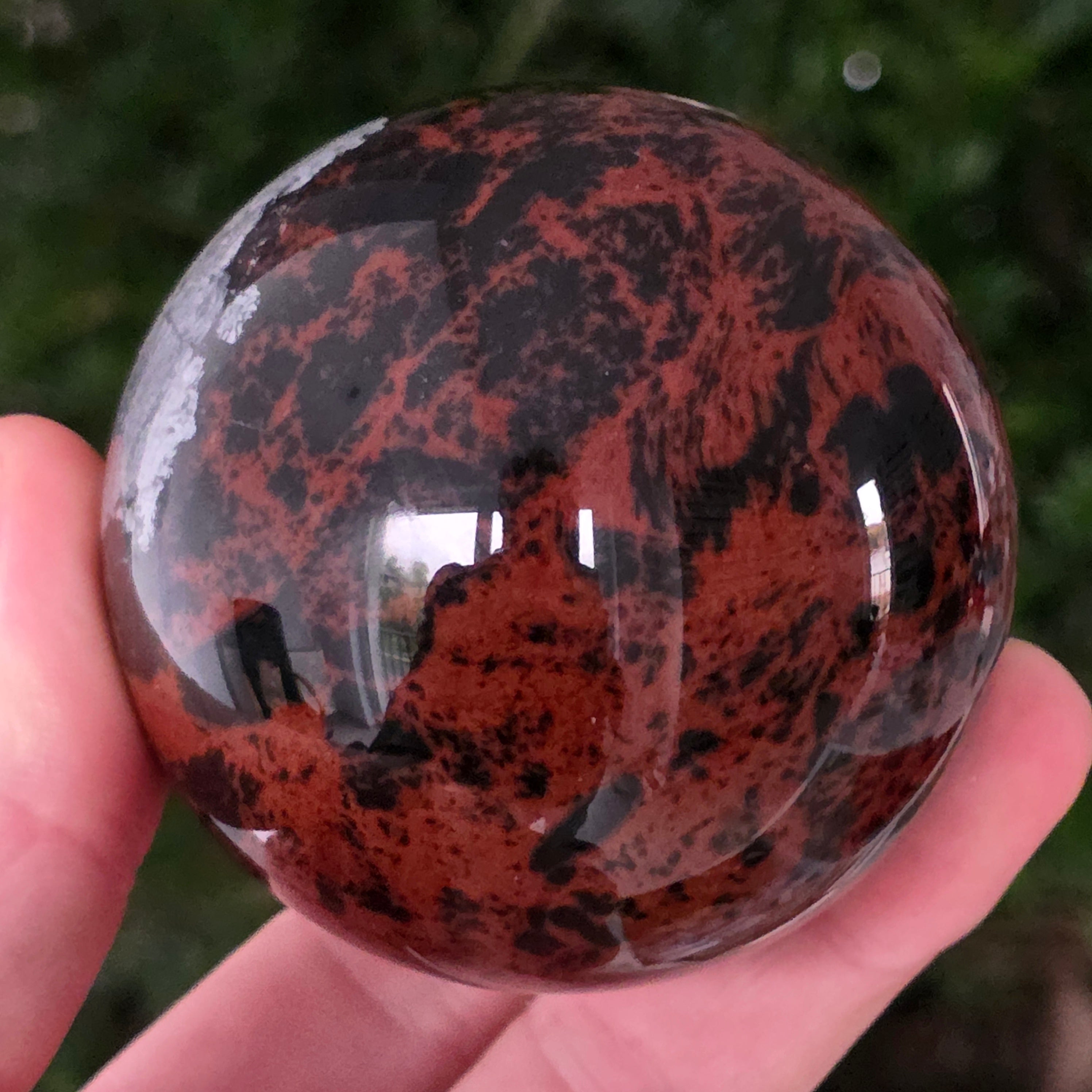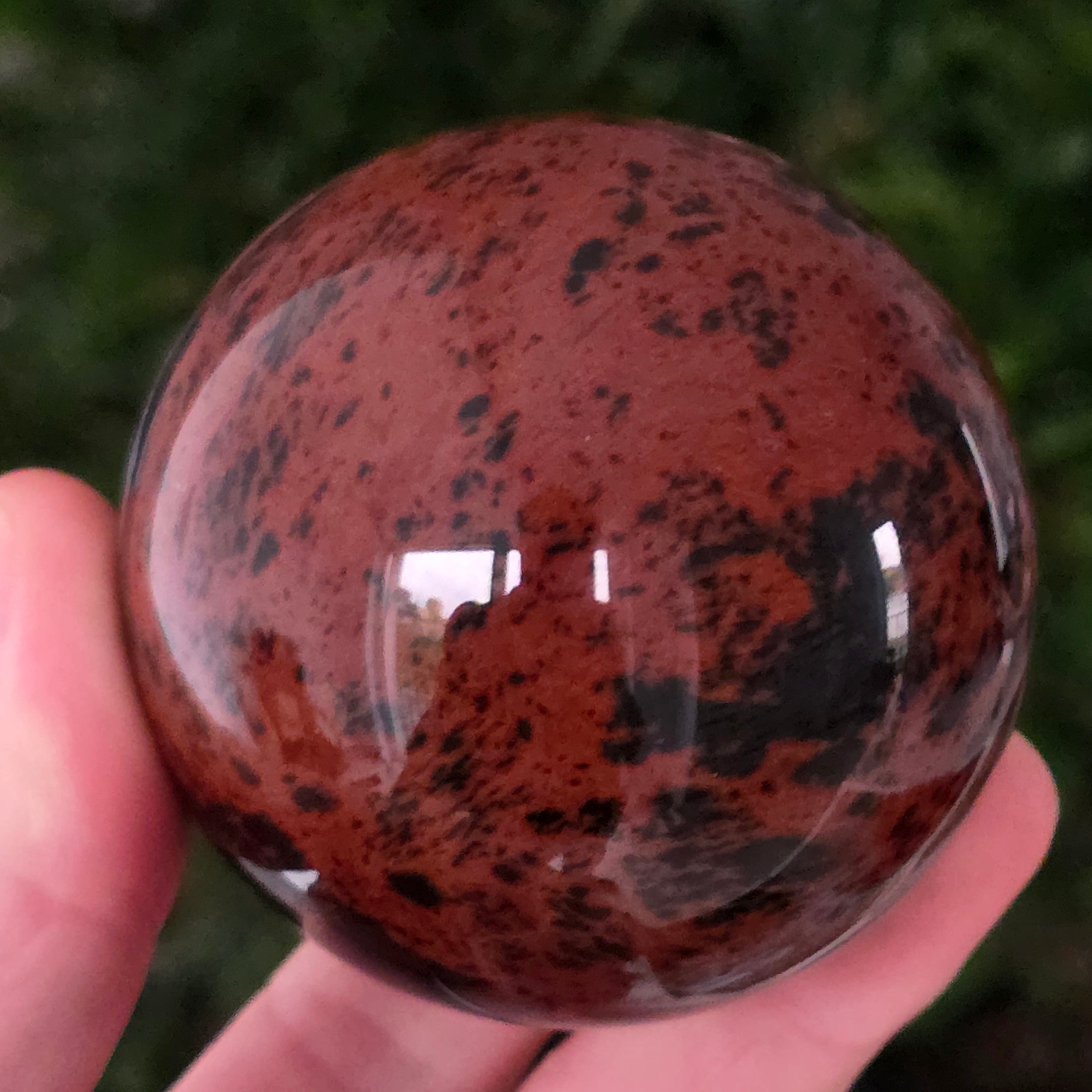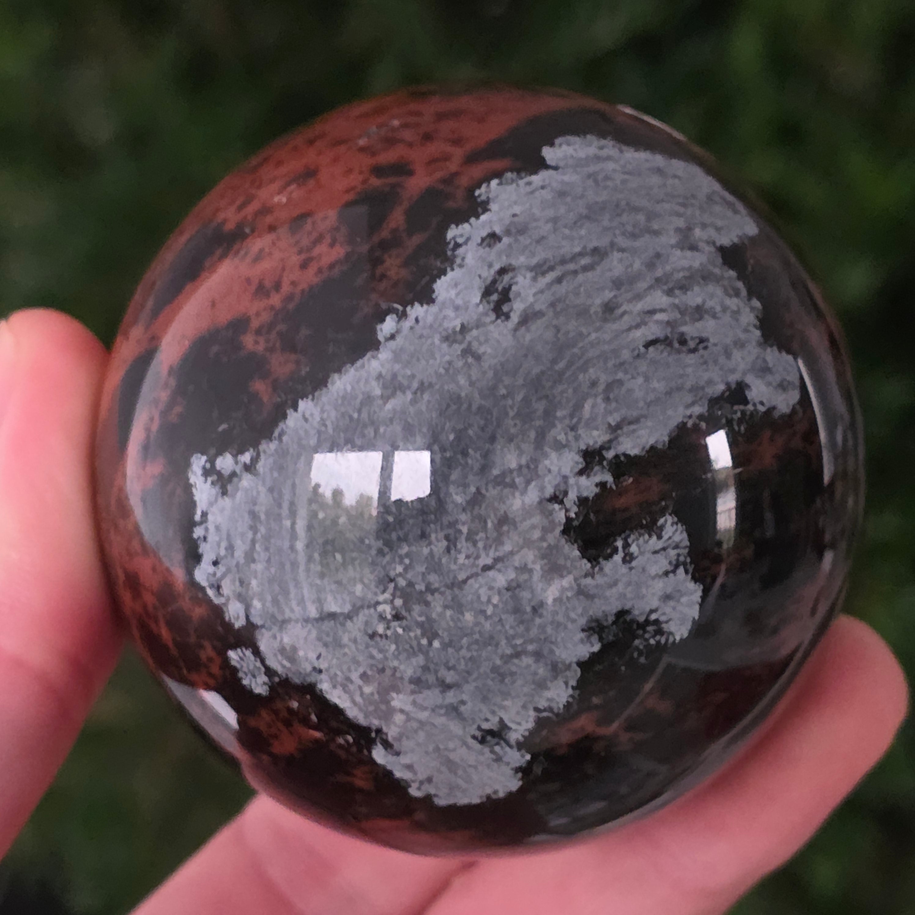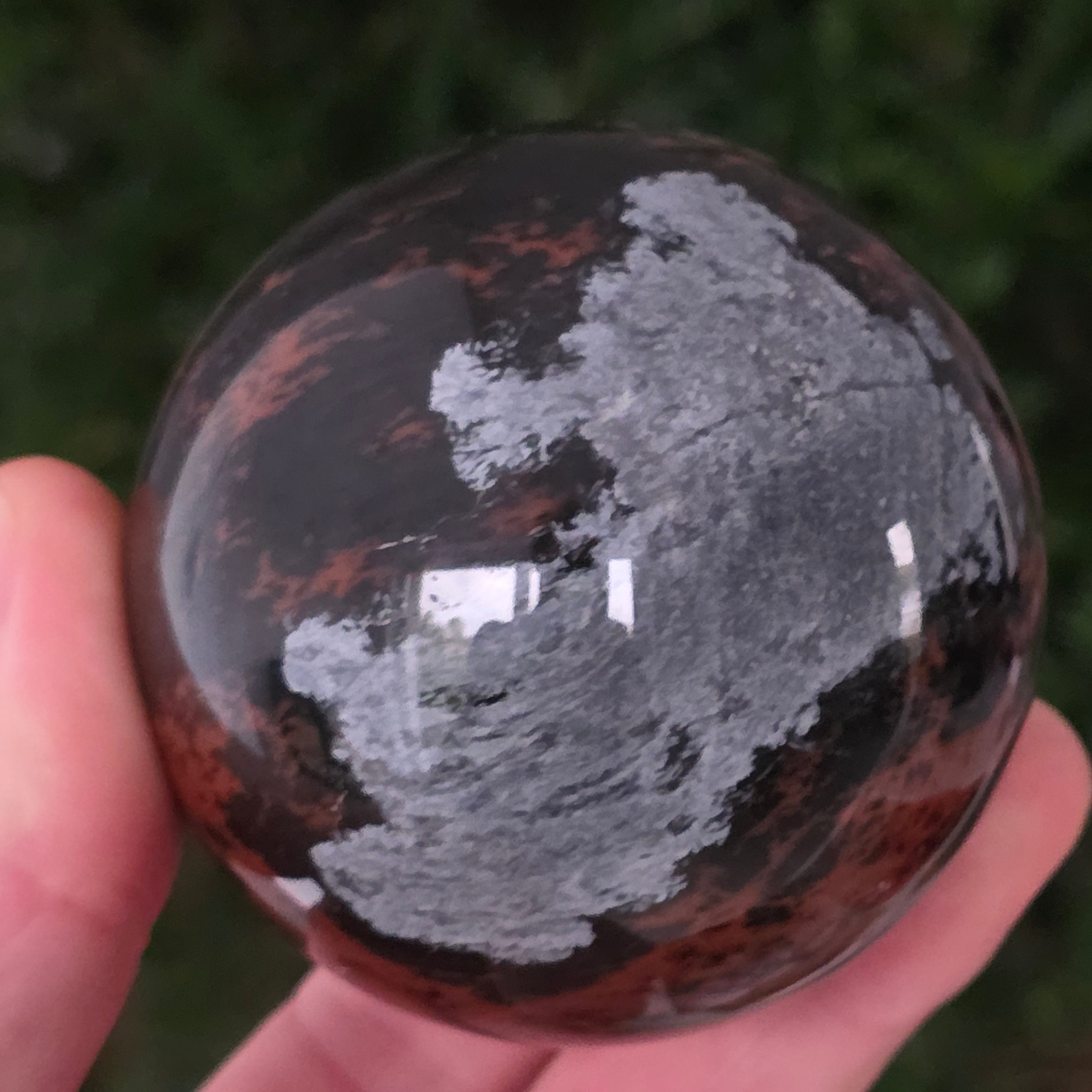 Lasă-te inspirat de forța liniștită a Pământului prin această sferă din obsidian mahon.