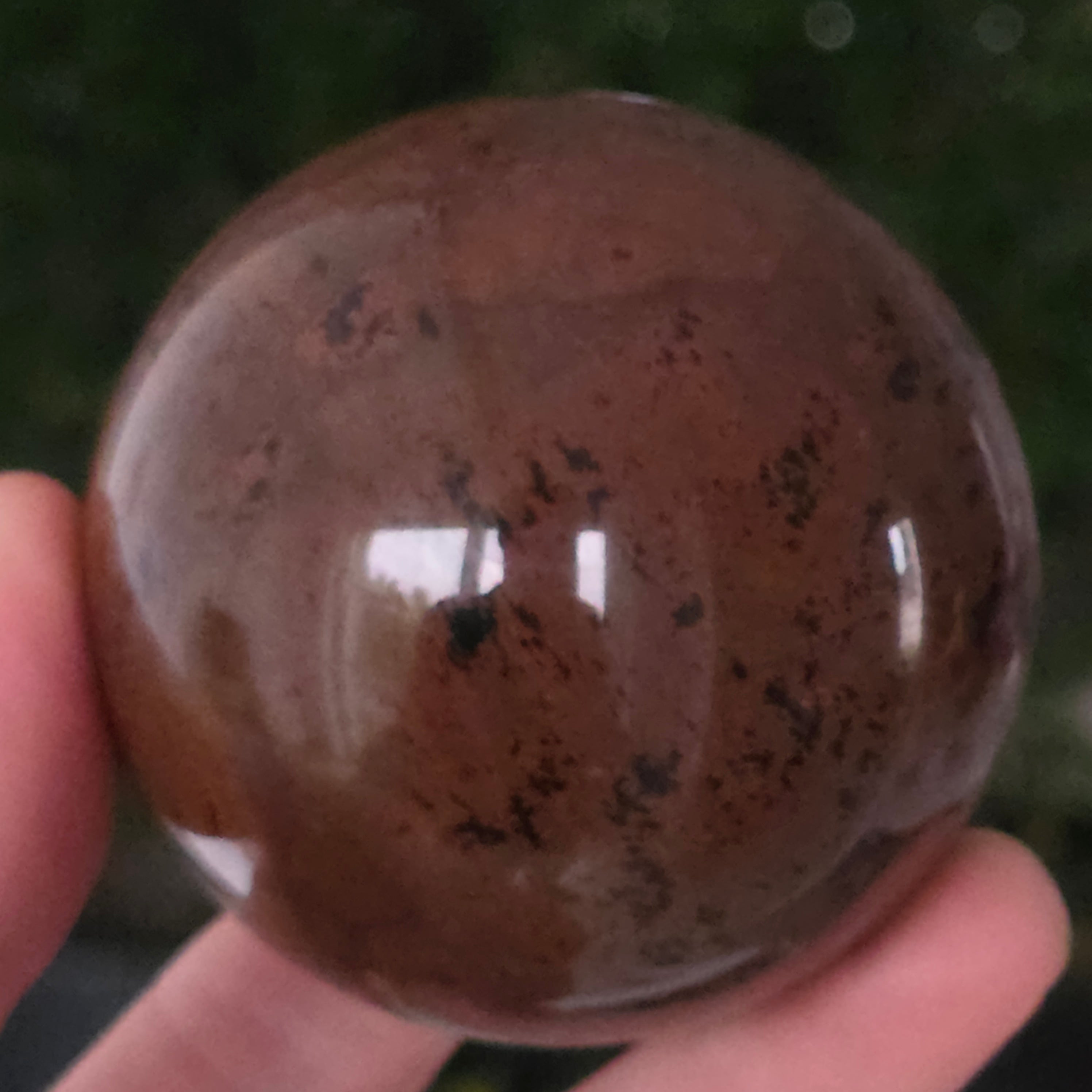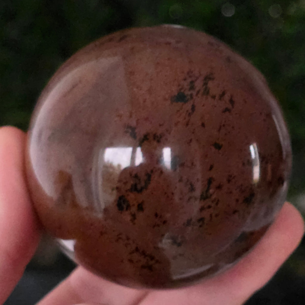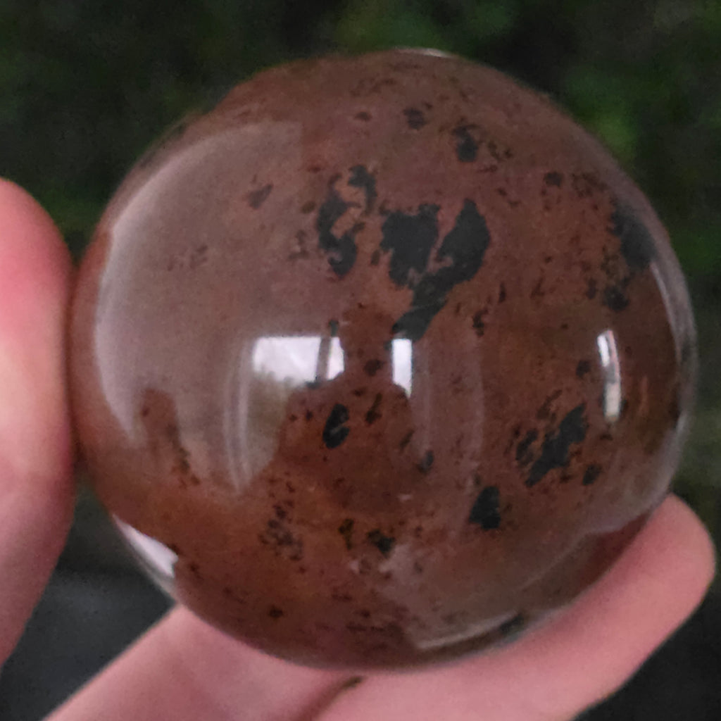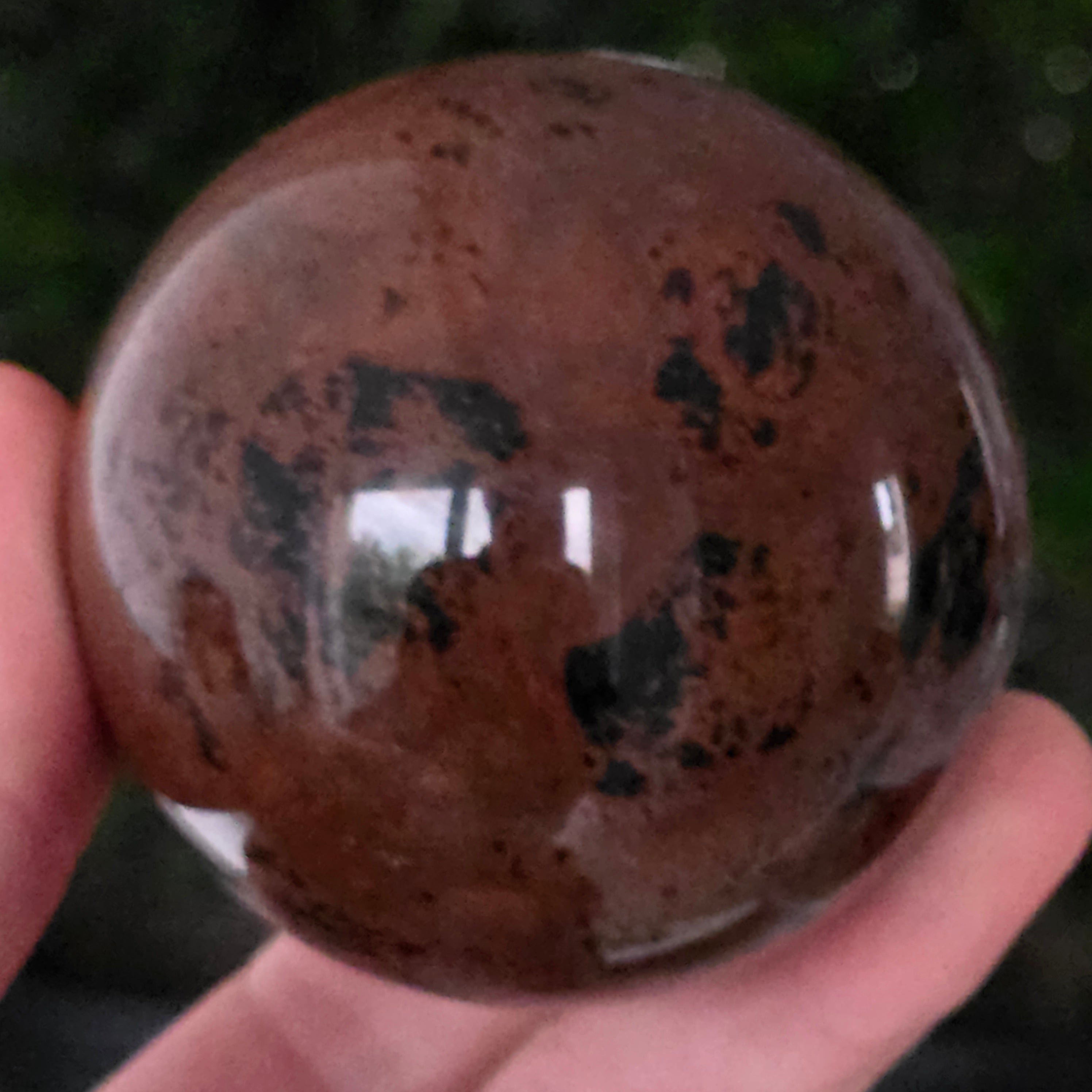 Lasă-te inspirat de forța liniștită a Pământului prin această sferă din obsidian mahon.
