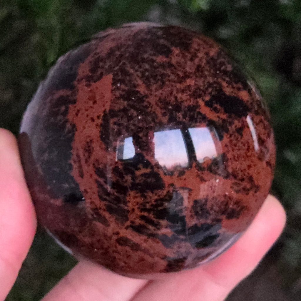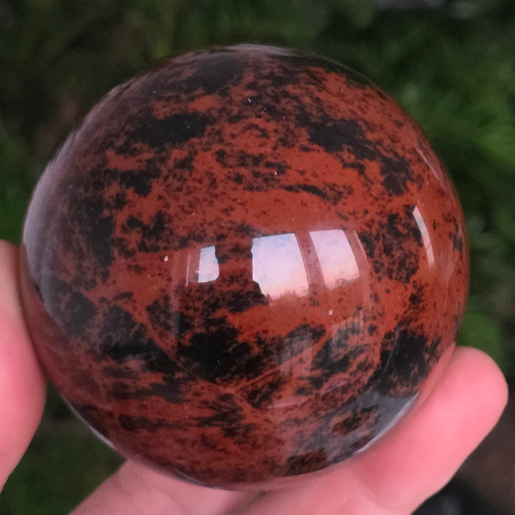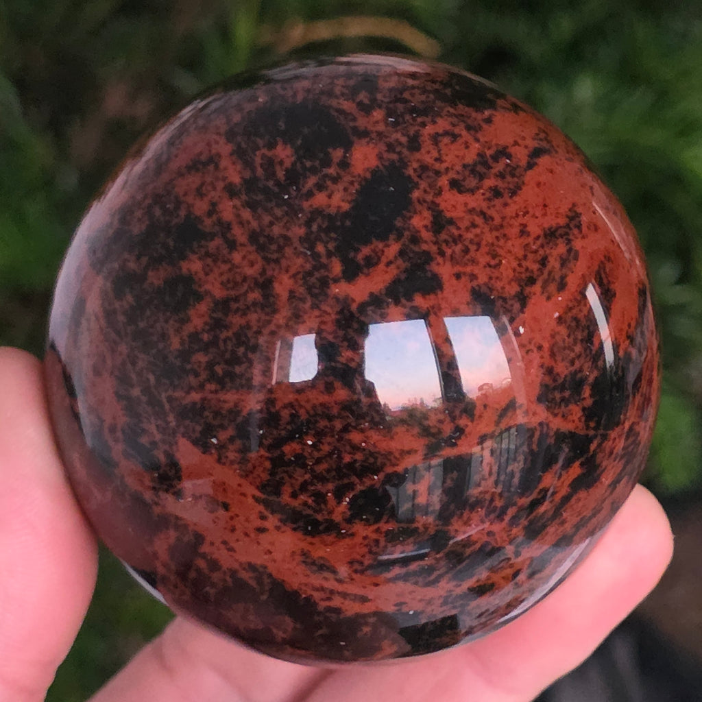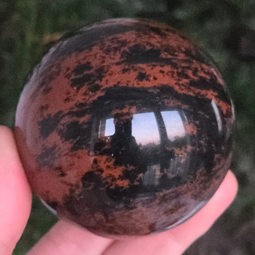 Lasă-te inspirat de forța liniștită a Pământului prin această sferă din obsidian mahon.