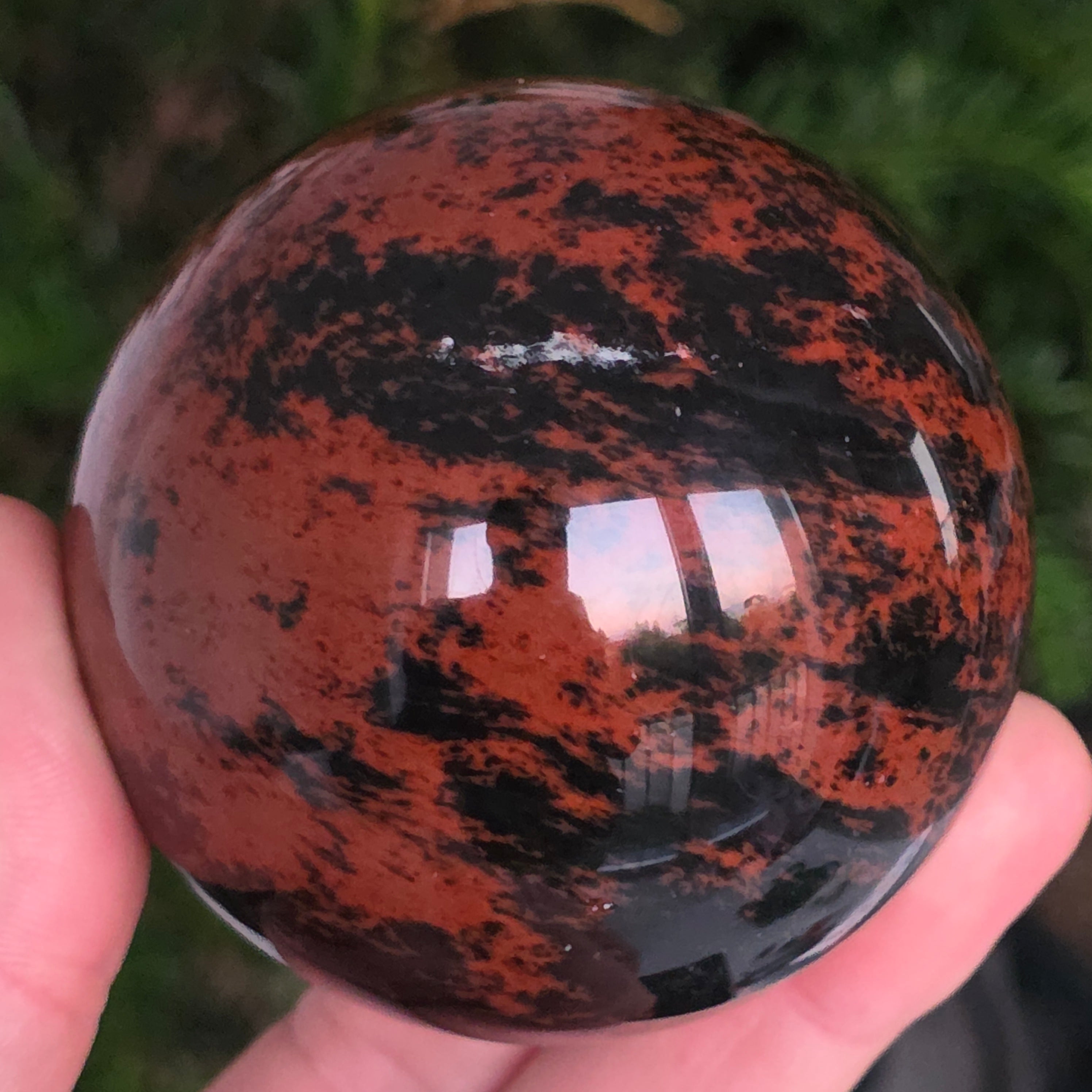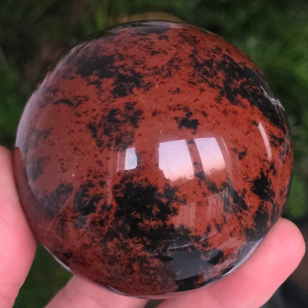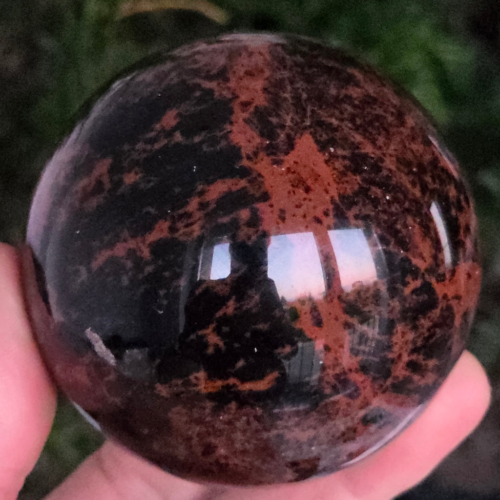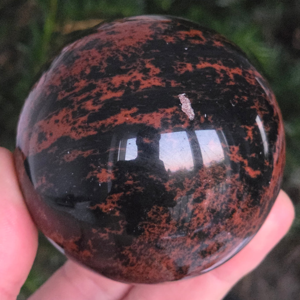 Lasă-te inspirat de forța liniștită a Pământului prin această sferă din obsidian mahon.