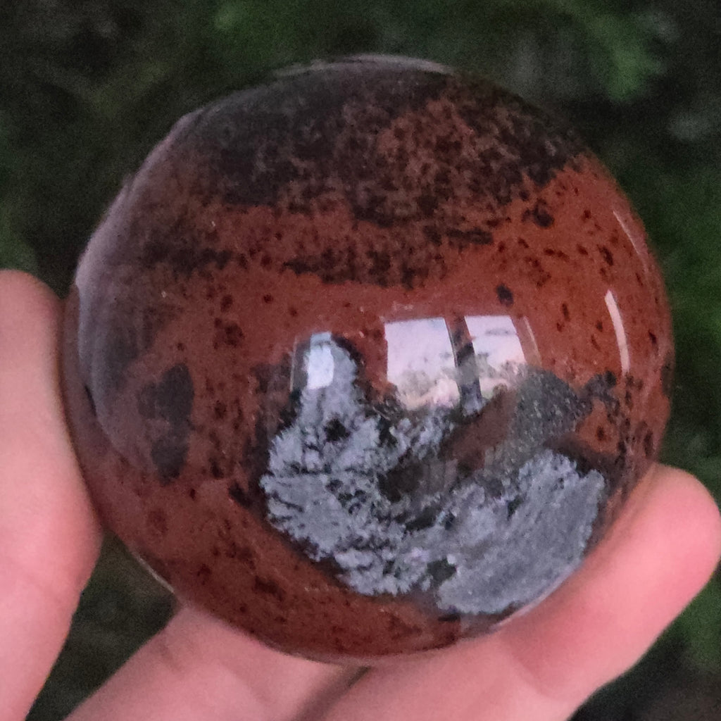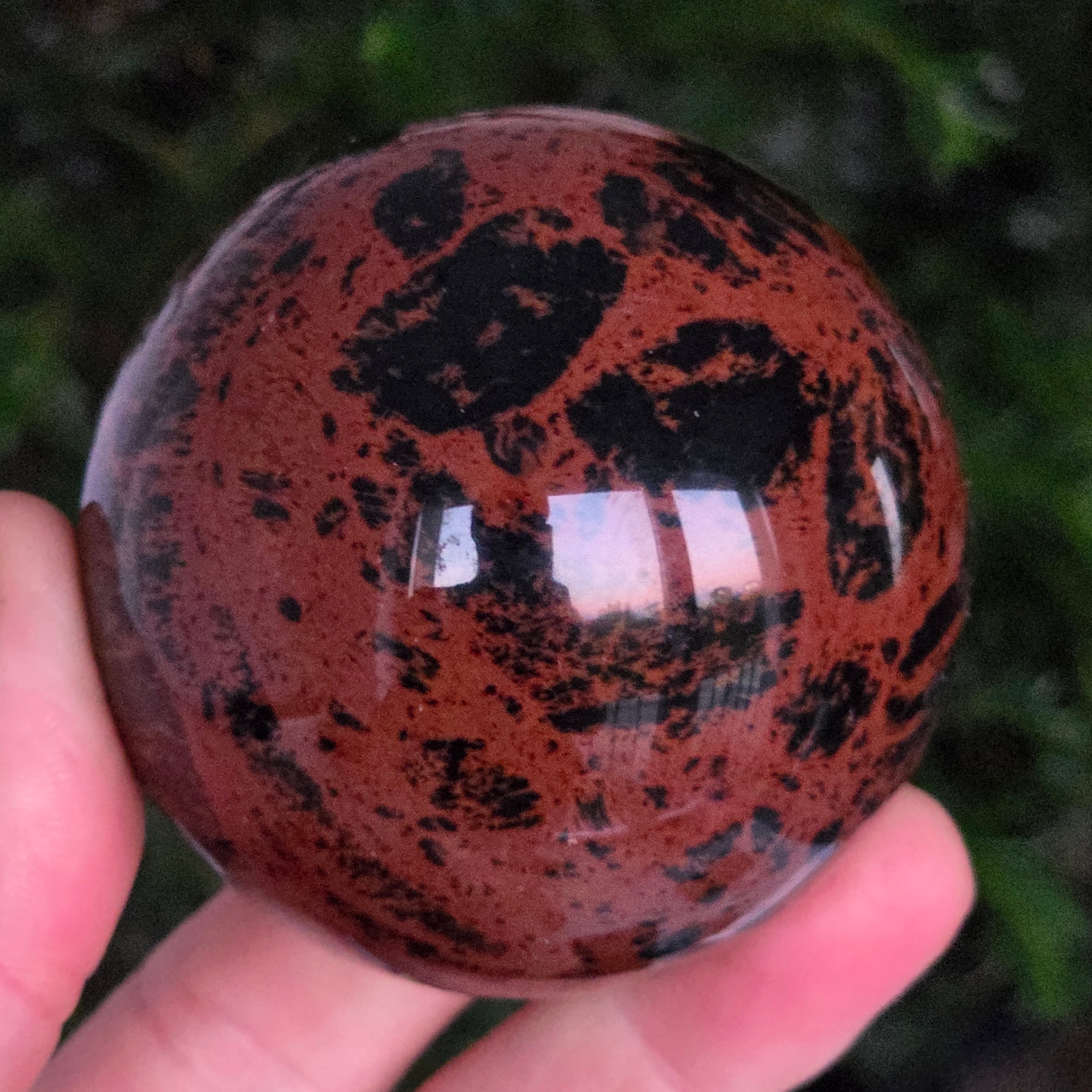 Lasă-te inspirat de forța liniștită a Pământului prin această sferă din obsidian mahon.