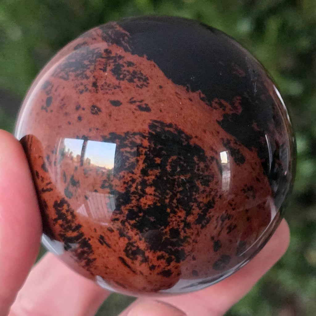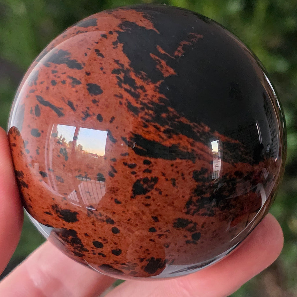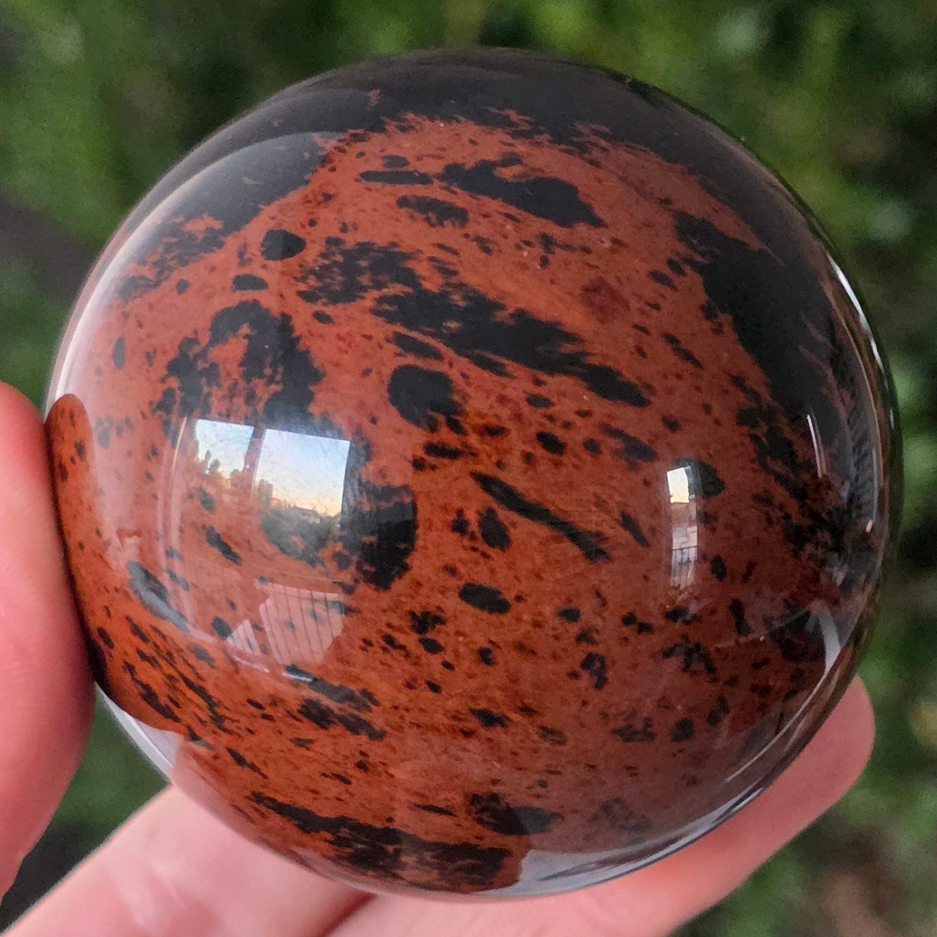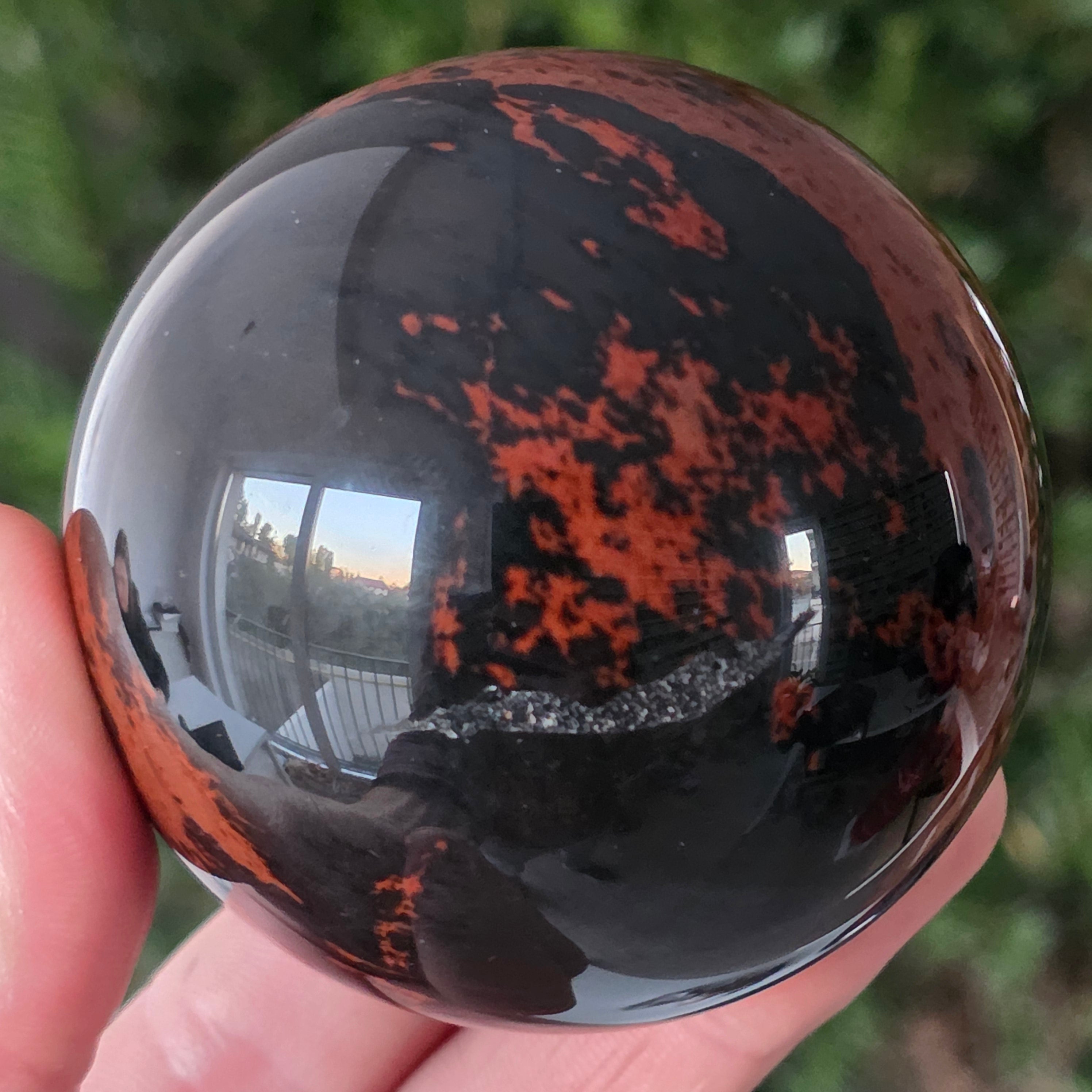 Lasă-te inspirat de forța liniștită a Pământului prin această sferă din obsidian mahon.