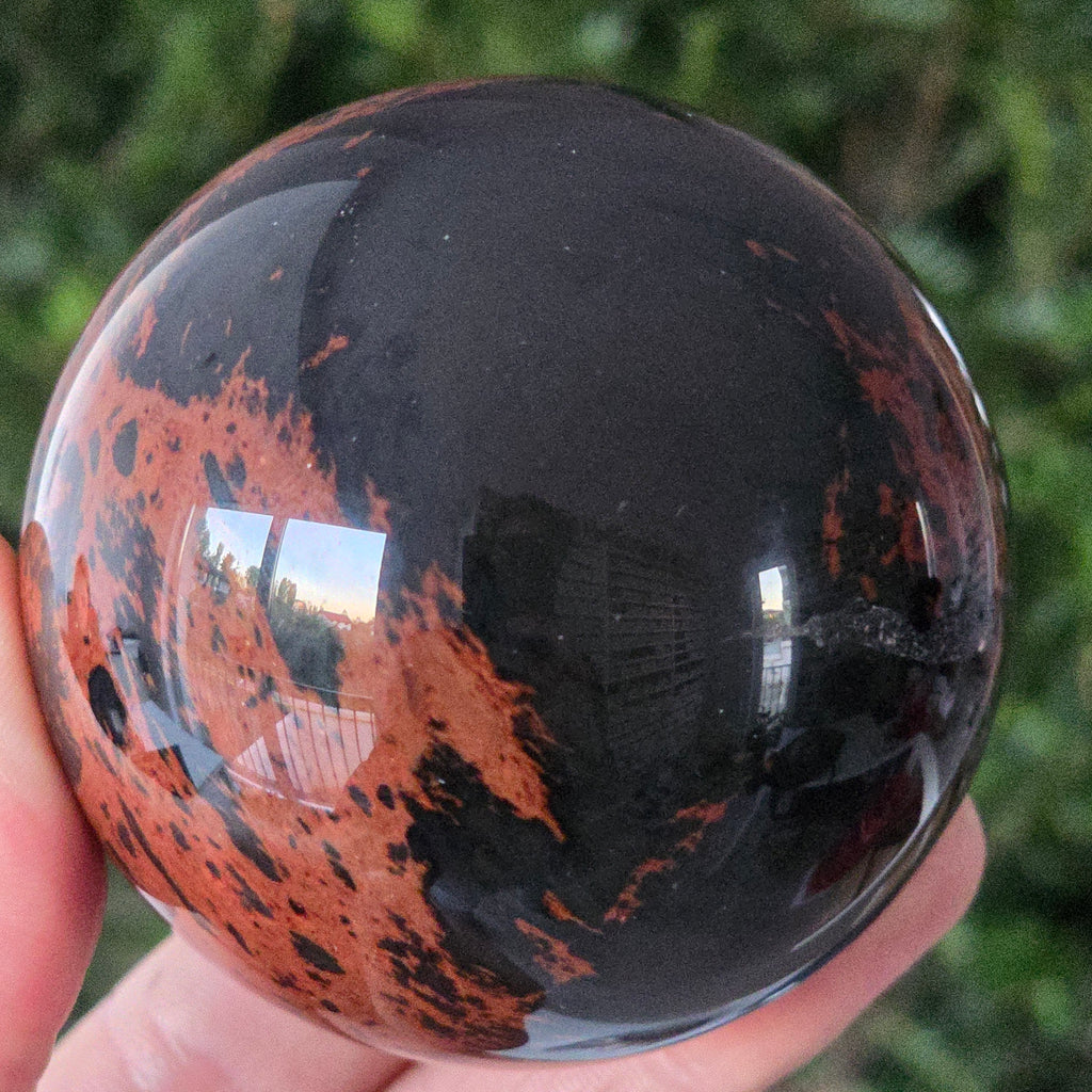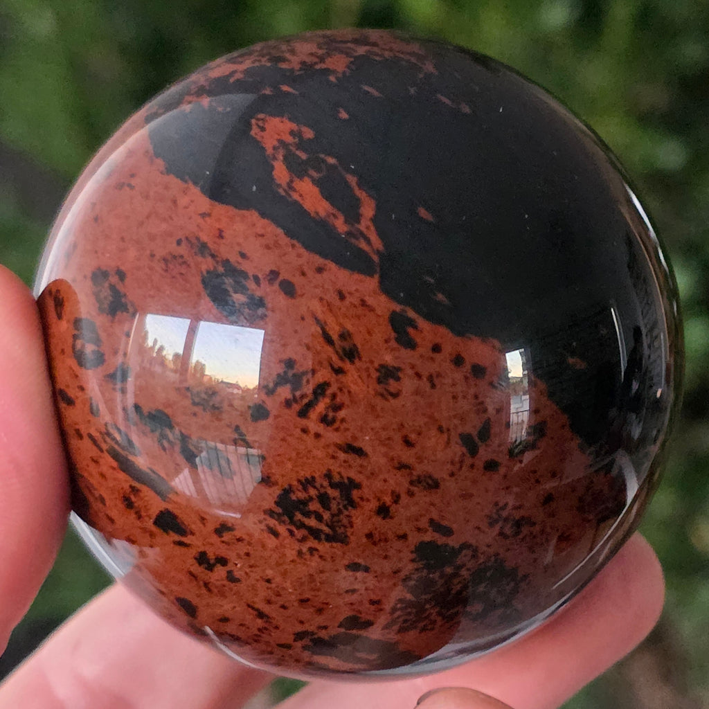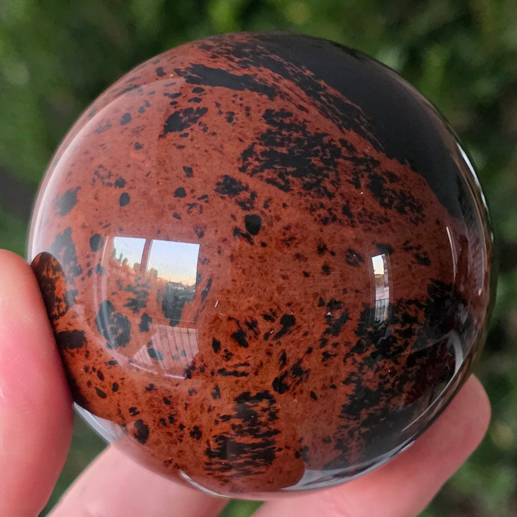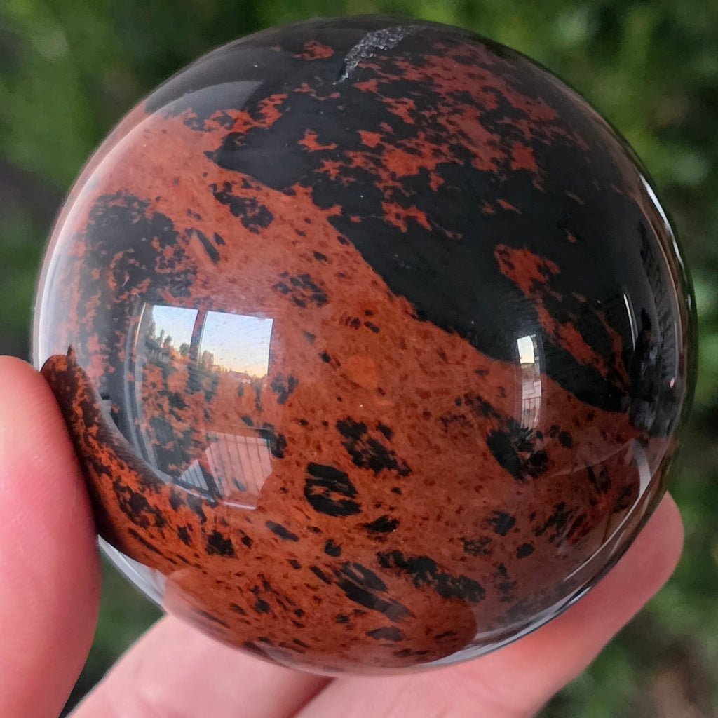 Lasă-te inspirat de forța liniștită a Pământului prin această sferă din obsidian mahon.