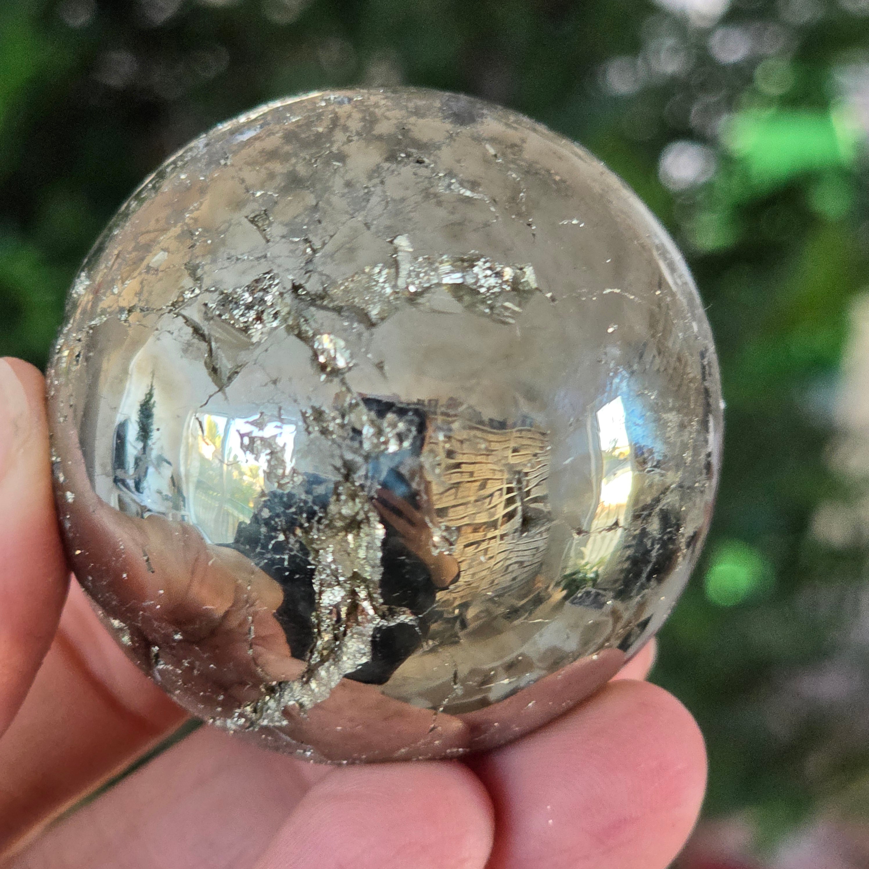 Sfera din pirita peruviană emană putere, abundență și claritate mentală. Fiecare reflex auriu amintește de lumina conștienței și de forța interioară care transformă intențiile în realitate. O piesă spectaculoasă, potrivită atât pentru colecționari, cât și ca obiect decorativ cu energie vibrantă.