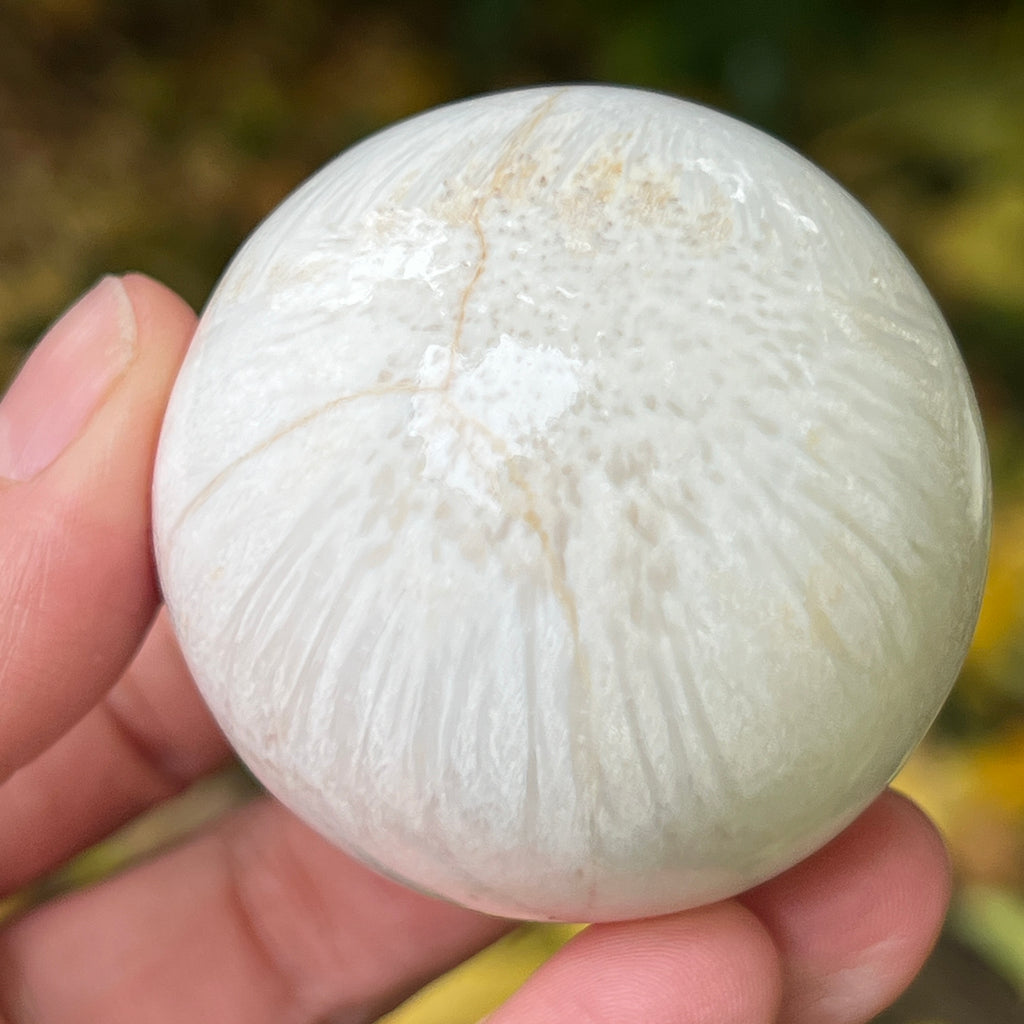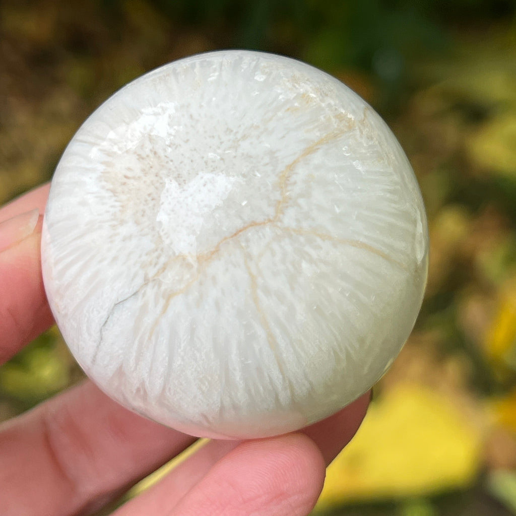 Scolecitul este o piatră delicată și luminoasă, aparținând familiei zeoliților, recunoscută pentru structura sa fină, fibros-radială și strălucirea mătăsoasă. De obicei albă sau crem, uneori cu nuanțe subtile de roz sau bej, această piatră emană o puritate aproape eterică, amintind de calmul lăuntric și de tăcerea din care se naște pacea.