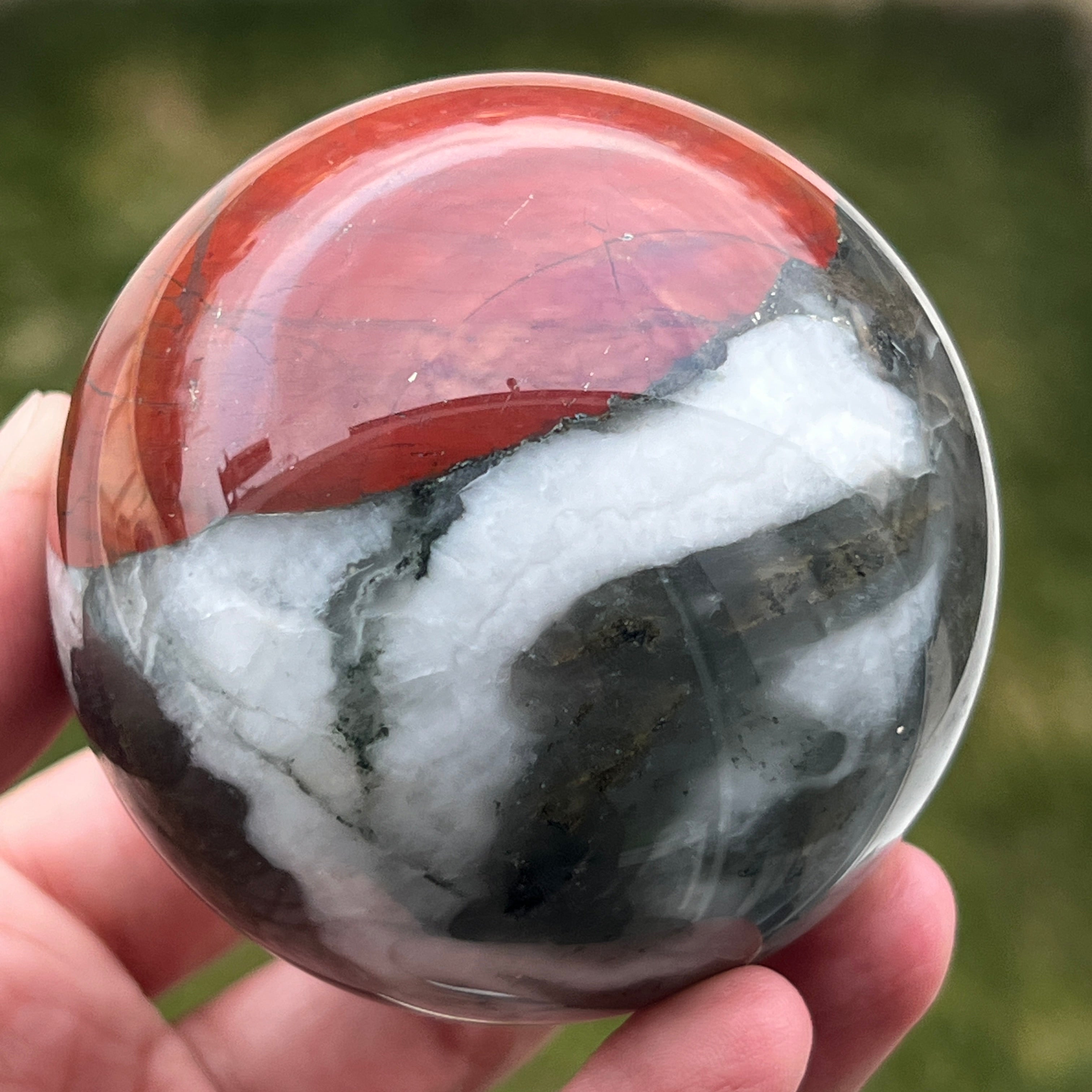 Jaspisowy Kamień Krwi uważany jest za posiadający właściwości dodające odwagi i pewność siebie. Mówi się, że może dostarczać silnej i odważnej energii, pomagając pewnie wyrażać swoje pomysły i opinie.